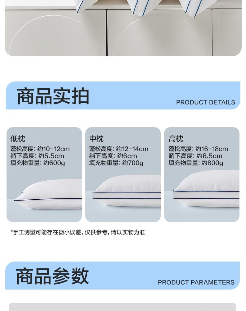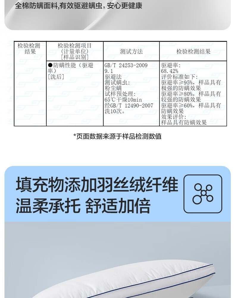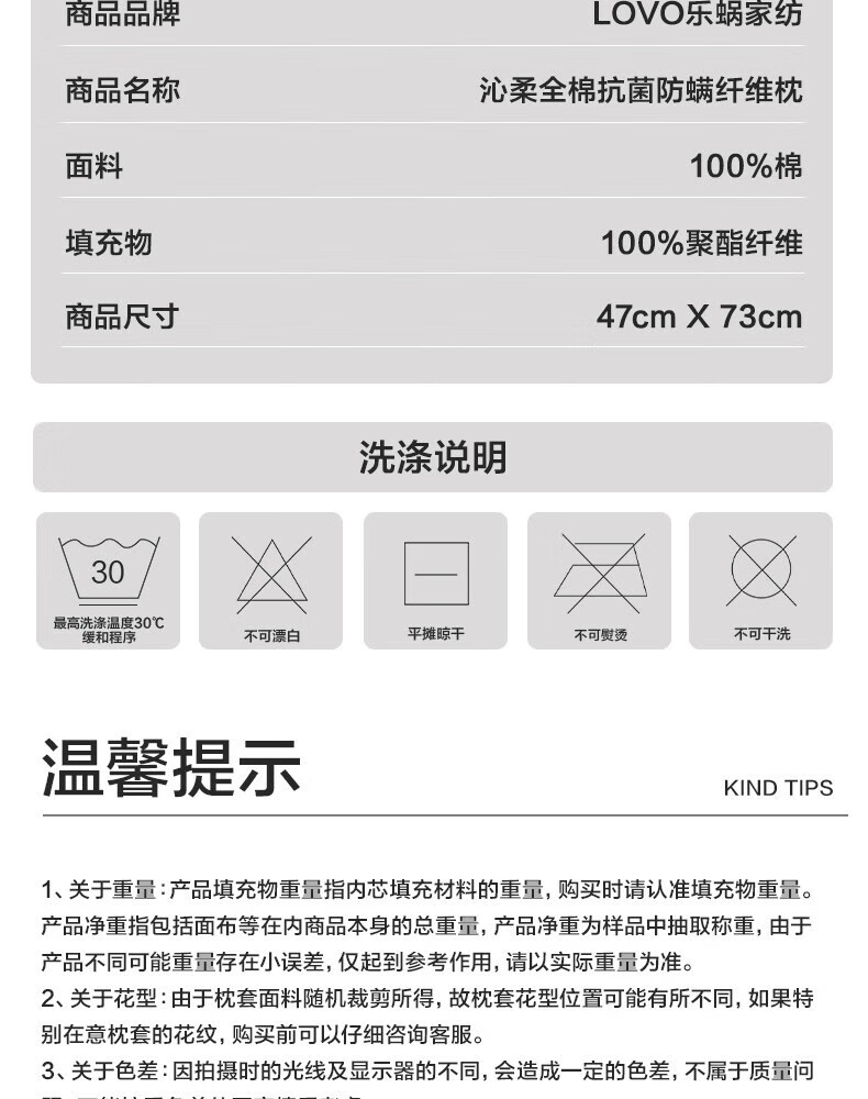 LOVO罗莱生活 枕头枕芯五星级酒店枕头成人家用抗菌纯棉可水洗高弹枕 【全棉A类抗菌】单只/大豆低枕42*68 cm