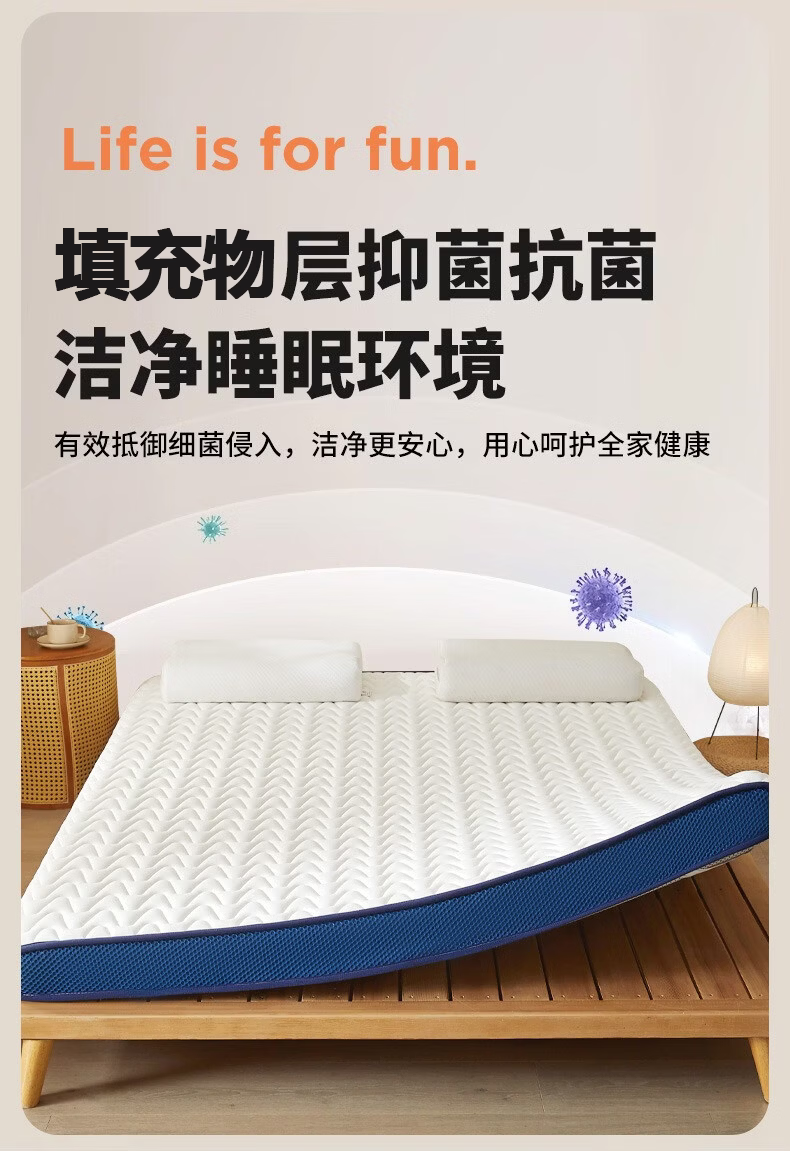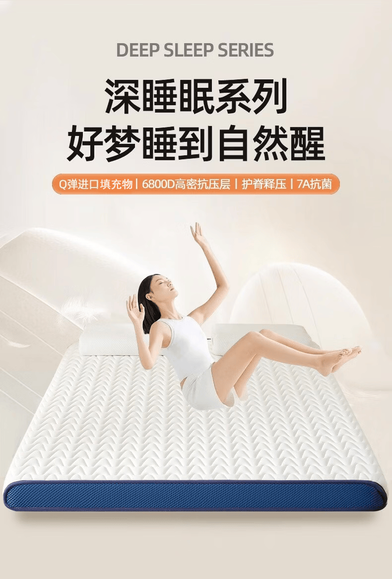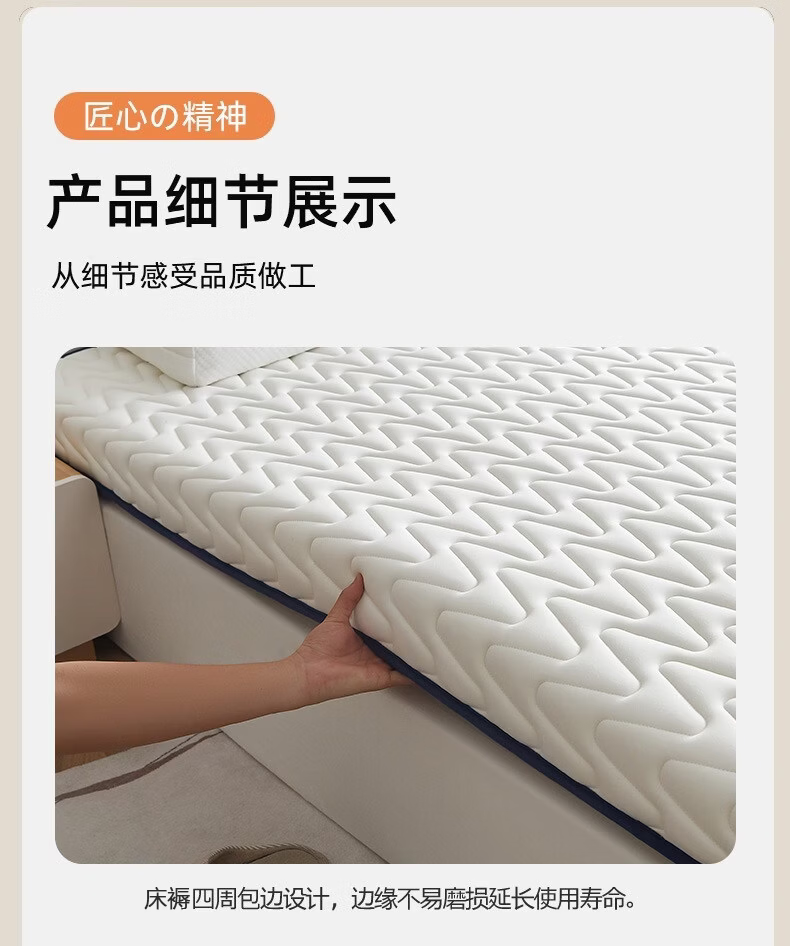 无印良品床垫遮盖物床褥子1.8x2米家用卧室榻榻米被褥铺底海绵垫褥铺床 牛奶丝-烫画白【高密度填充0压护脊6cm】 180cm*200cm【适用于1.8m床】