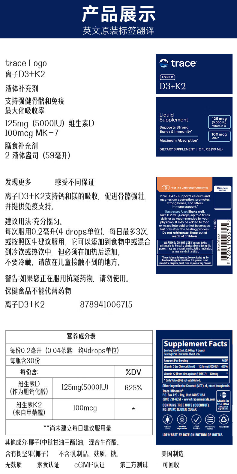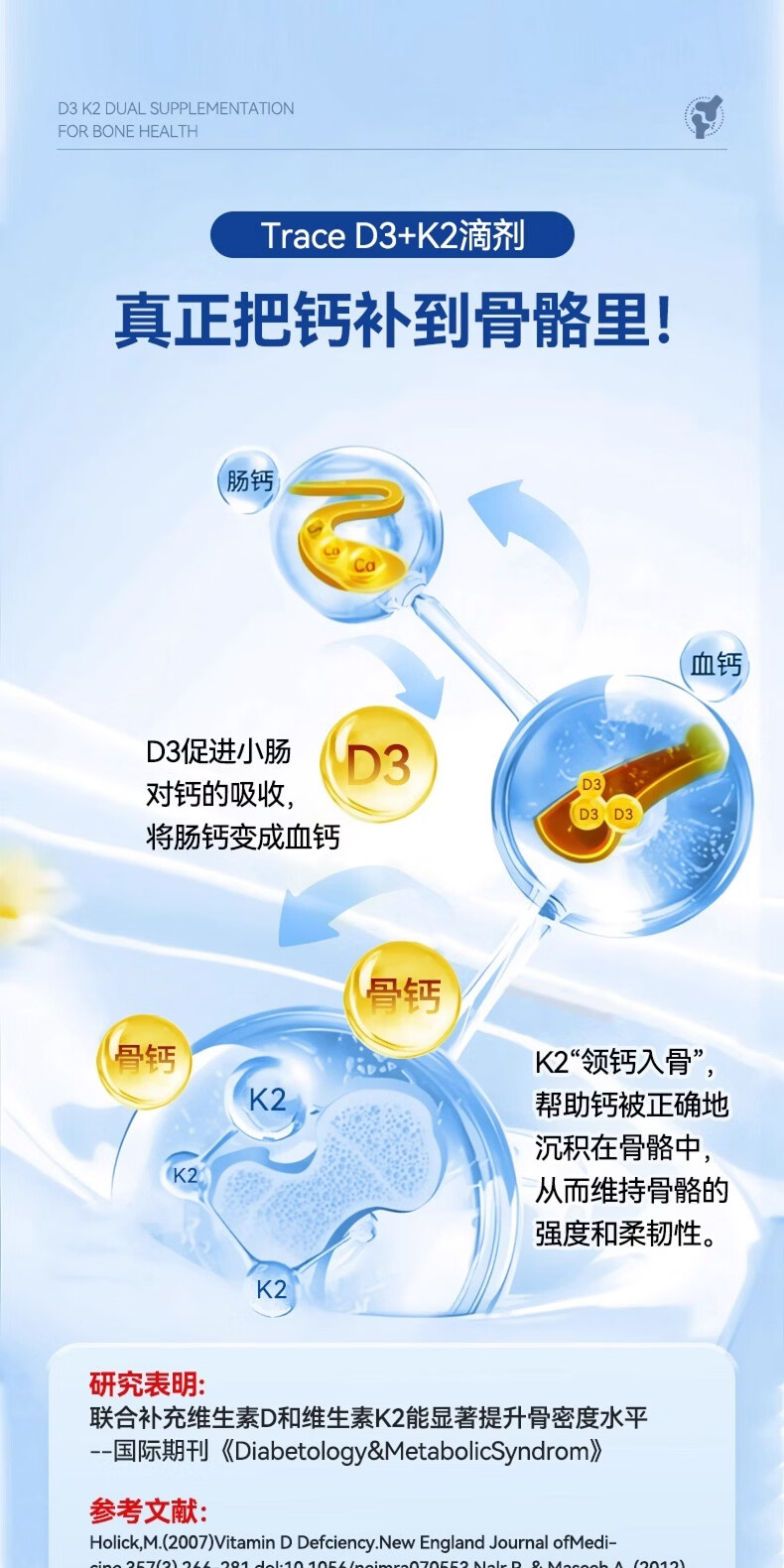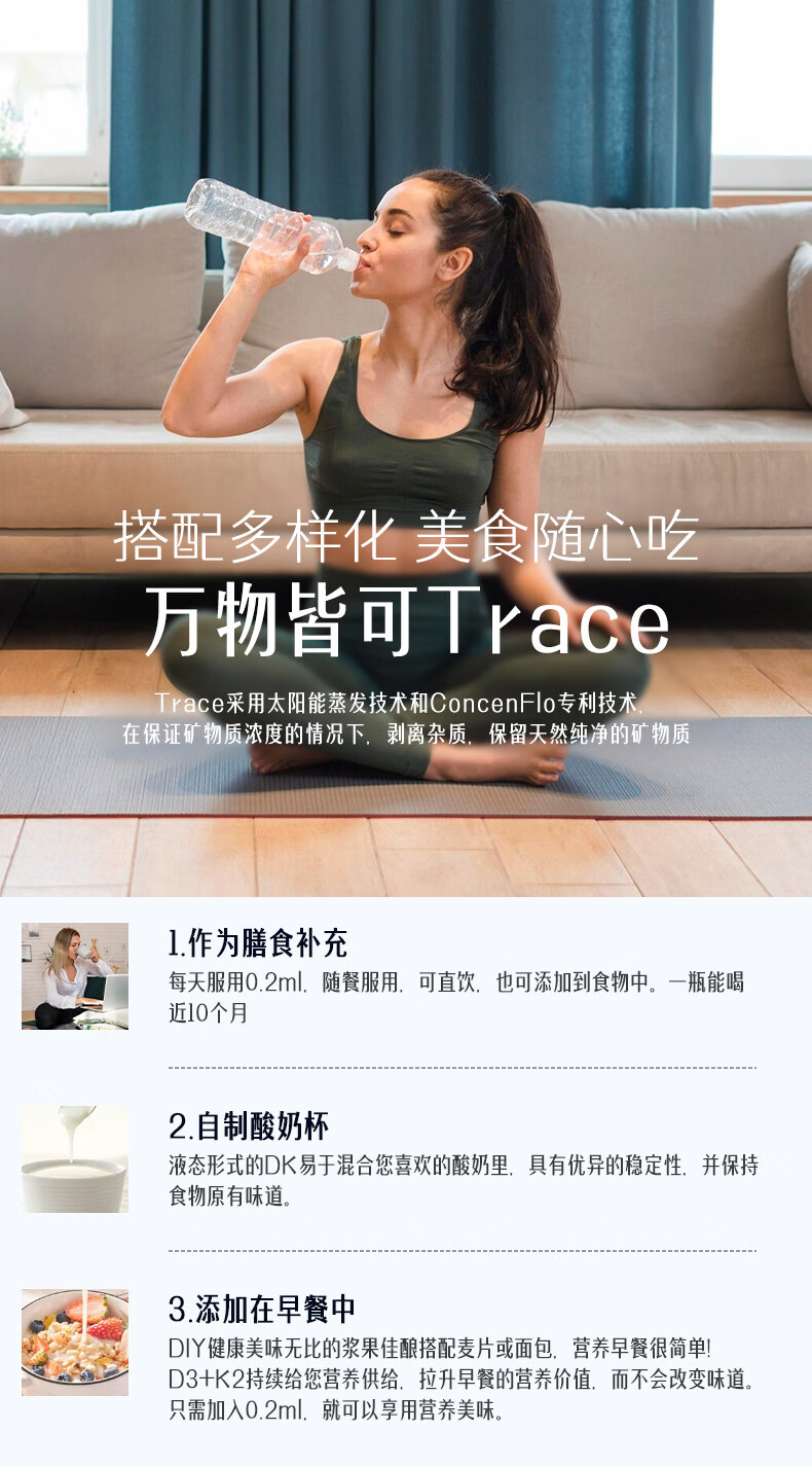 trace液体维生素D3+K2滴剂促钙吸收预防骨质疏松孕妇儿童促进成长发育 59ml*1瓶