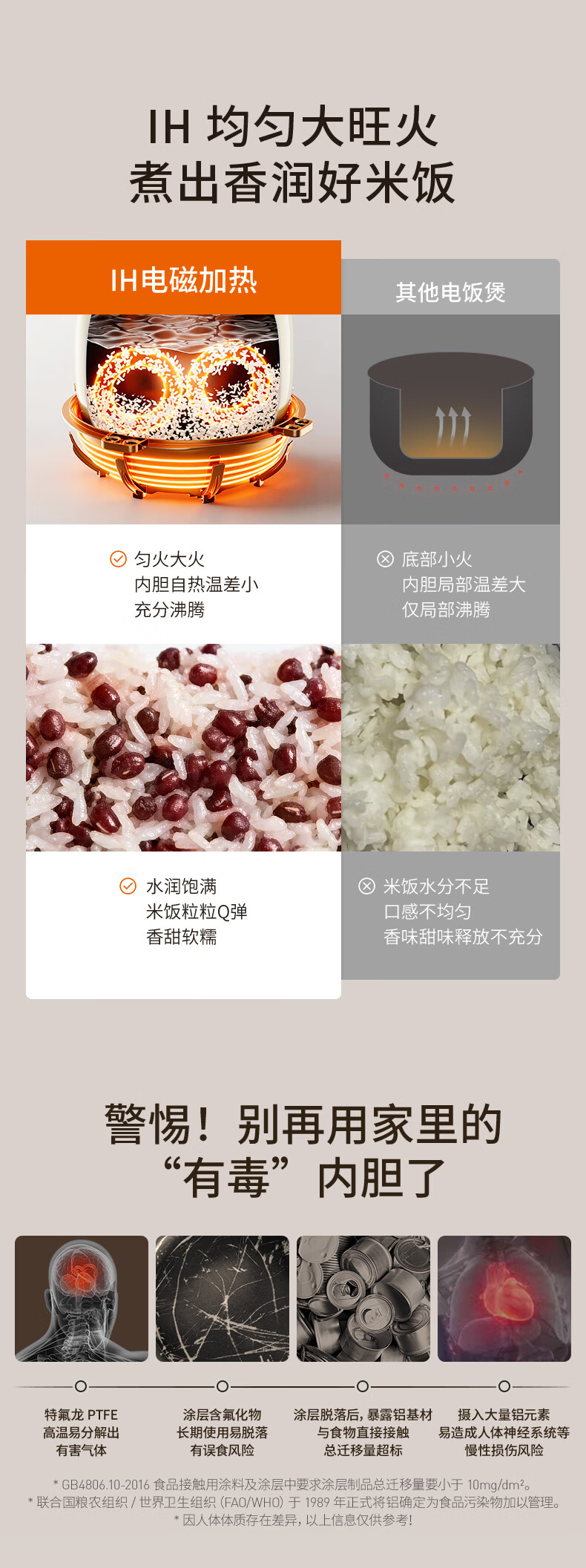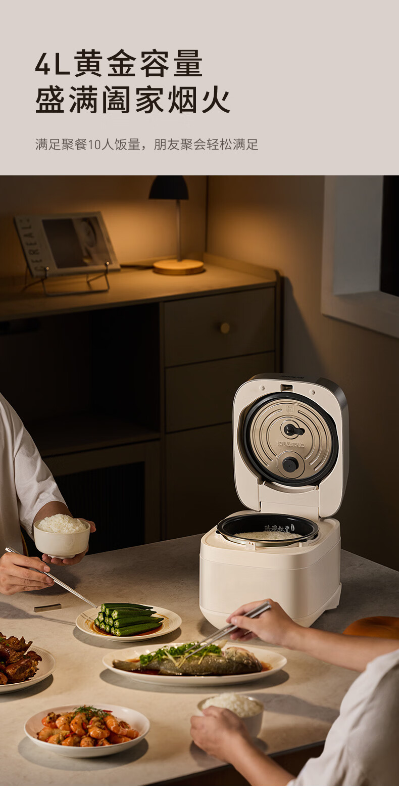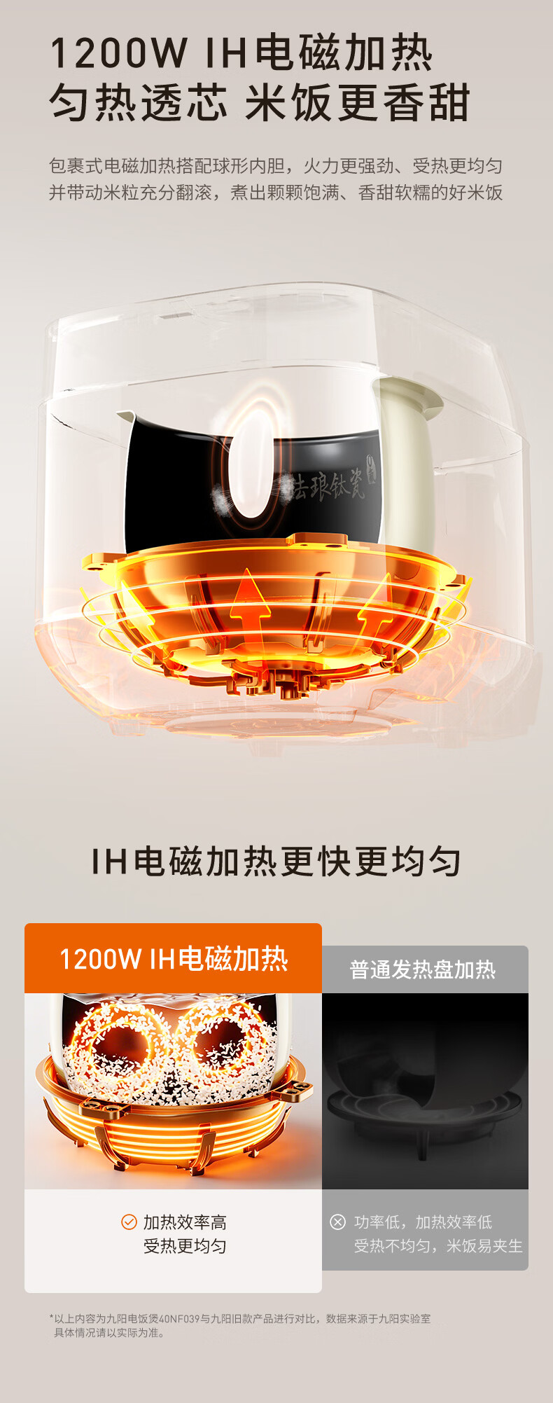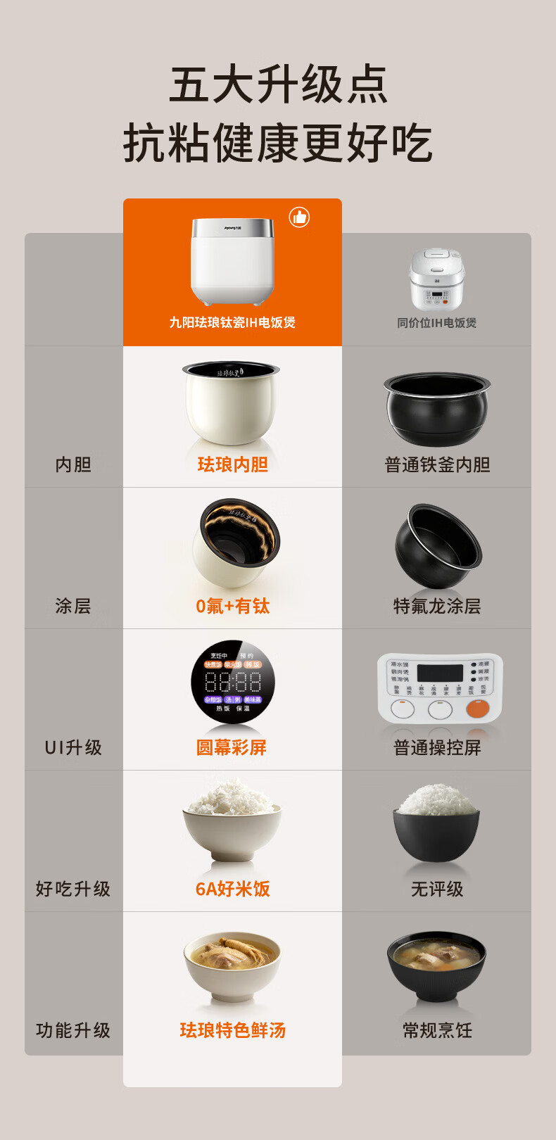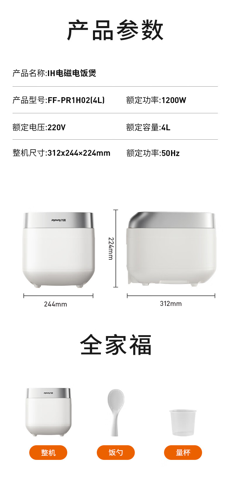 九阳(Joyoung)0氟系列珐琅钛瓷IH电饭煲4L电饭锅1200W含钛内胆3-4人0特氟龙6A饭微压快煮饭多功能 FF-PR1H02(4L)