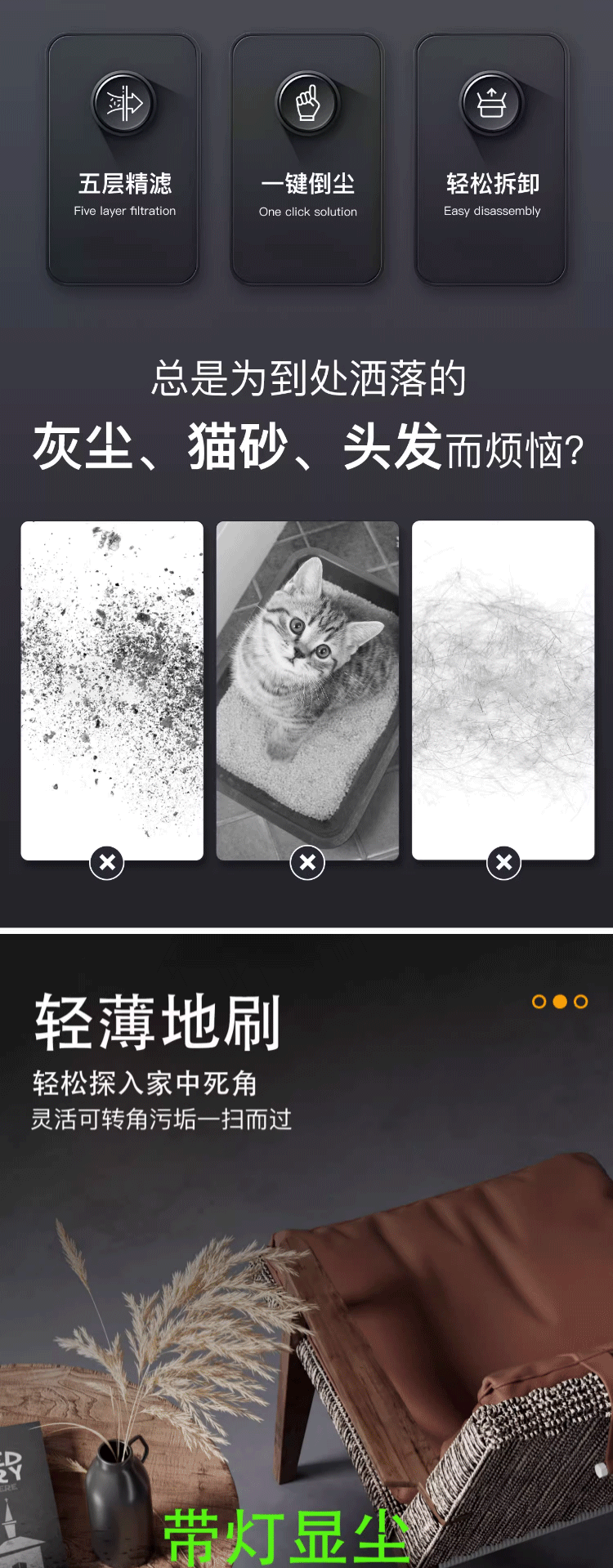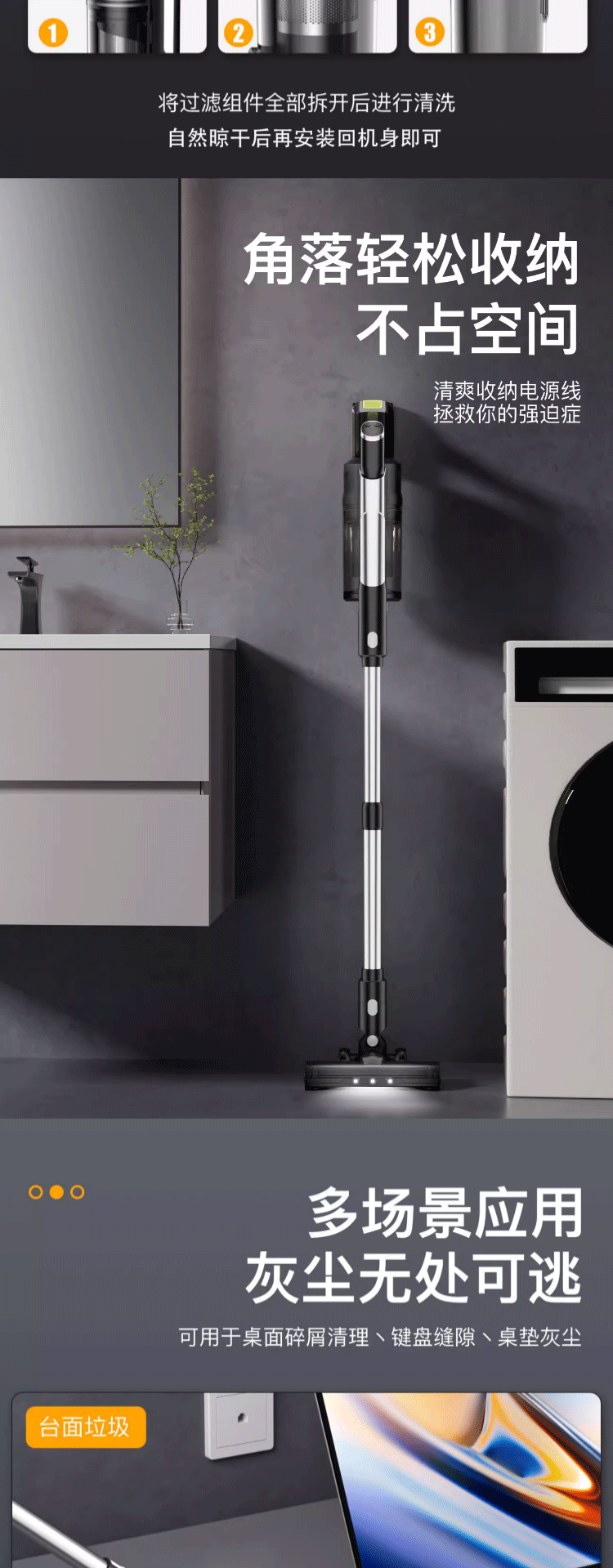 MOTOFEEL车载吸尘器手持小体积轻巧便携车家两用大吸力除螨吸猫毛地毯美缝长续航吸拖一体吸尘机 至尊版【无刷吸尘器】裸机无电池