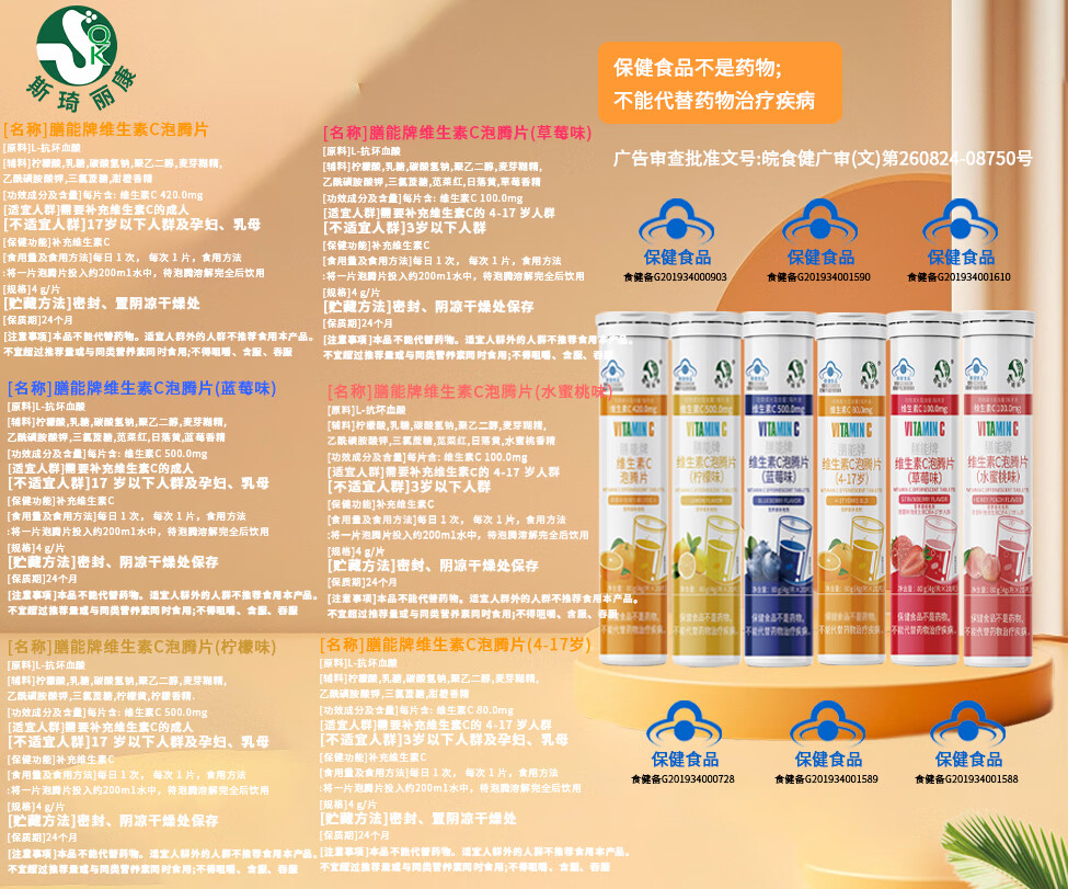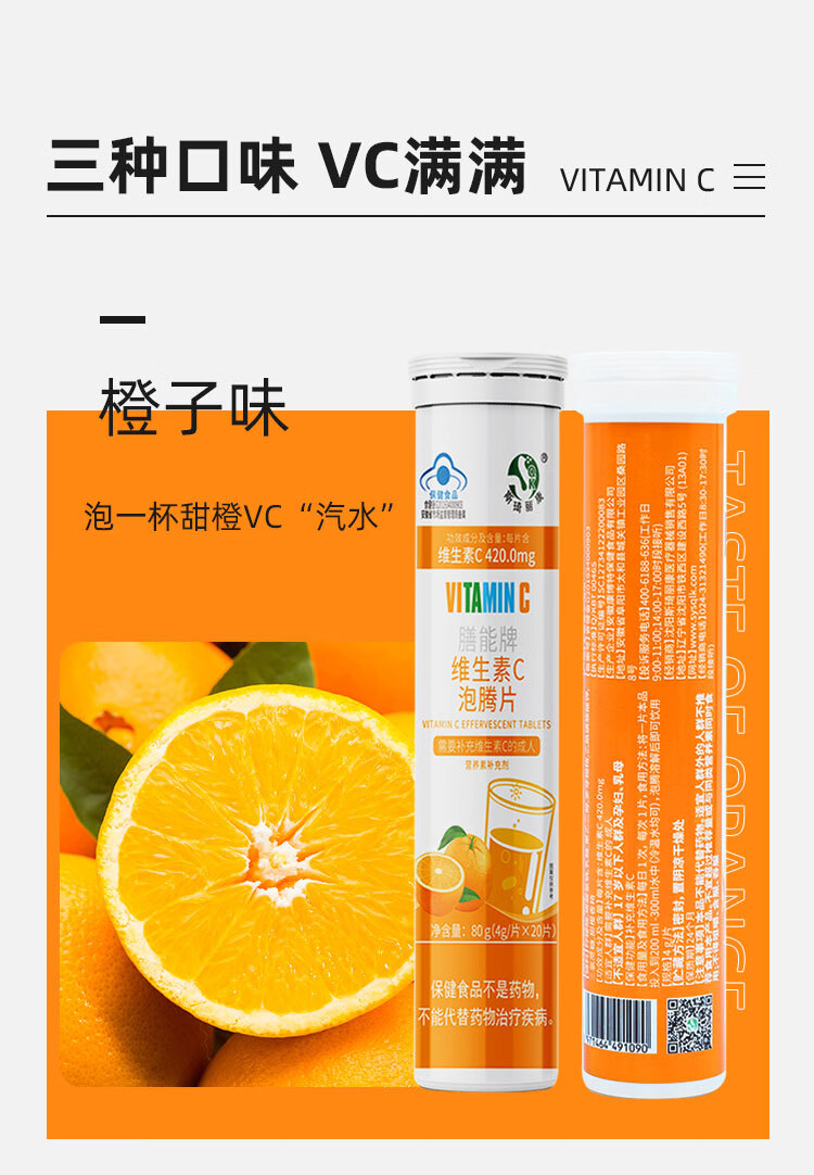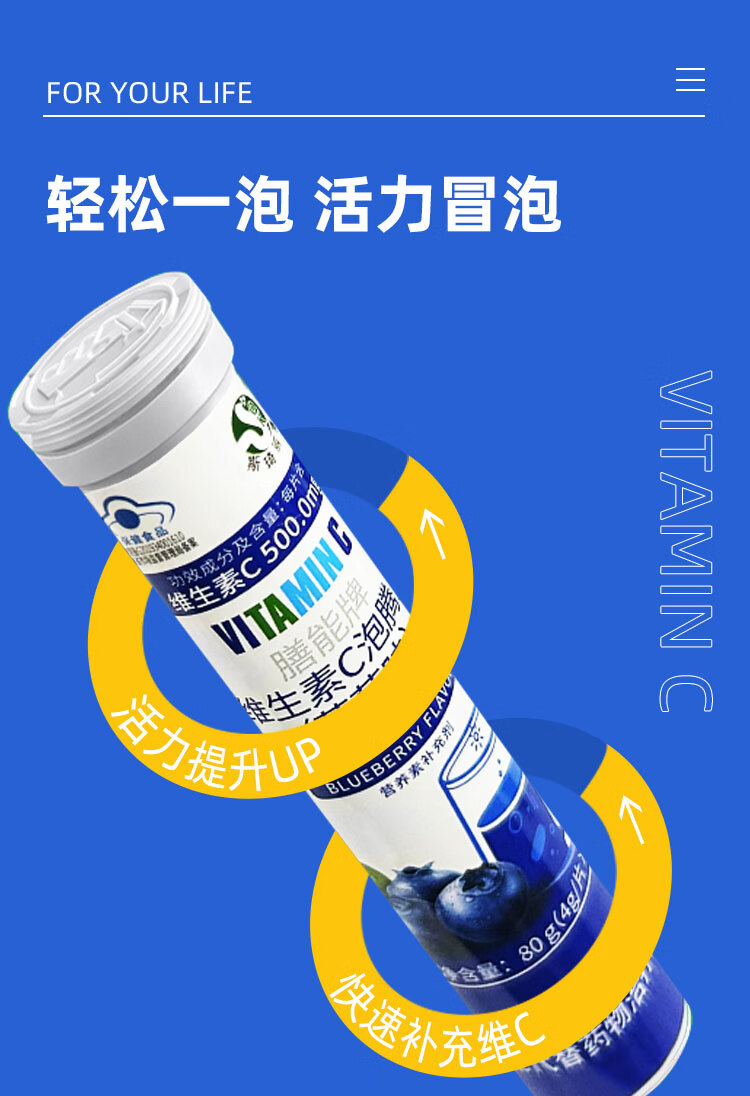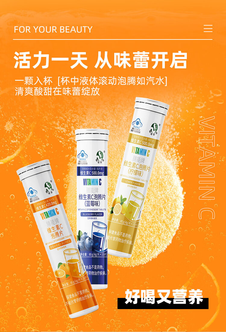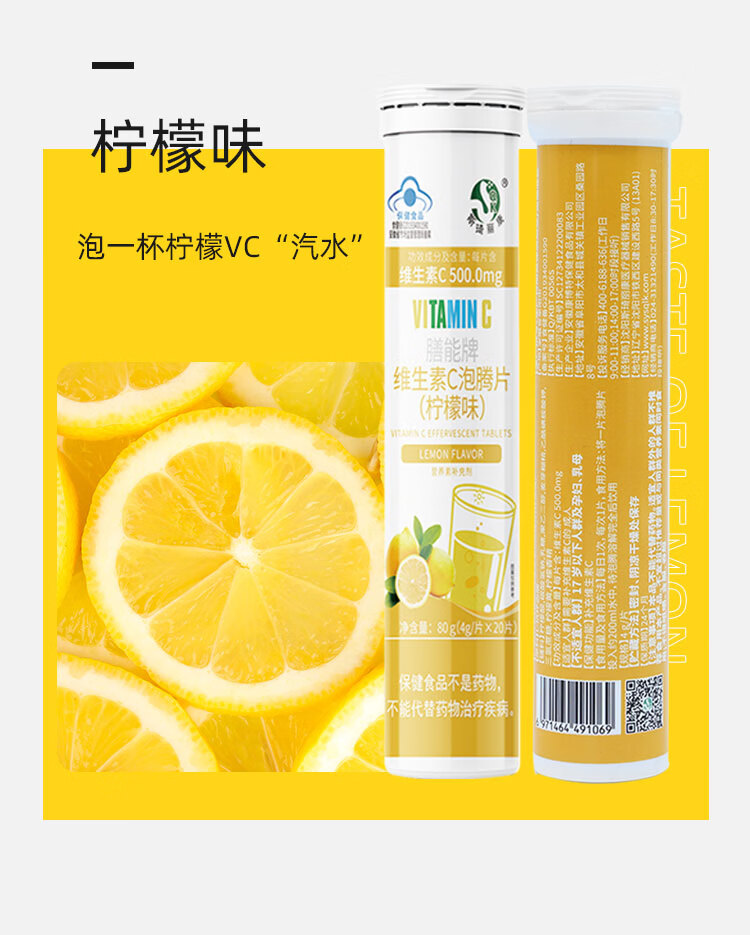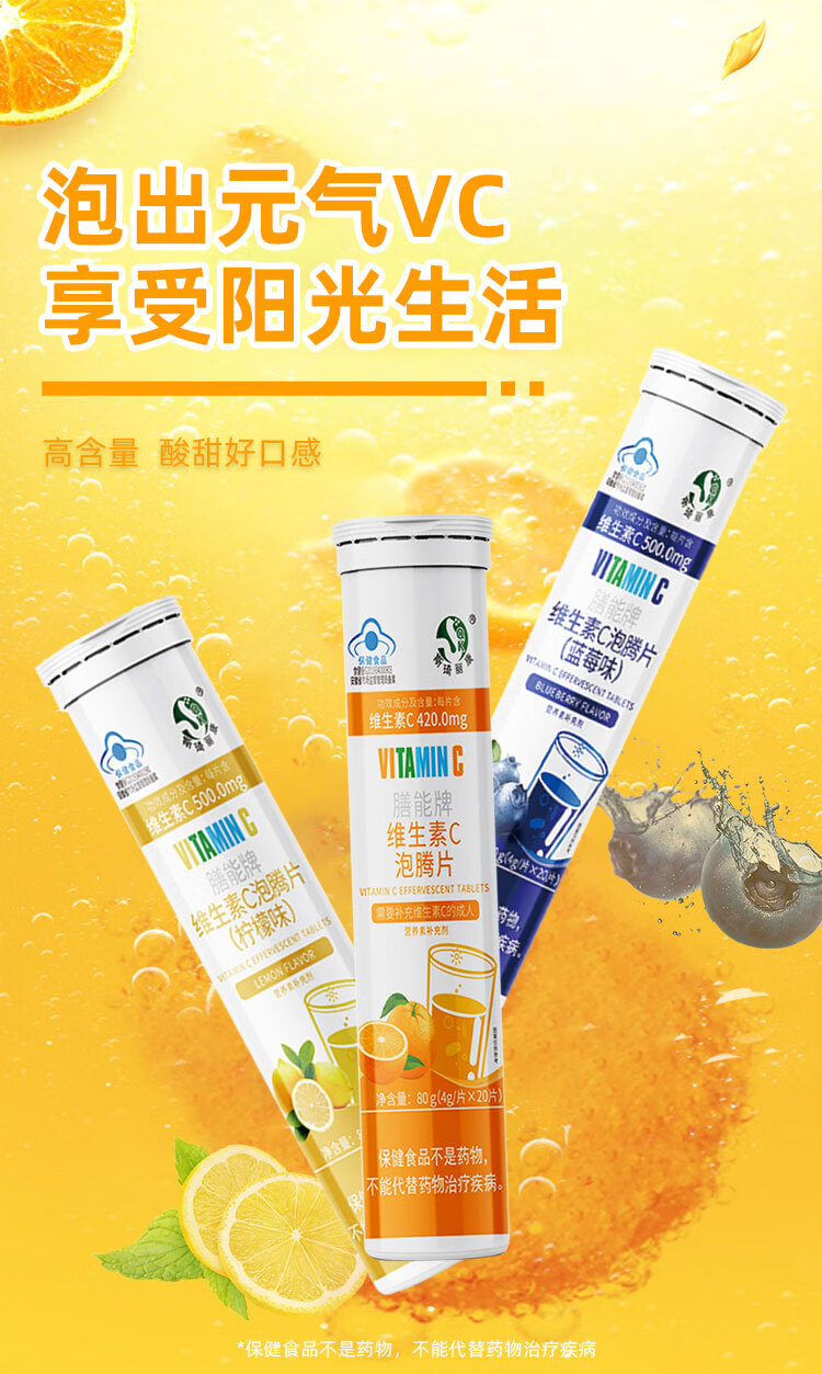 斯琦丽康 维生素C泡腾片成人营养素补维生素C成人蓝帽认证三种口味高含量 【高含量VC】柠檬味VC泡腾片 20片*1瓶 1瓶