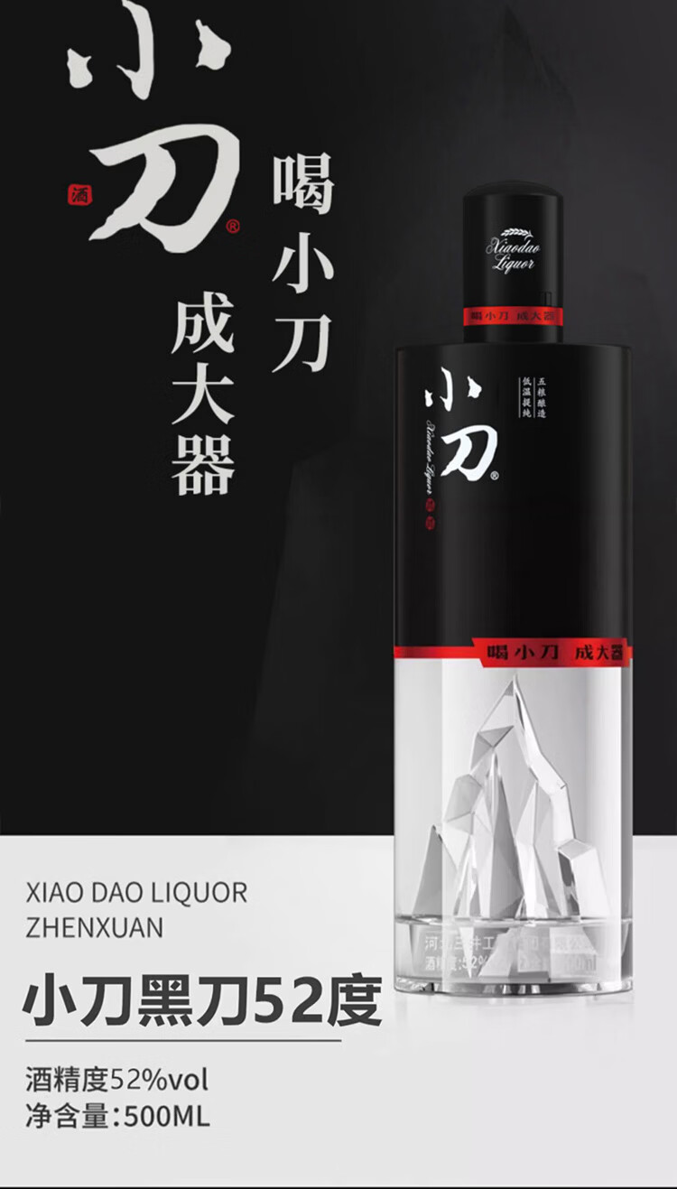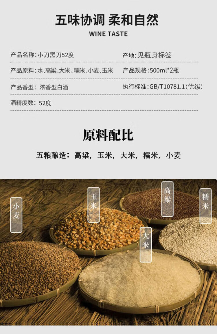 小刀酒52度黑刀 浓香型白酒 纯粮酒礼盒 送礼 整箱白酒 52度 500mL 2瓶 礼盒