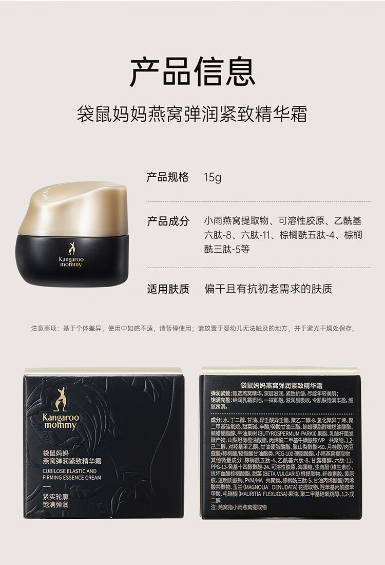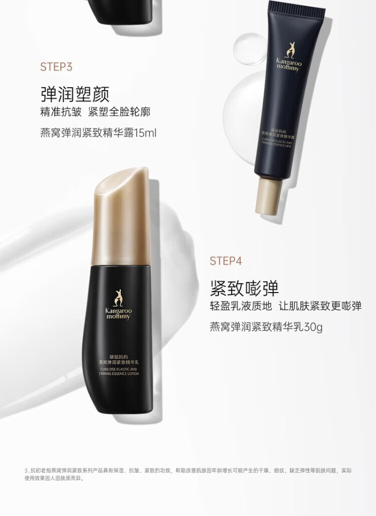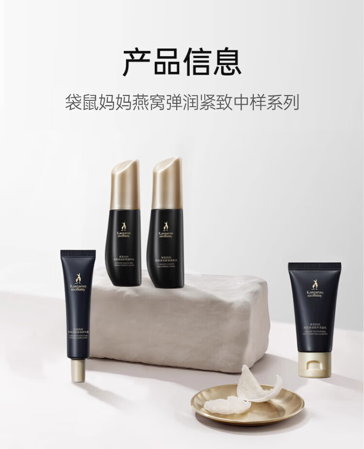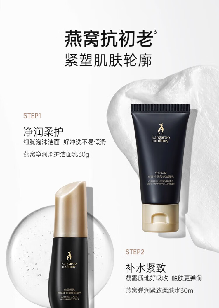 袋鼠妈妈(Kangaroo Mommy)燕窝洗面奶滋润紧致保湿精华水乳液面霜温和抗皱护肤品套装 燕窝3件套礼盒款(洁面+水乳)