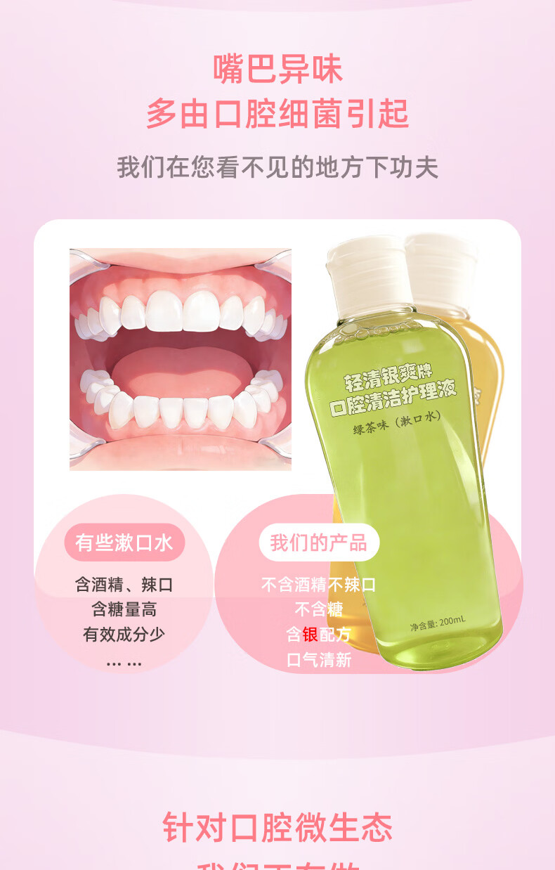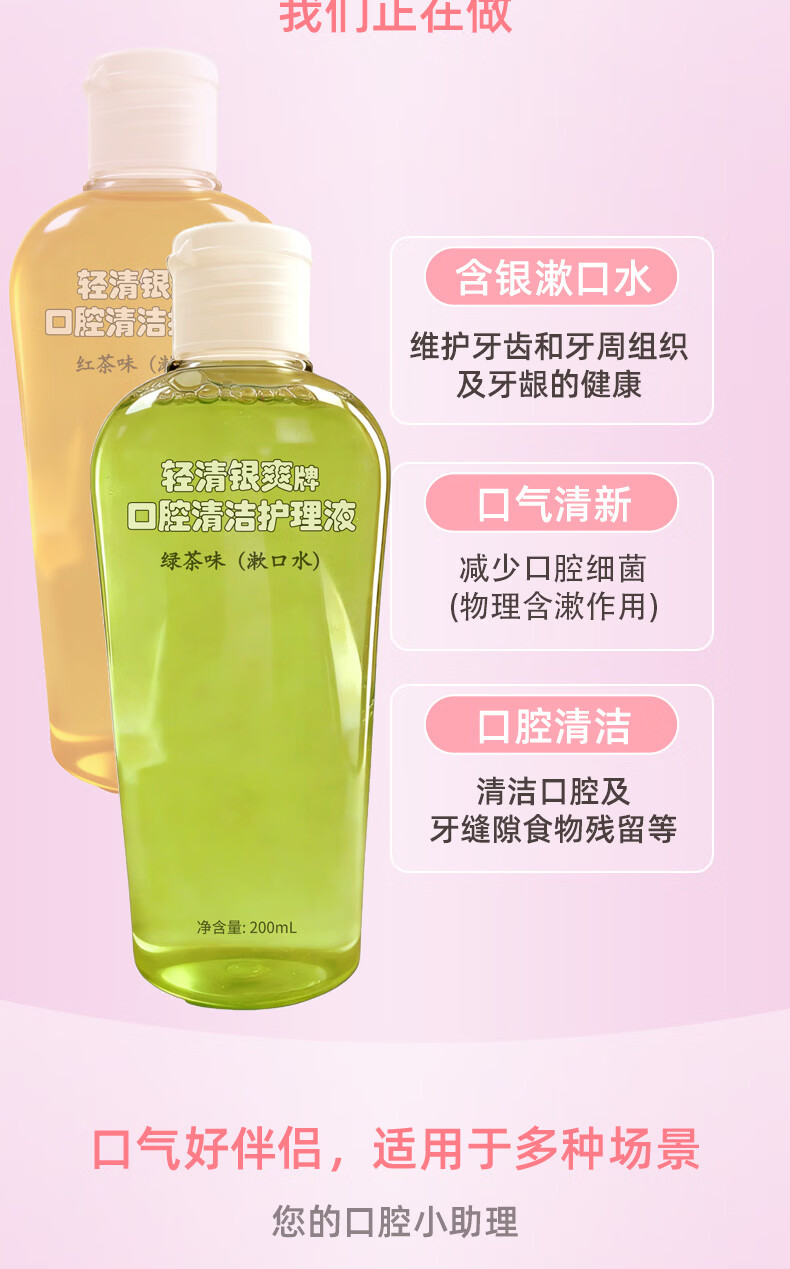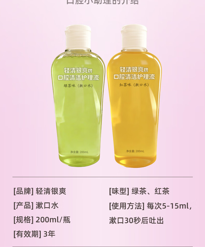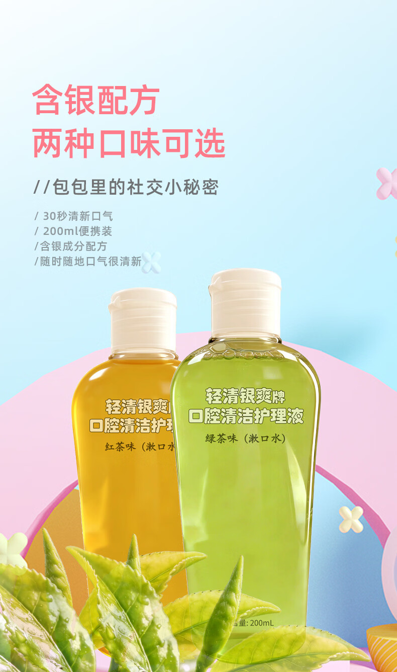 轻清银爽口腔清洁护理液200ml便携式漱口水 清洁口腔 口腔清新 红茶绿茶味 绿茶味200ml