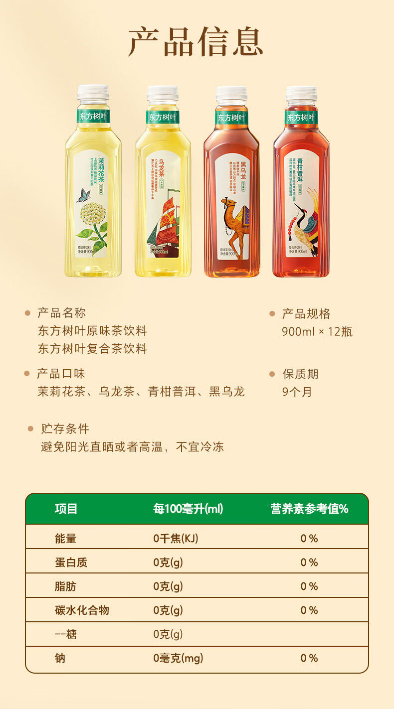 农夫山泉东方树叶无糖茶饮料900ml茉莉花茶整箱大瓶装乌龙茶 【900ml*1瓶】茉莉花茶