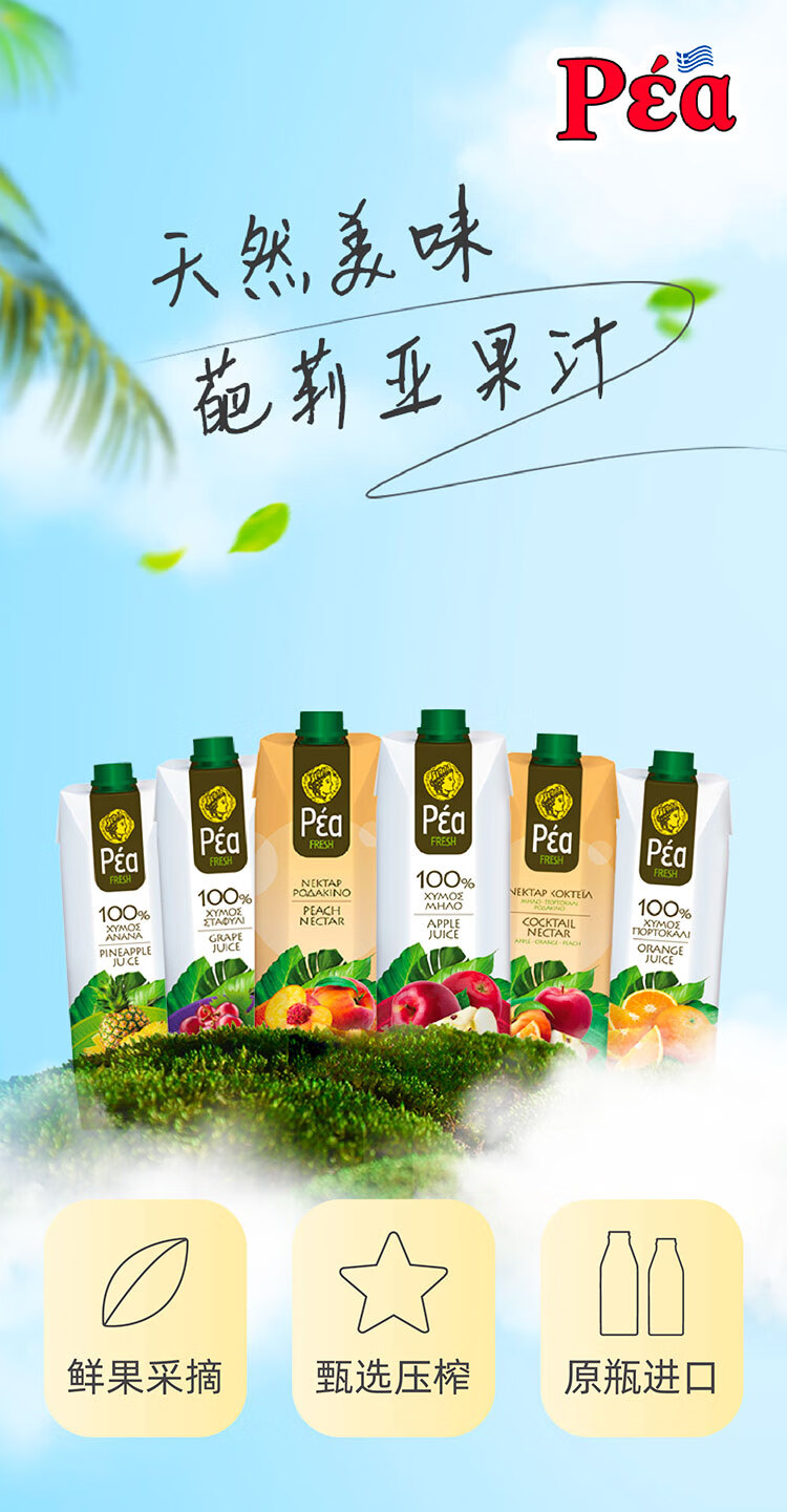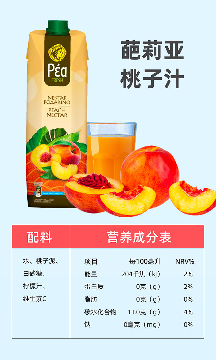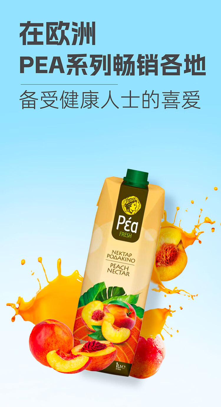葩莉亚【临期促销】希腊原装进口桃子汁果蔬汁 饮品果汁饮料 1L大瓶装 桃汁1L*12盒(到2026/5/19)