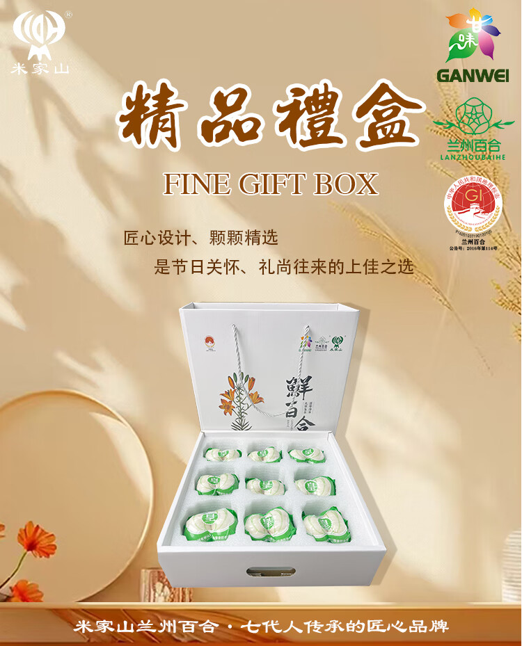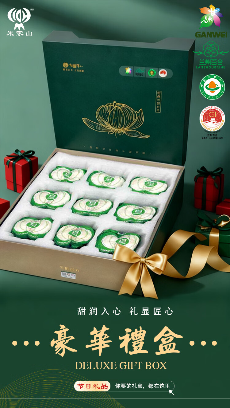 米家山【顺丰特快】兰州鲜百合礼盒装 兰州特产 特级甜百合 佳节送礼 大独头皇精品礼盒 9袋装