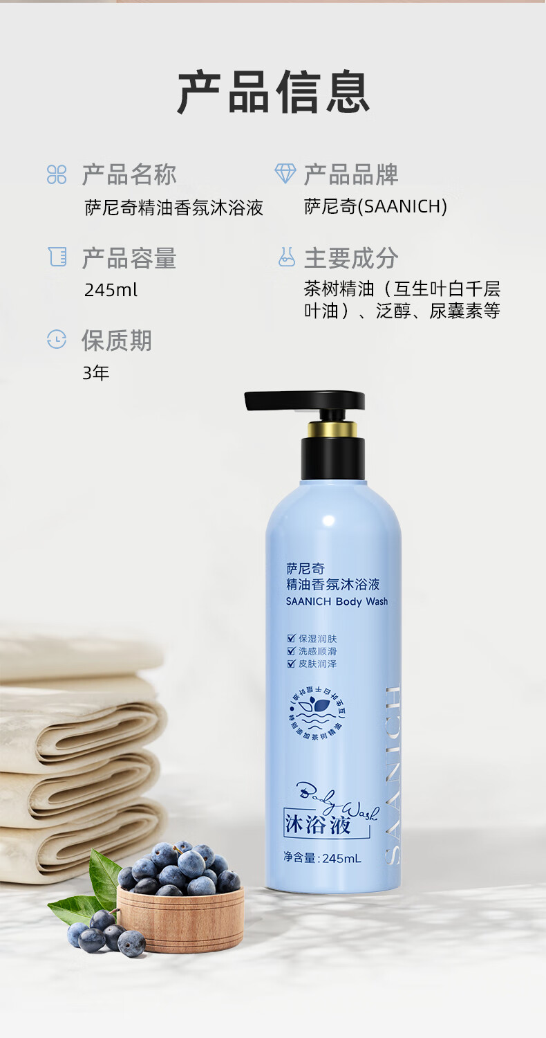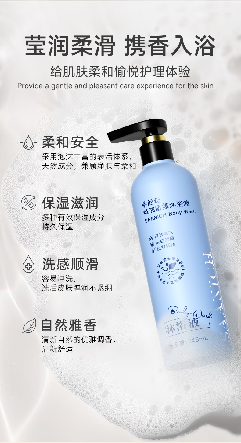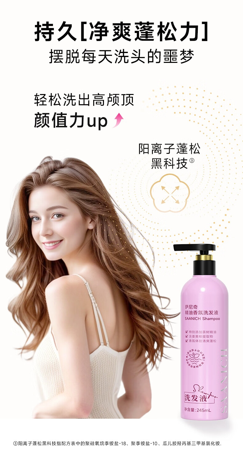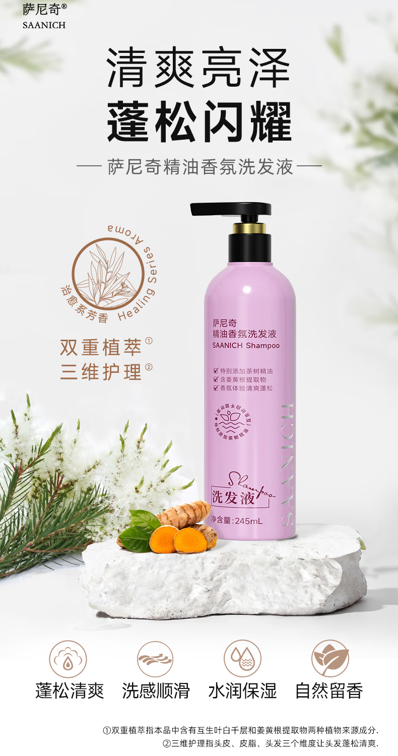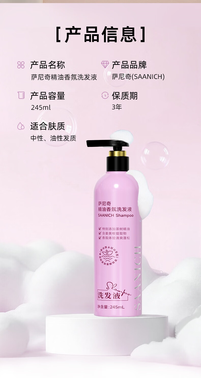 萨尼奇精油香氛洗发液245ml 男士女士洗发水蓬松清爽泡沫绵密自然留香 精油香氛洗发液245ml+沐浴露245ml