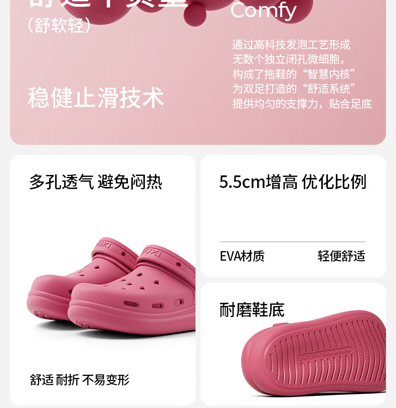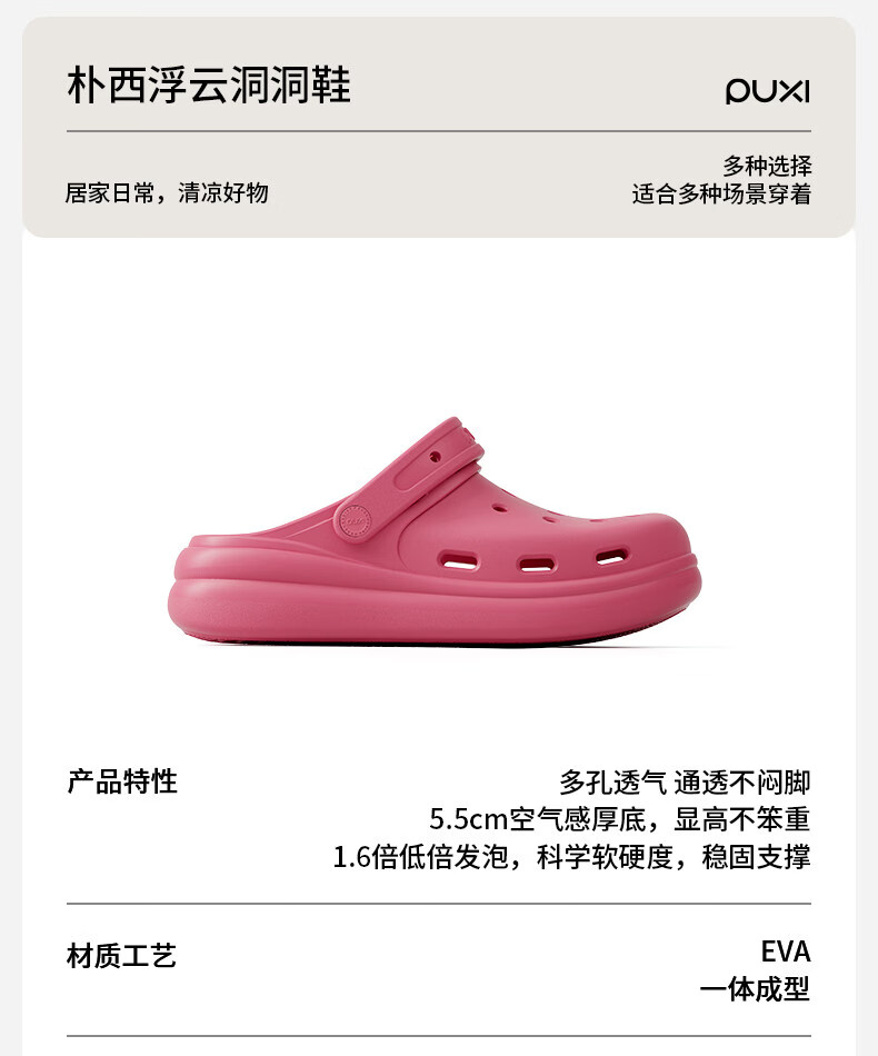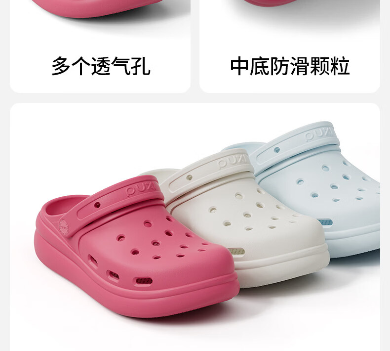 朴西浮云厚底洞洞鞋男夏eva可外穿防滑透气海边沙滩鞋凉拖鞋女士 礁石黑 39-40