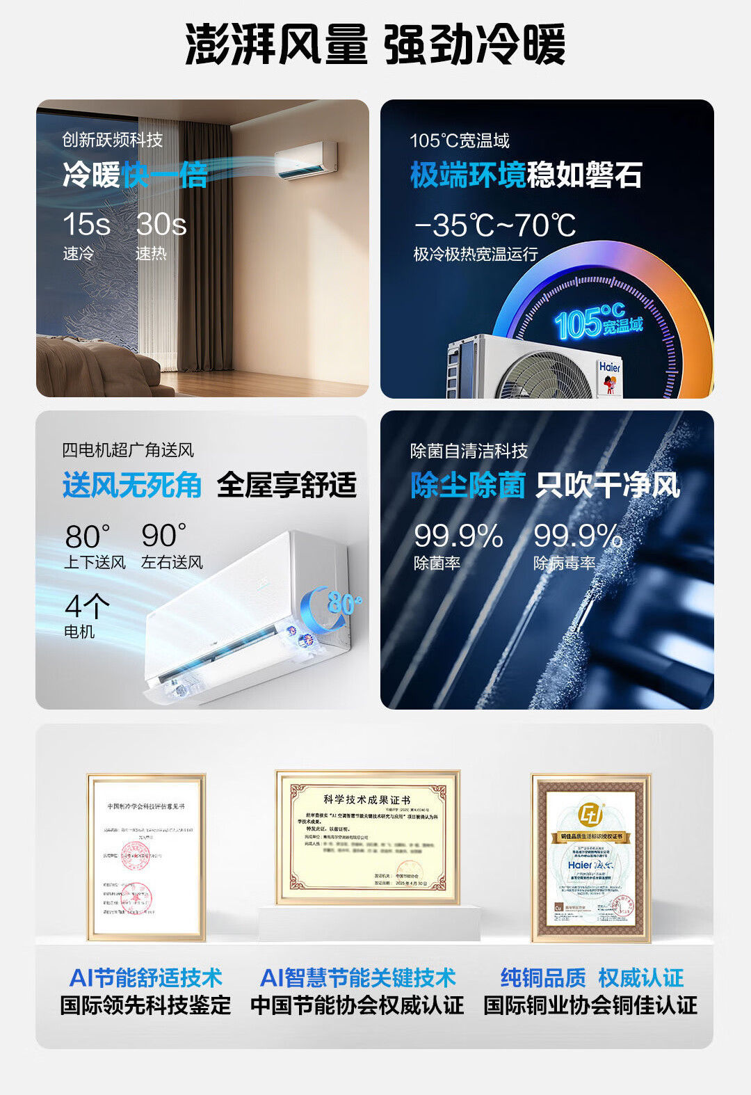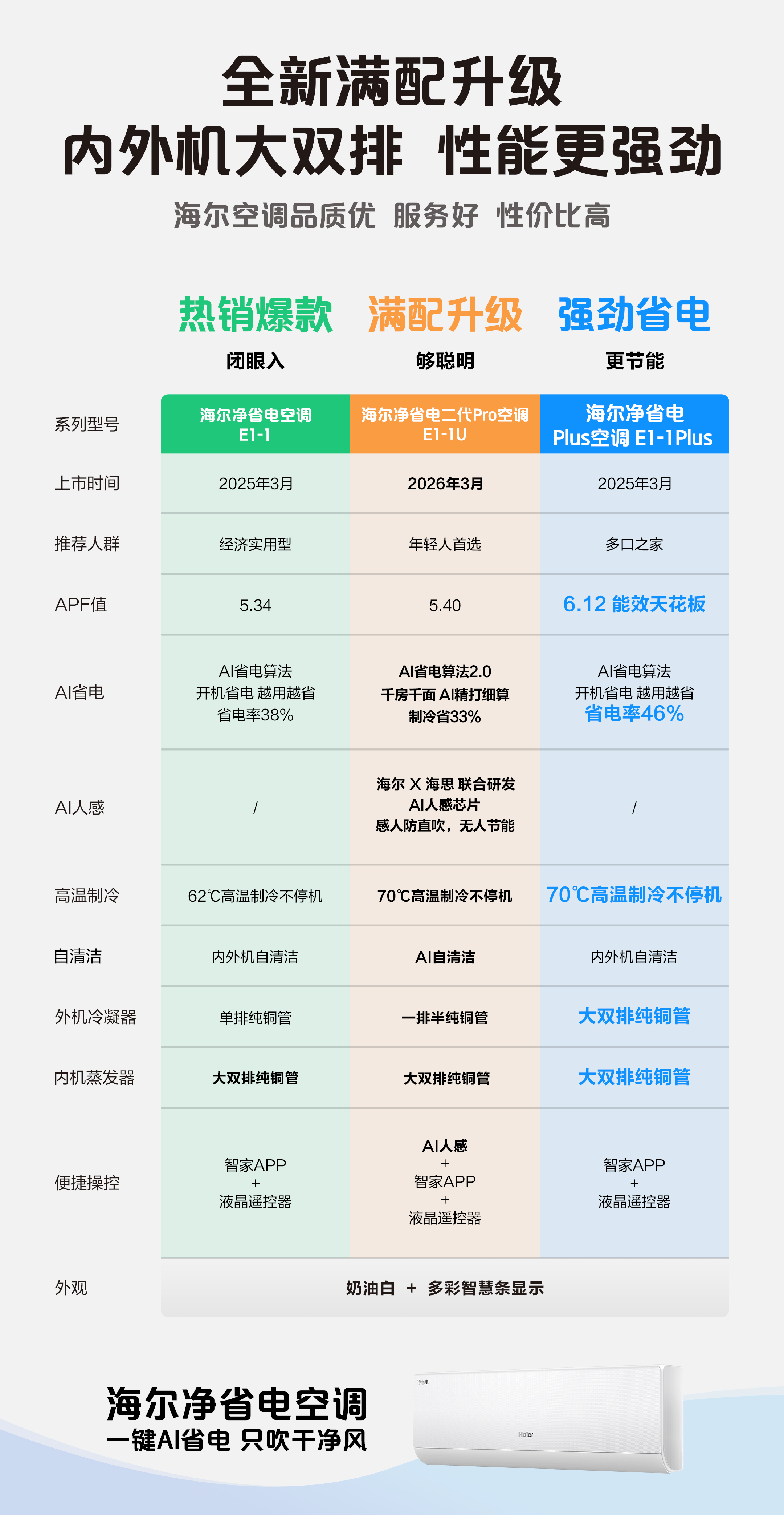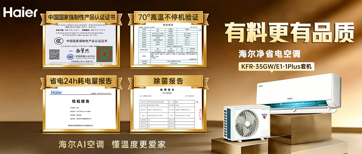 海尔空调1.5匹净省电plus一级能效小红花双排铜管变频冷暖挂机以旧换新节能静音家用KFR-35GW/E1-1Plus 【净省电Plus】1.5匹 APF6.12 | 双排铜管