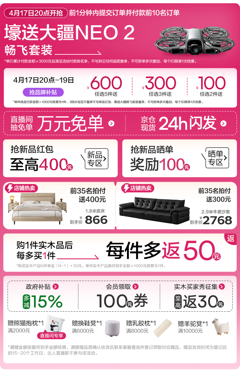 04月16日:高洁丝任选5件 至高300片 到手36.4元