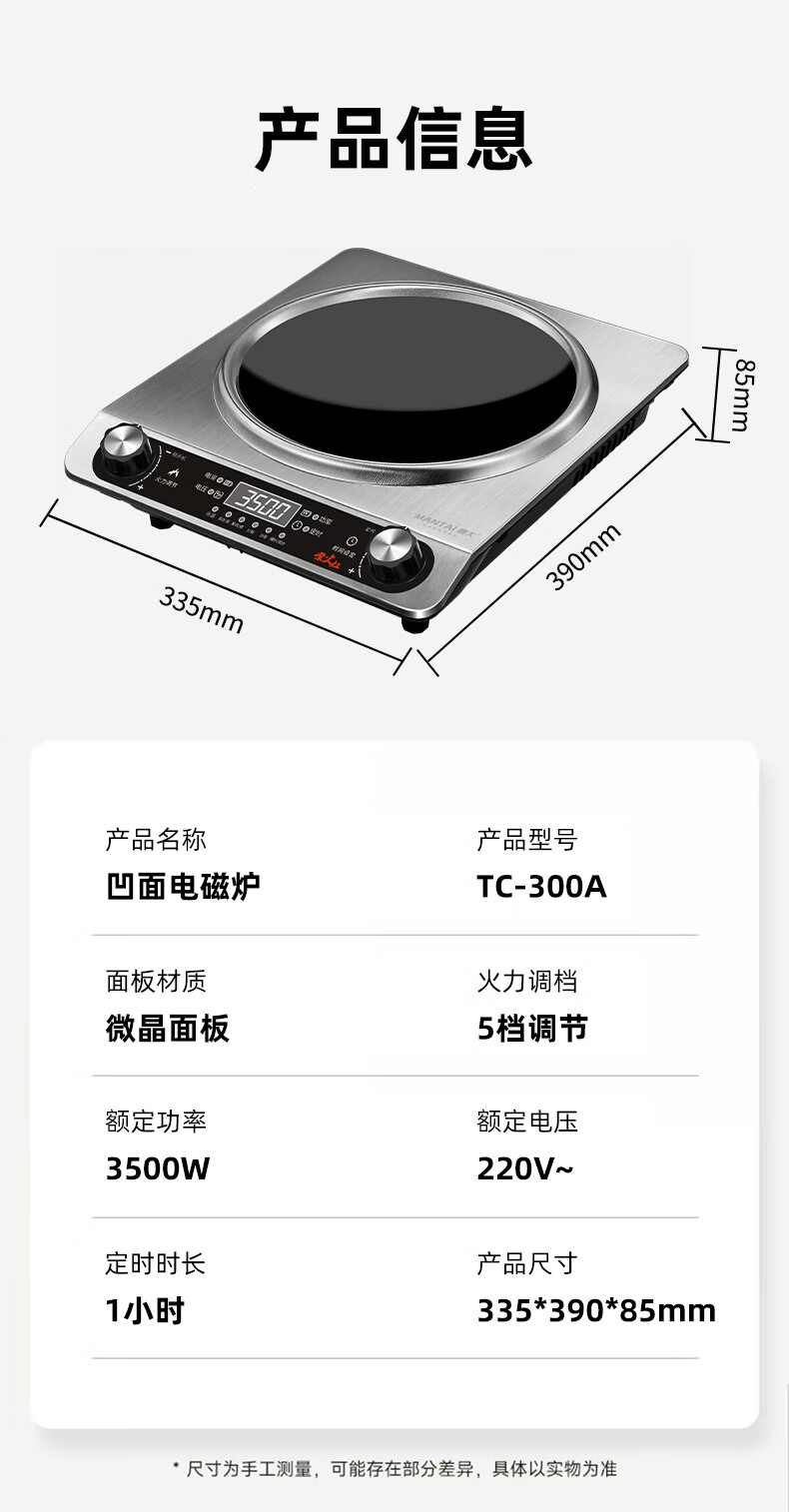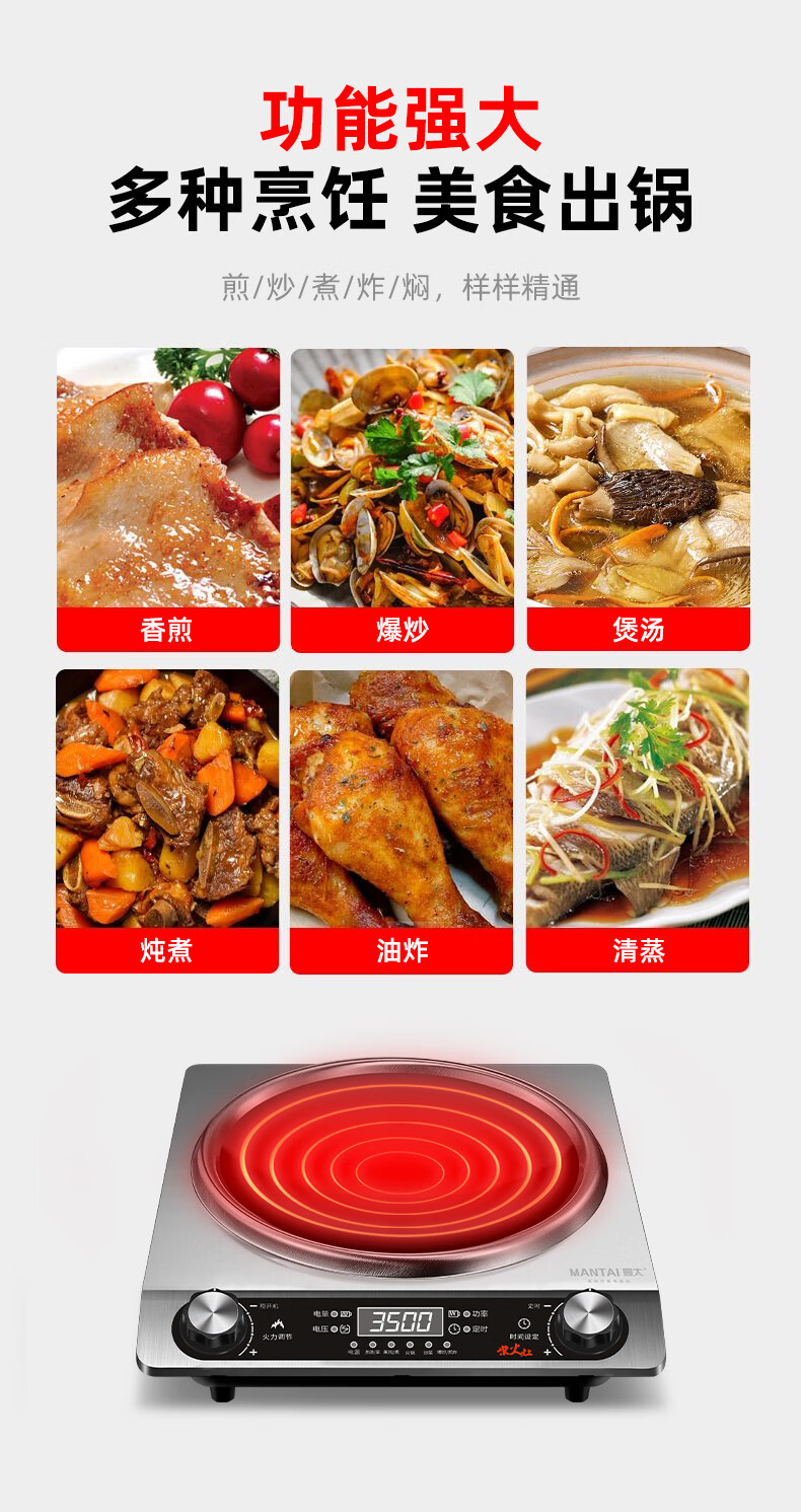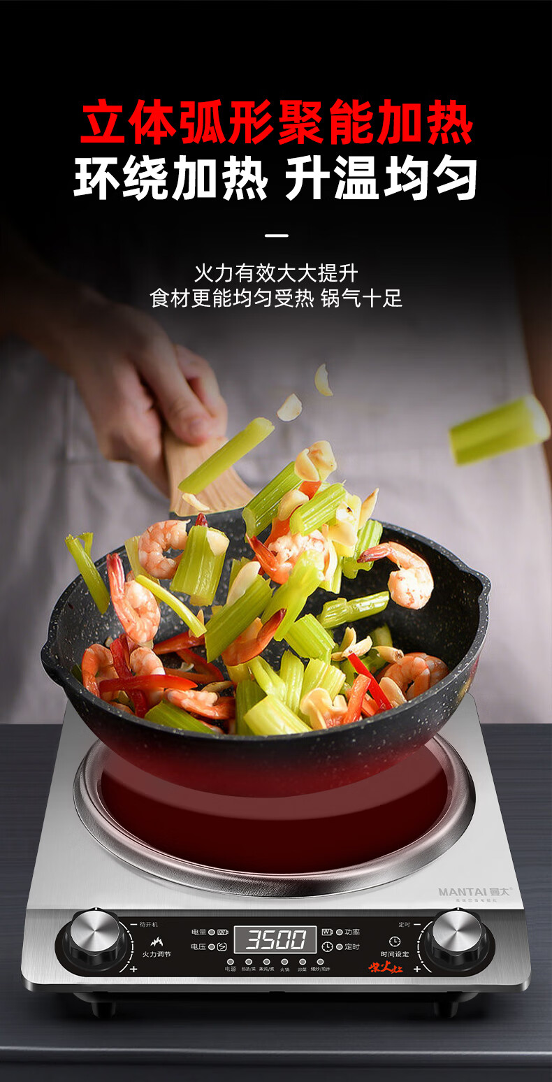 曼太(MANTAI)凹面电磁炉3500w大功率电磁炉专用炒菜锅家用多功能蒸煮一体电磁炉凹槽电炒锅新款TC-300A