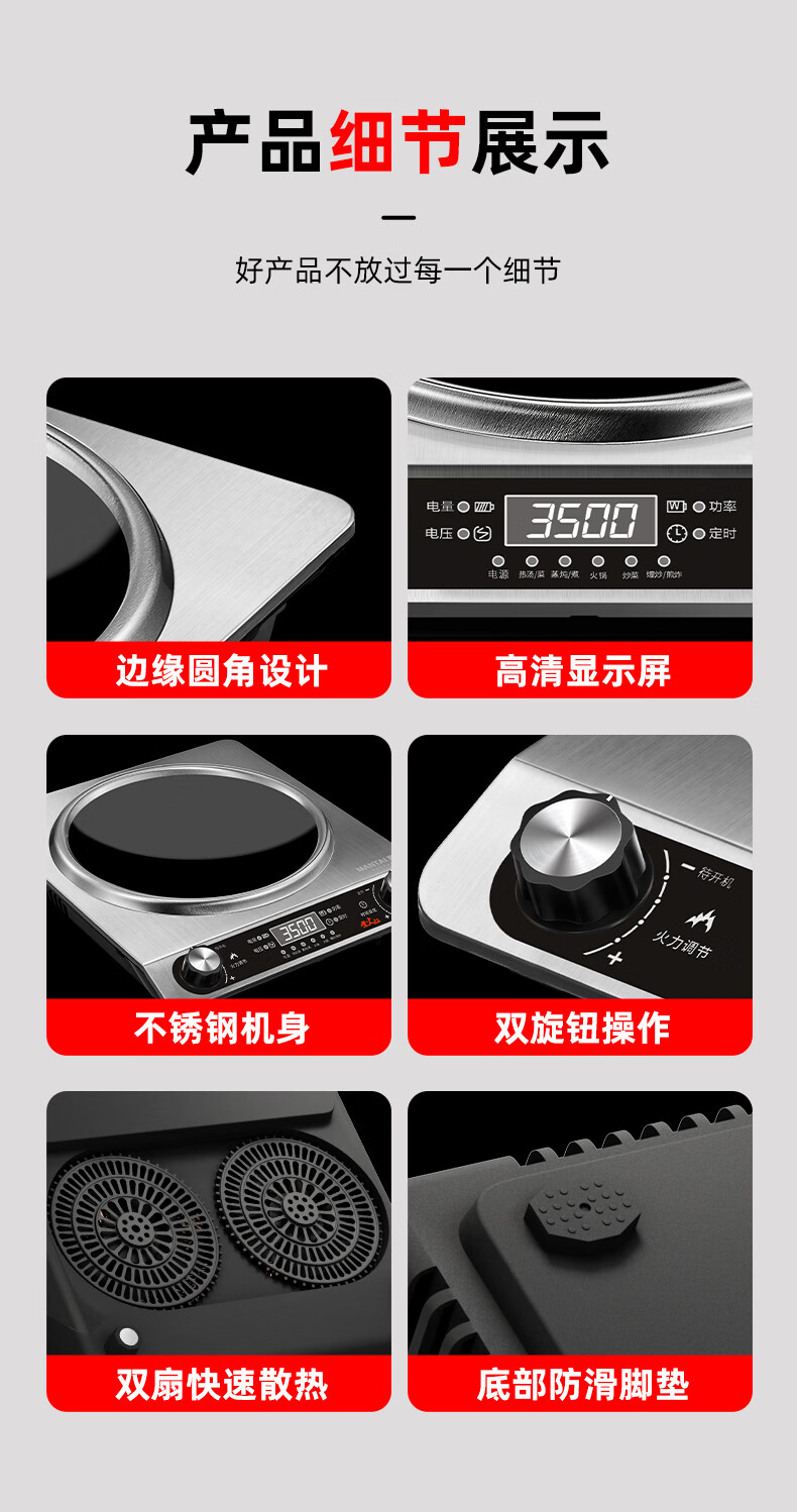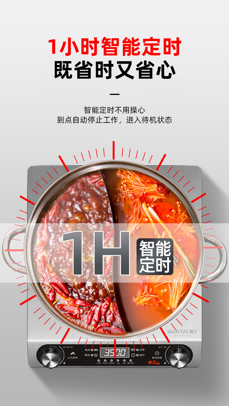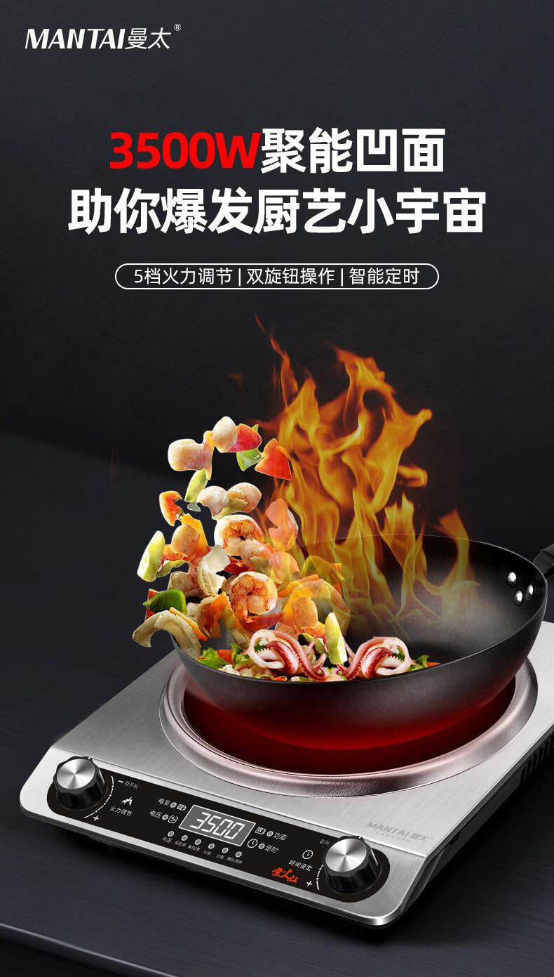 曼太(MANTAI)凹面电磁炉3500w大功率电磁炉专用炒菜锅家用多功能蒸煮一体电磁炉凹槽电炒锅新款TC-300A