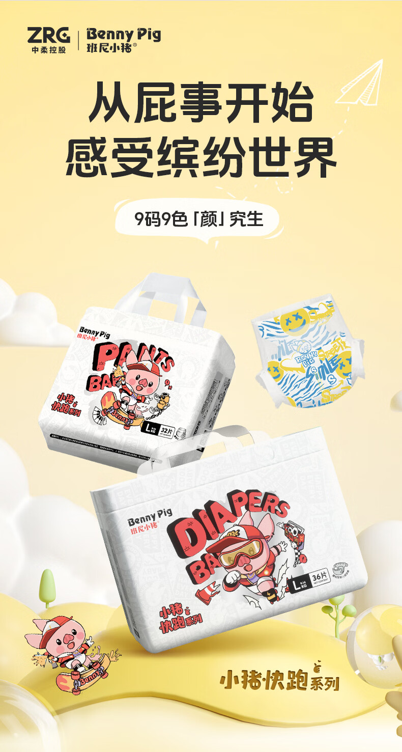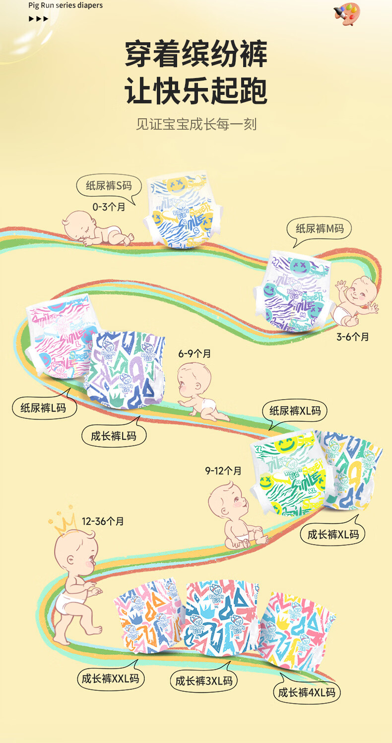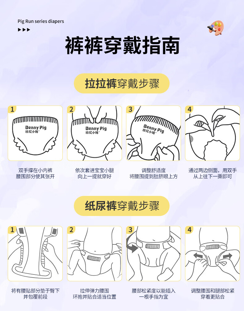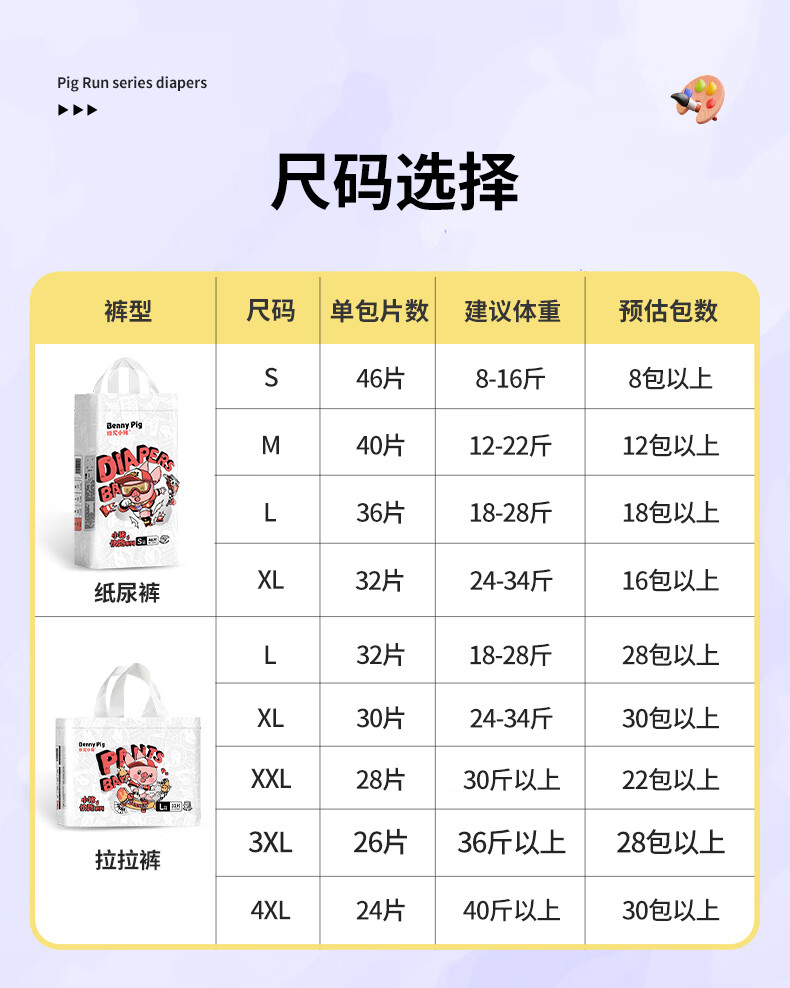 班尼小猪旗舰正品小猪快跑全包臀拉拉裤薄款婴幼儿尿不湿紫草精华4包 2XL拉拉裤 28片/包(15KG以上)4包