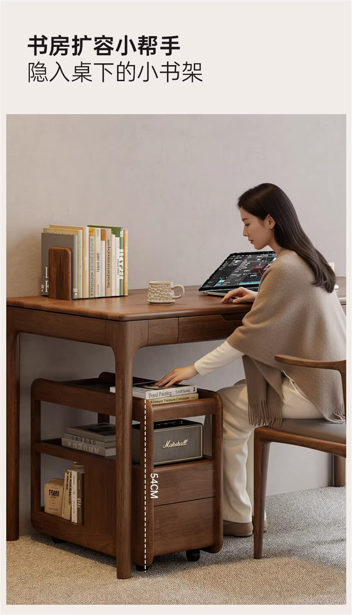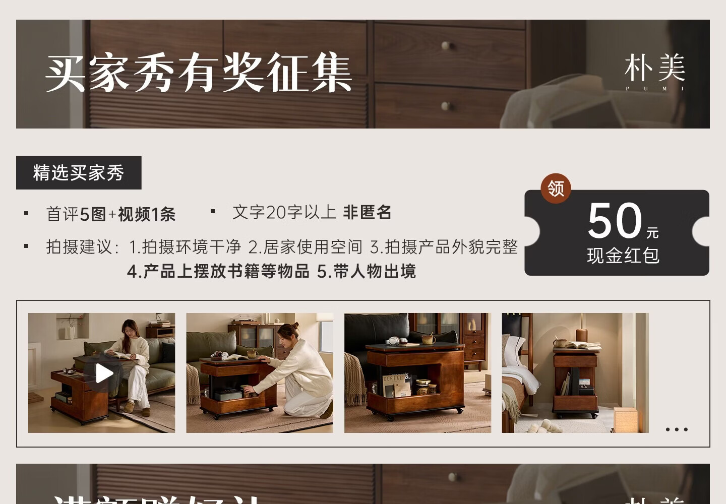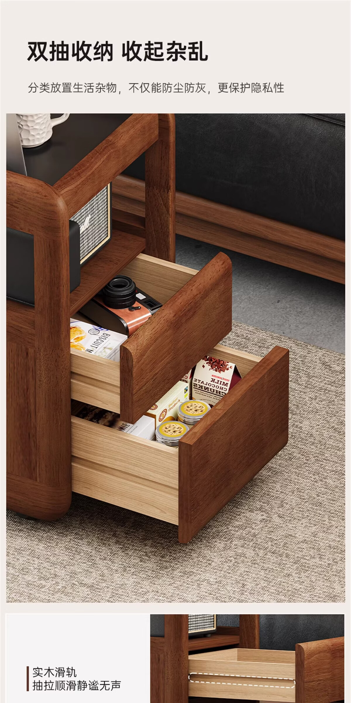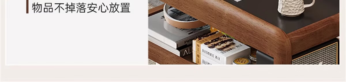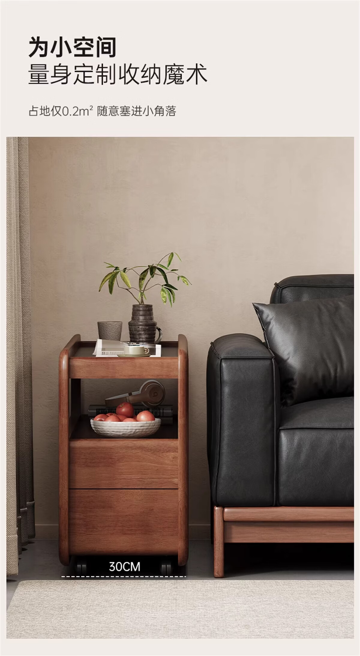 朴美中古风实木边几客厅岩板茶几可移动沙发侧边桌家用零食收纳小推车