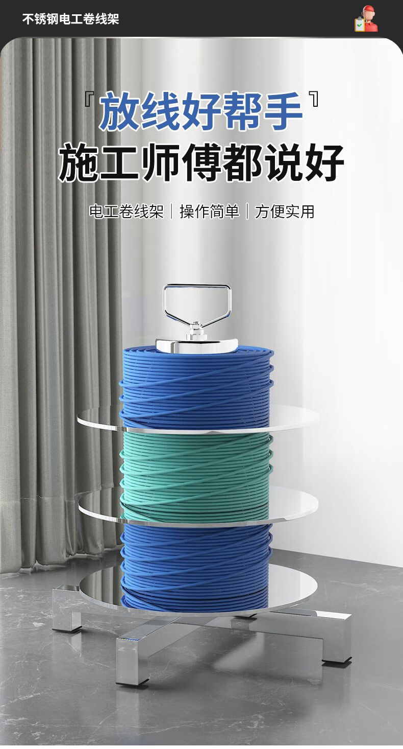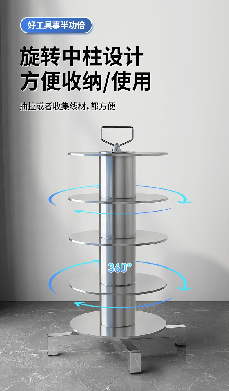 电线放线器多盘放线架可调转速电工专用放线架子不锈钢材质穿线器 大号-5盘直径40cm (1.5-16平方)