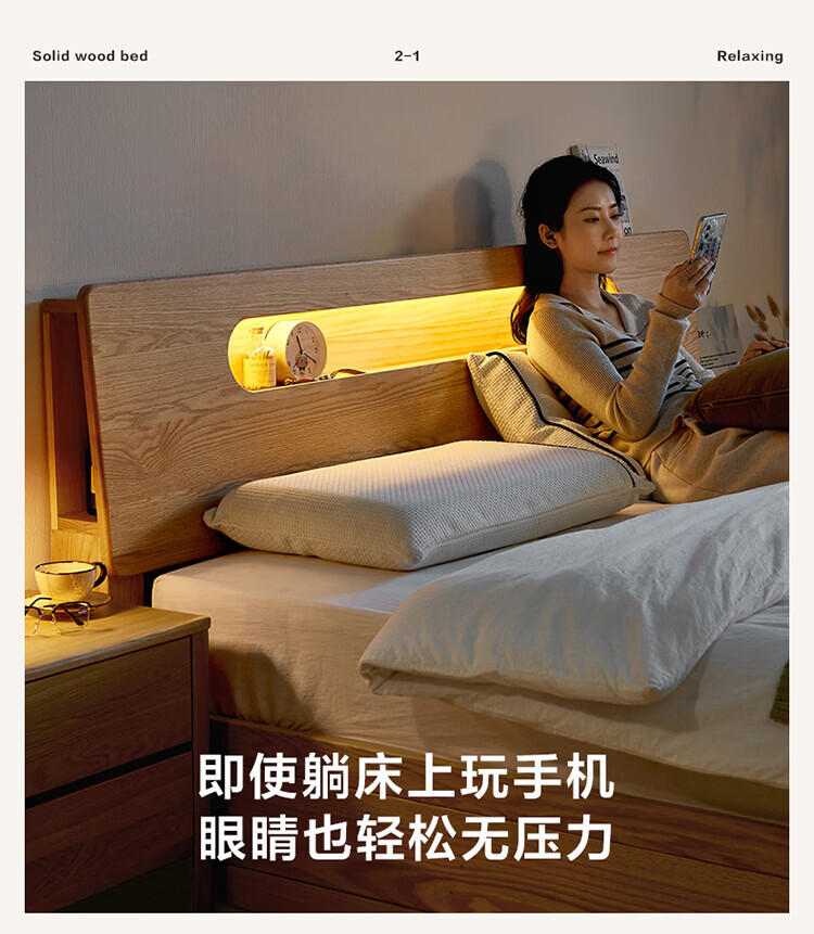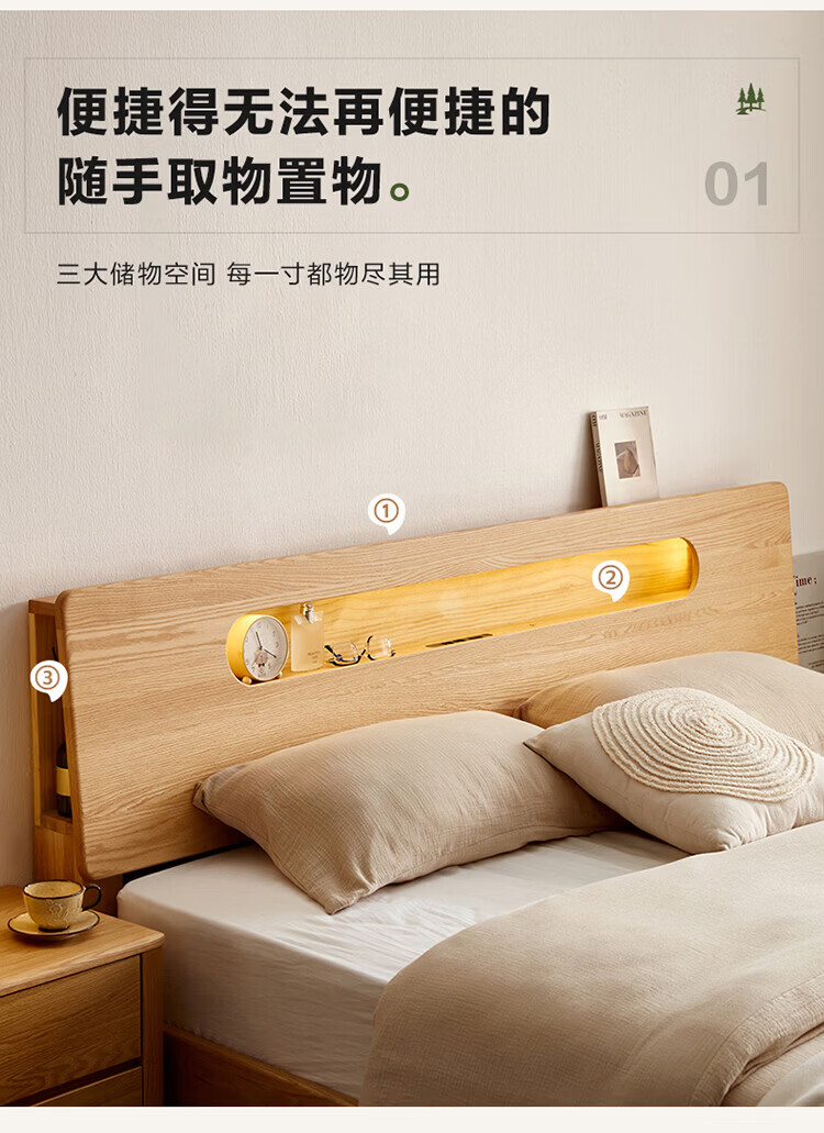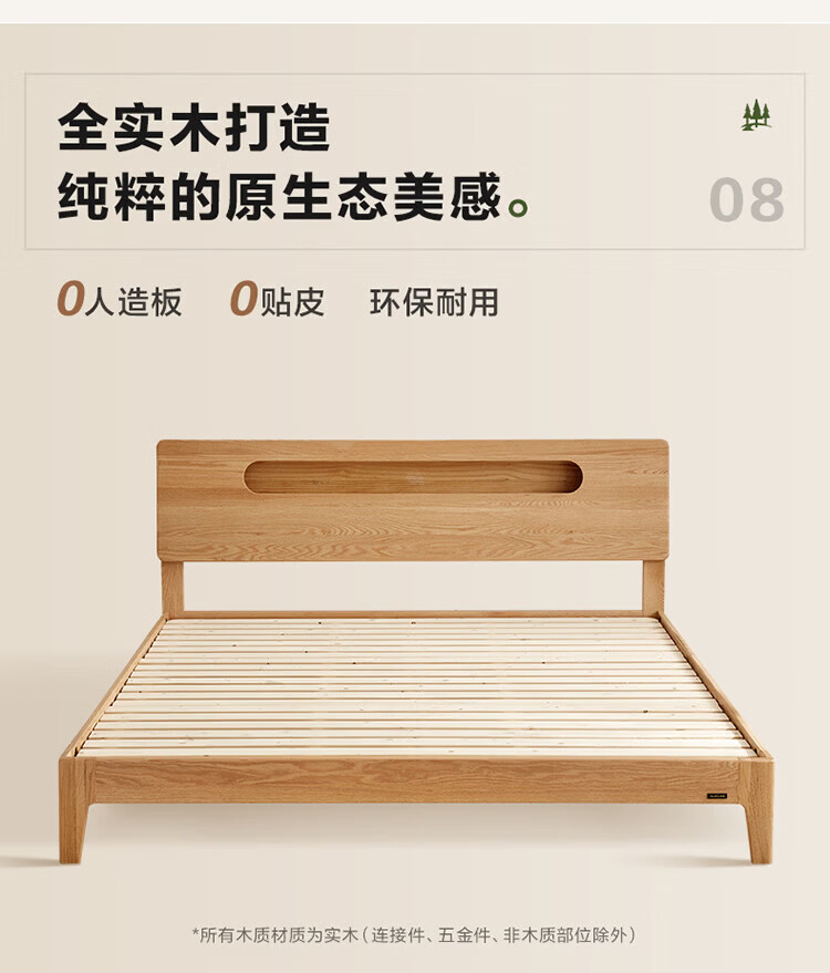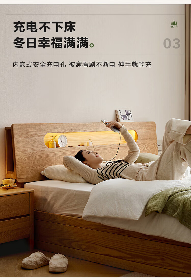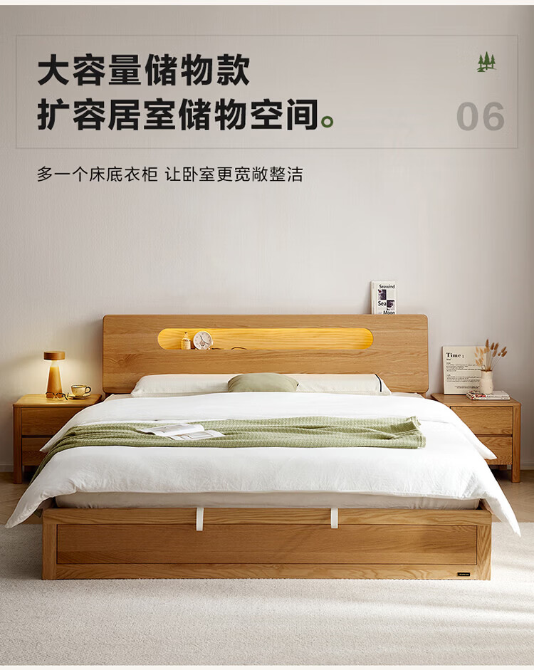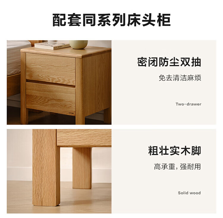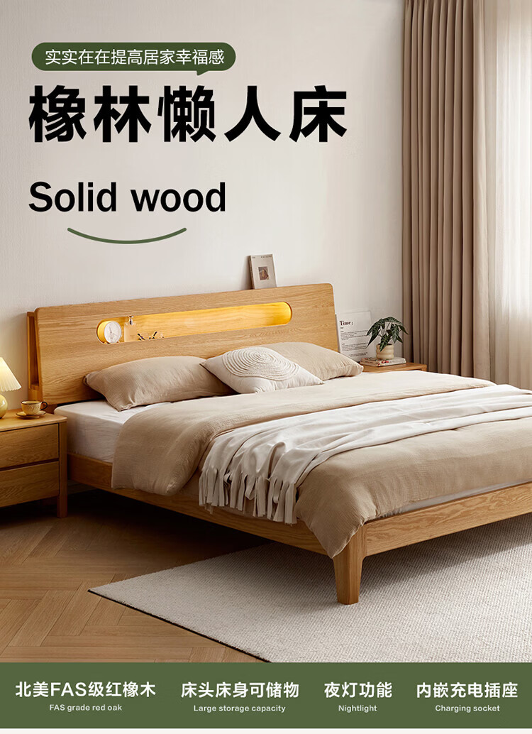 全友(QUANU)【迷瞪清仓货盘】多功能1.5x2米橡木实木床家用主卧室双人大床 16床头柜*1