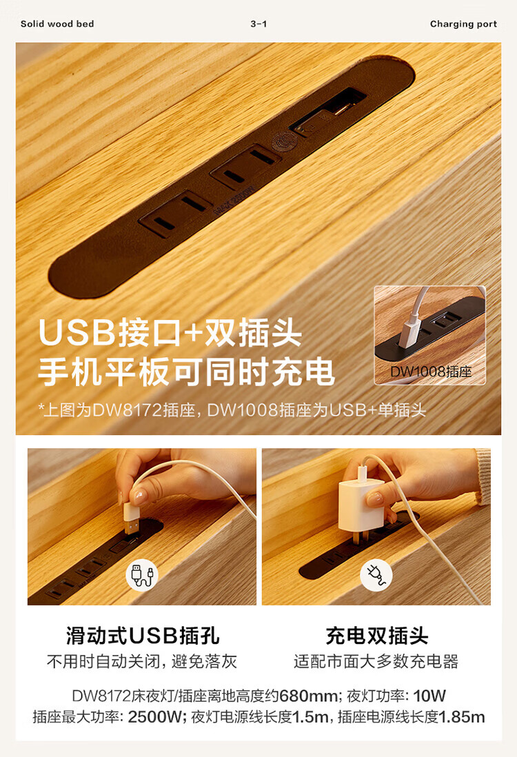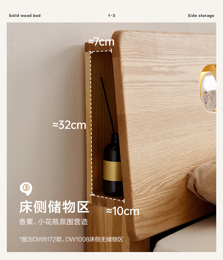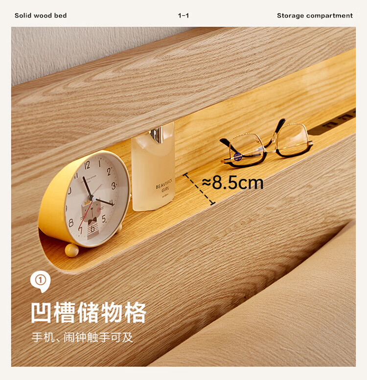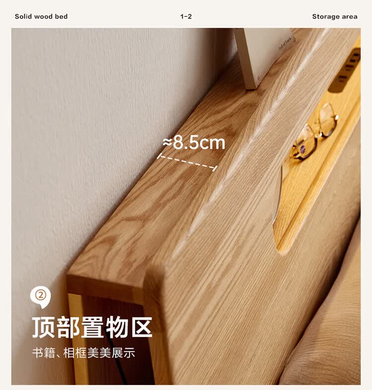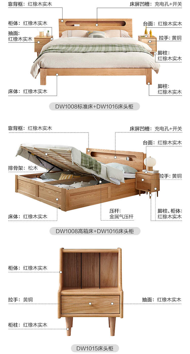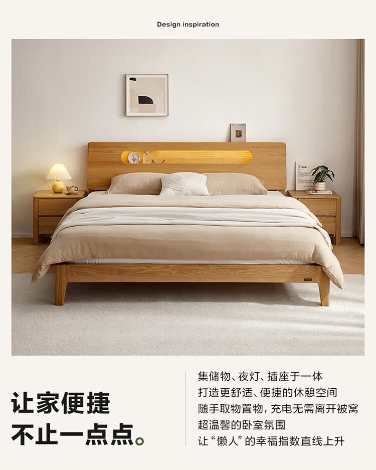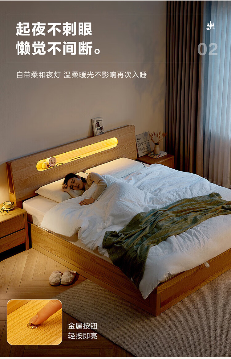全友(QUANU)【迷瞪清仓货盘】多功能1.5x2米橡木实木床家用主卧室双人大床 16床头柜*1