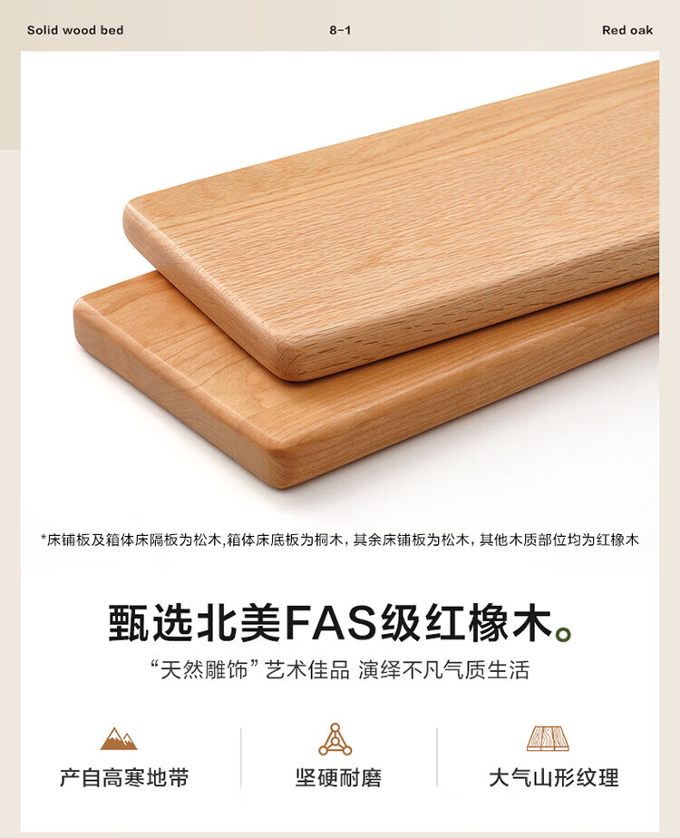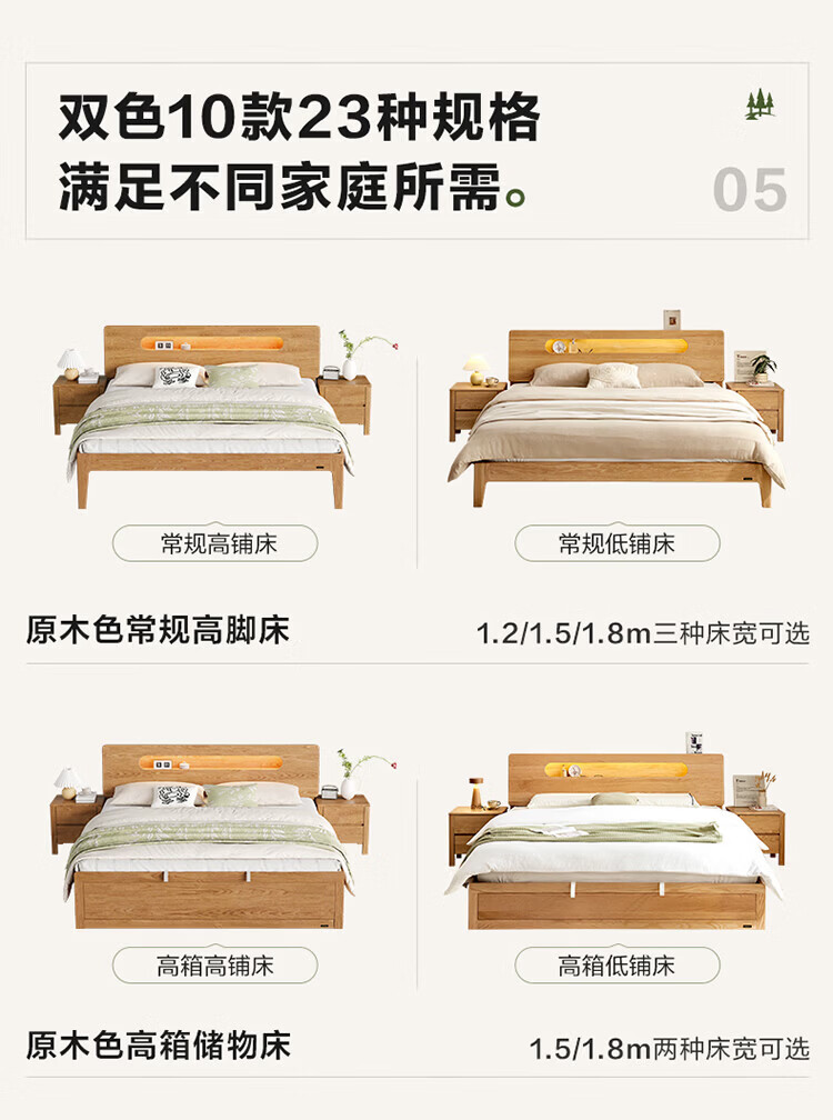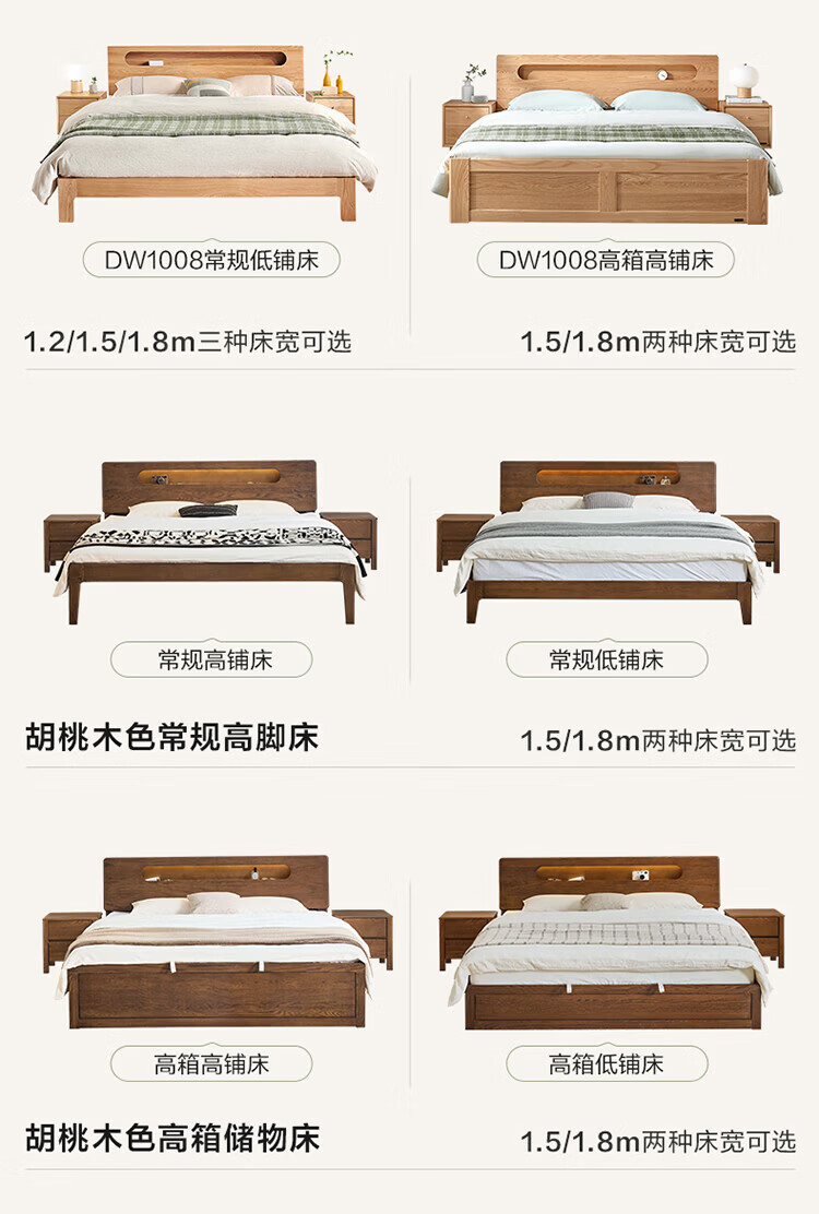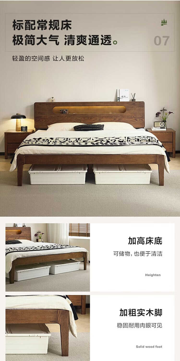 全友(QUANU)【迷瞪清仓货盘】橡木实木双人大床主卧室床头储物收纳多功能床 【深胡桃色 | 储物低铺款】床+厚床垫 1.5x2米