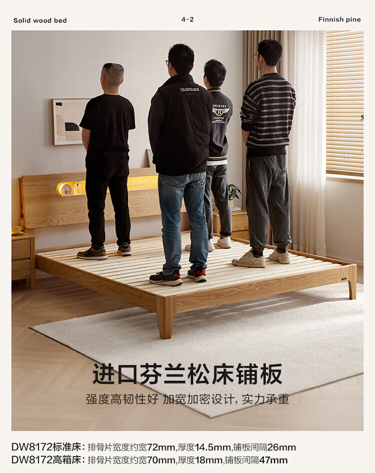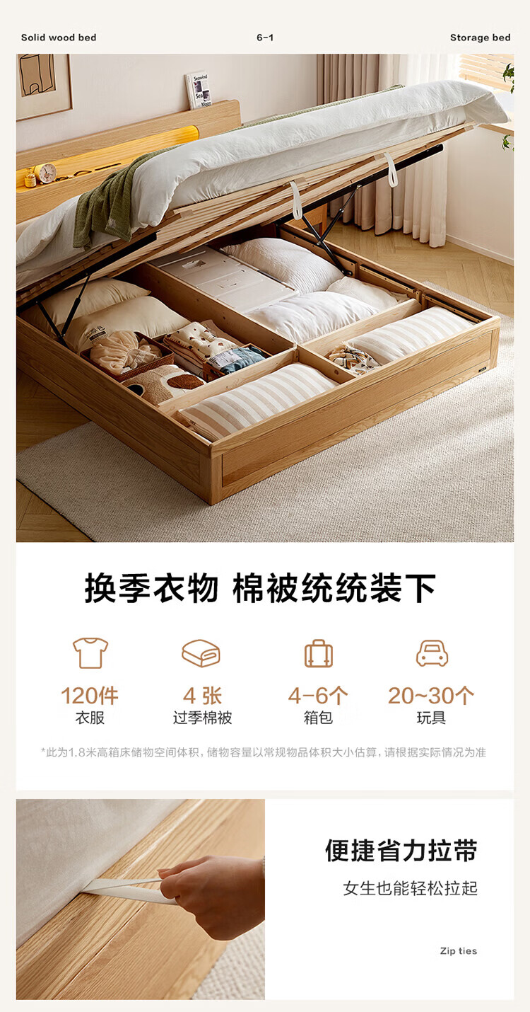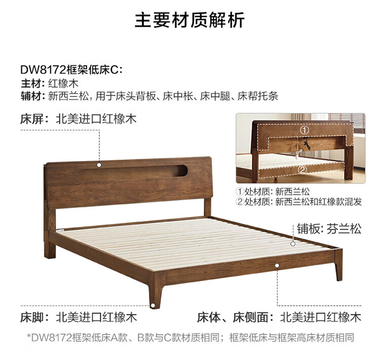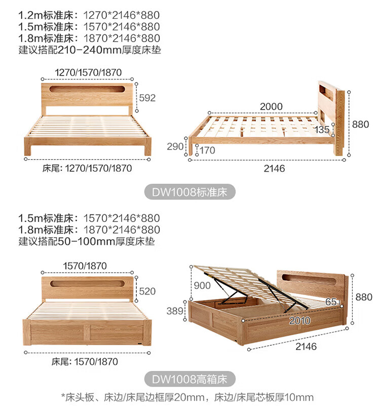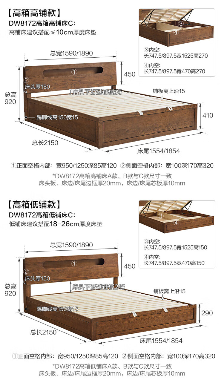全友(QUANU)【迷瞪清仓货盘】橡木实木双人大床主卧室床头储物收纳多功能床 【深胡桃色 | 储物低铺款】床+厚床垫 1.5x2米