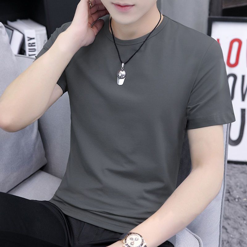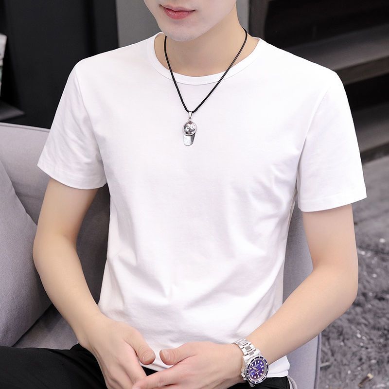 棉2025夏季白色短袖t恤男纯色冰感打底衫半袖体恤衣服