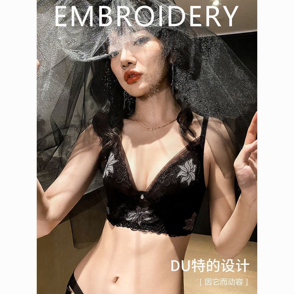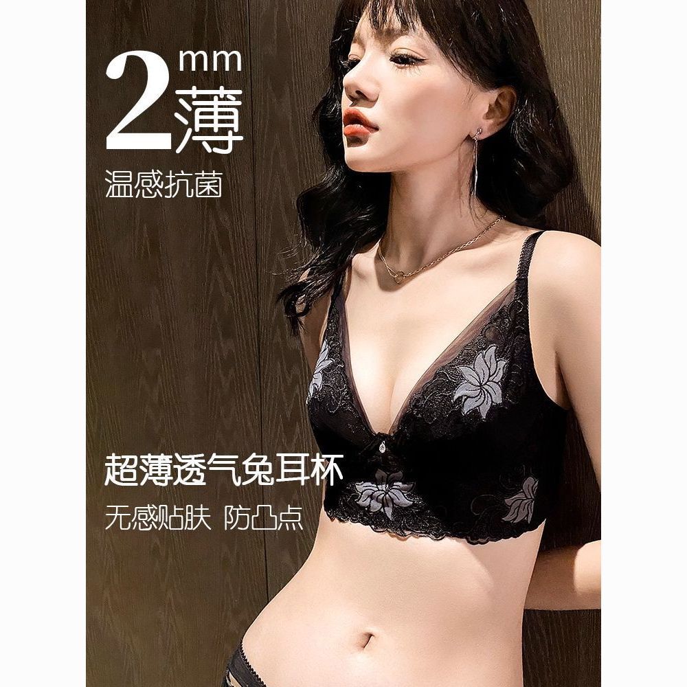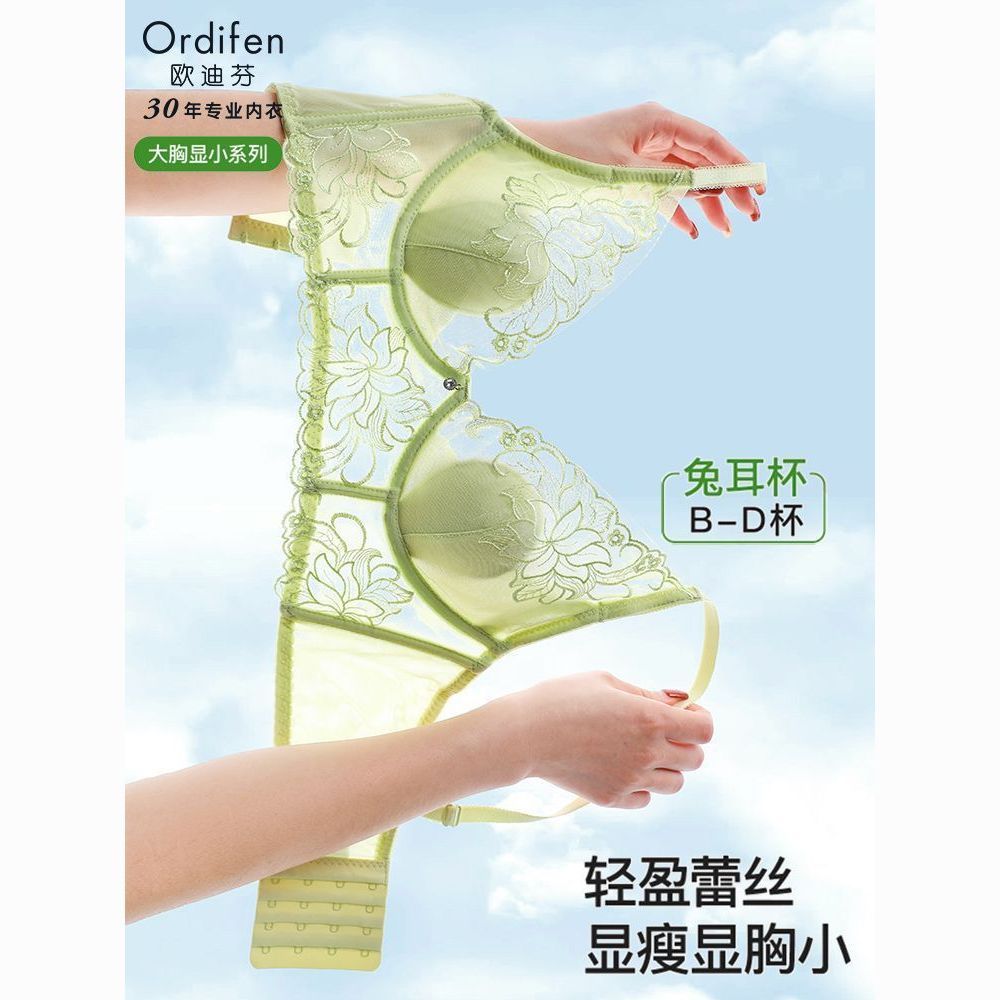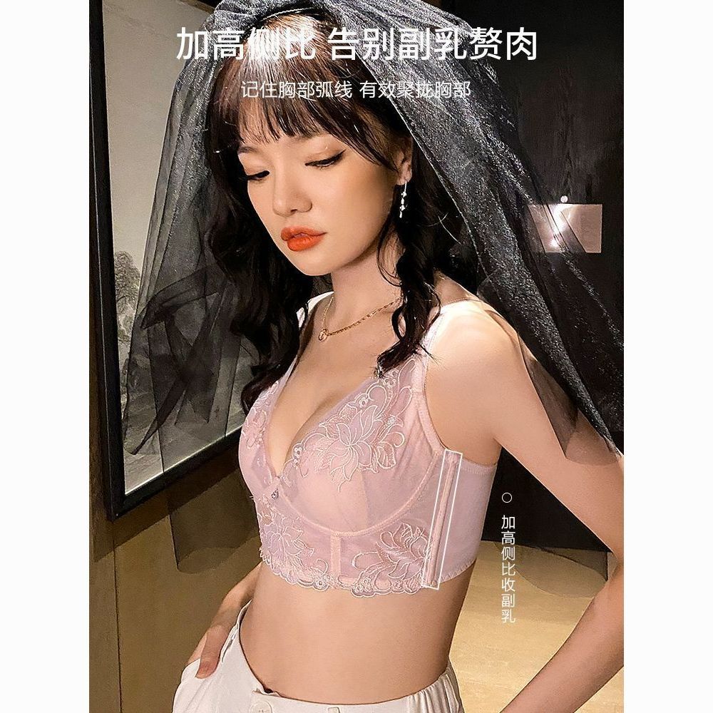 猫人聚拢内衣女士大胸显小收副乳上托防下垂夏季透气蕾丝文胸罩