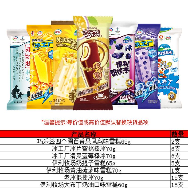 【共50支】伊利冰淇淋巧乐兹百香果凤梨黄油菠萝奶提子冰工厂组合