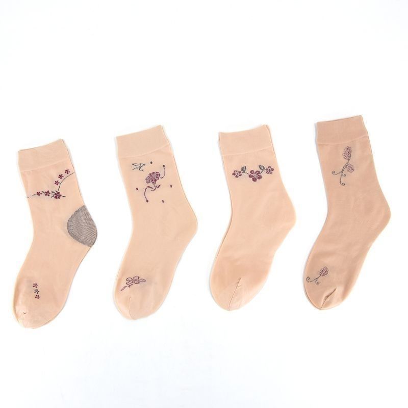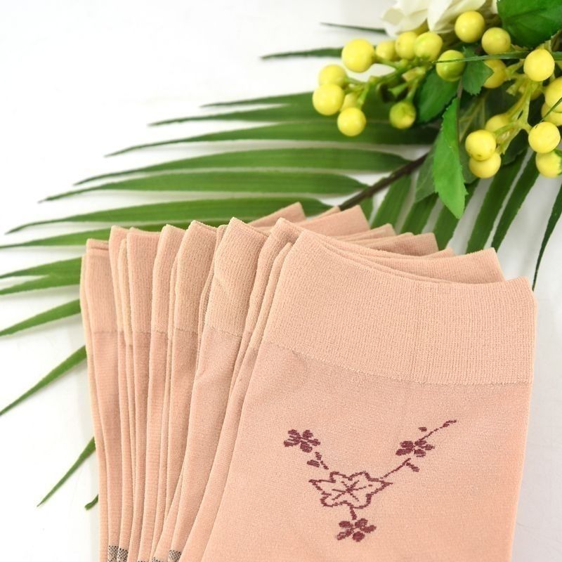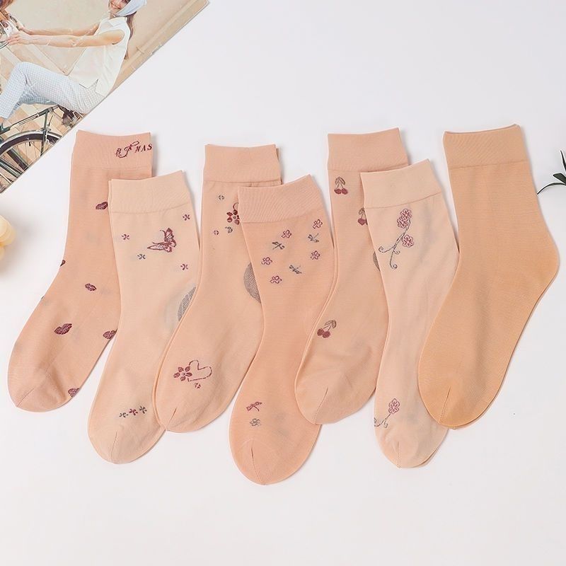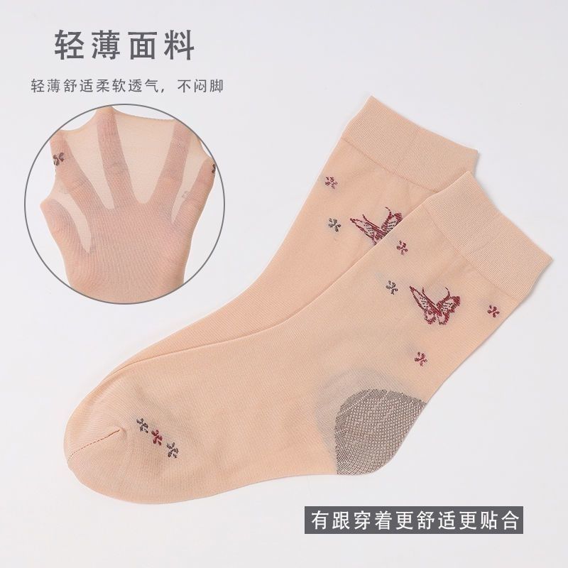 春夏款丝袜带后跟袜子女夏季薄款中筒高档老婆袜妈妈肤色耐穿提花