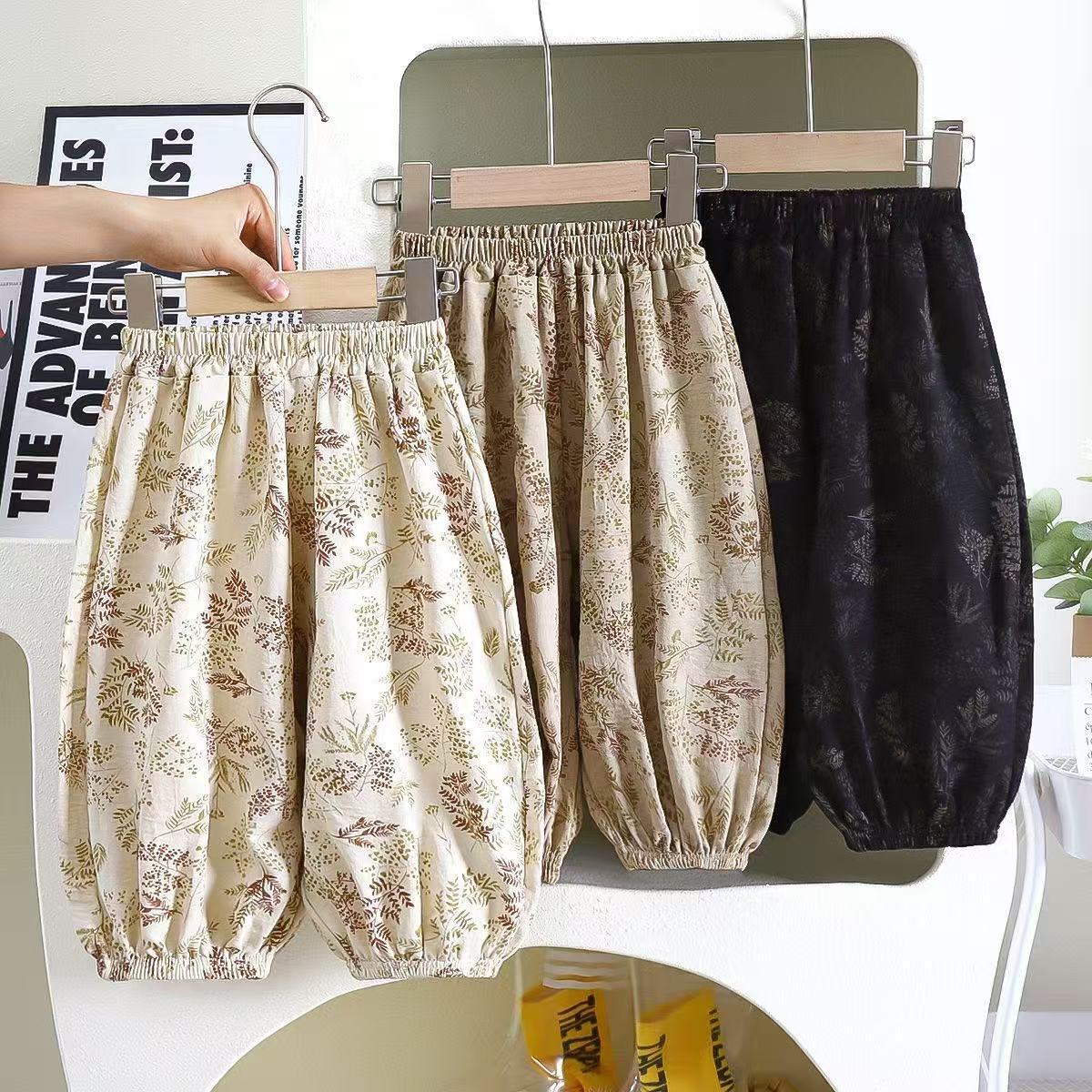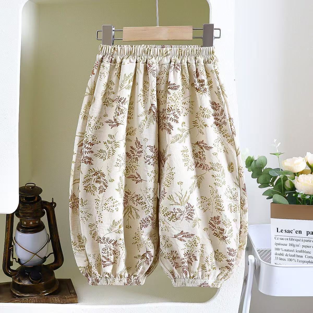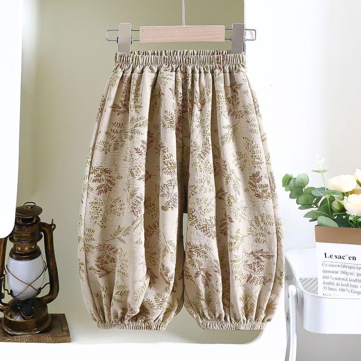 新款夏季男女童防蚊裤碎花宽松灯笼裤显瘦百搭九分裤天丝麻