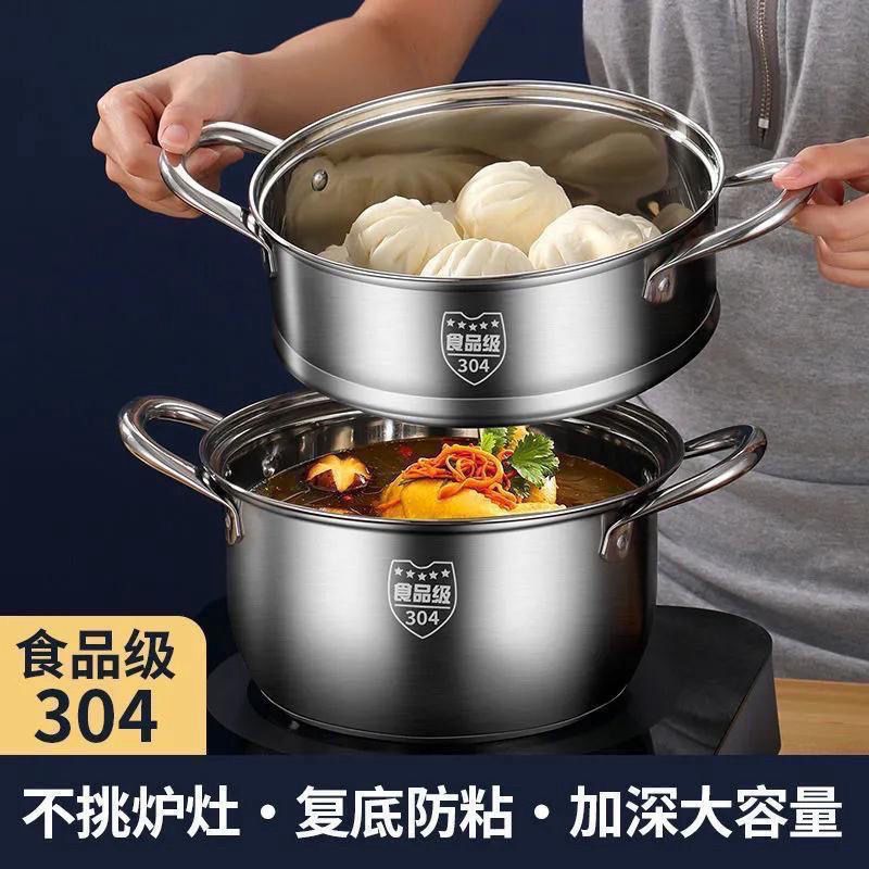 加厚食品级不锈钢汤锅家用煲汤煮面蒸锅煮粥奶锅电磁炉燃气通用