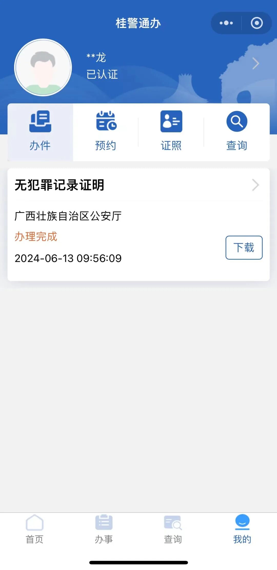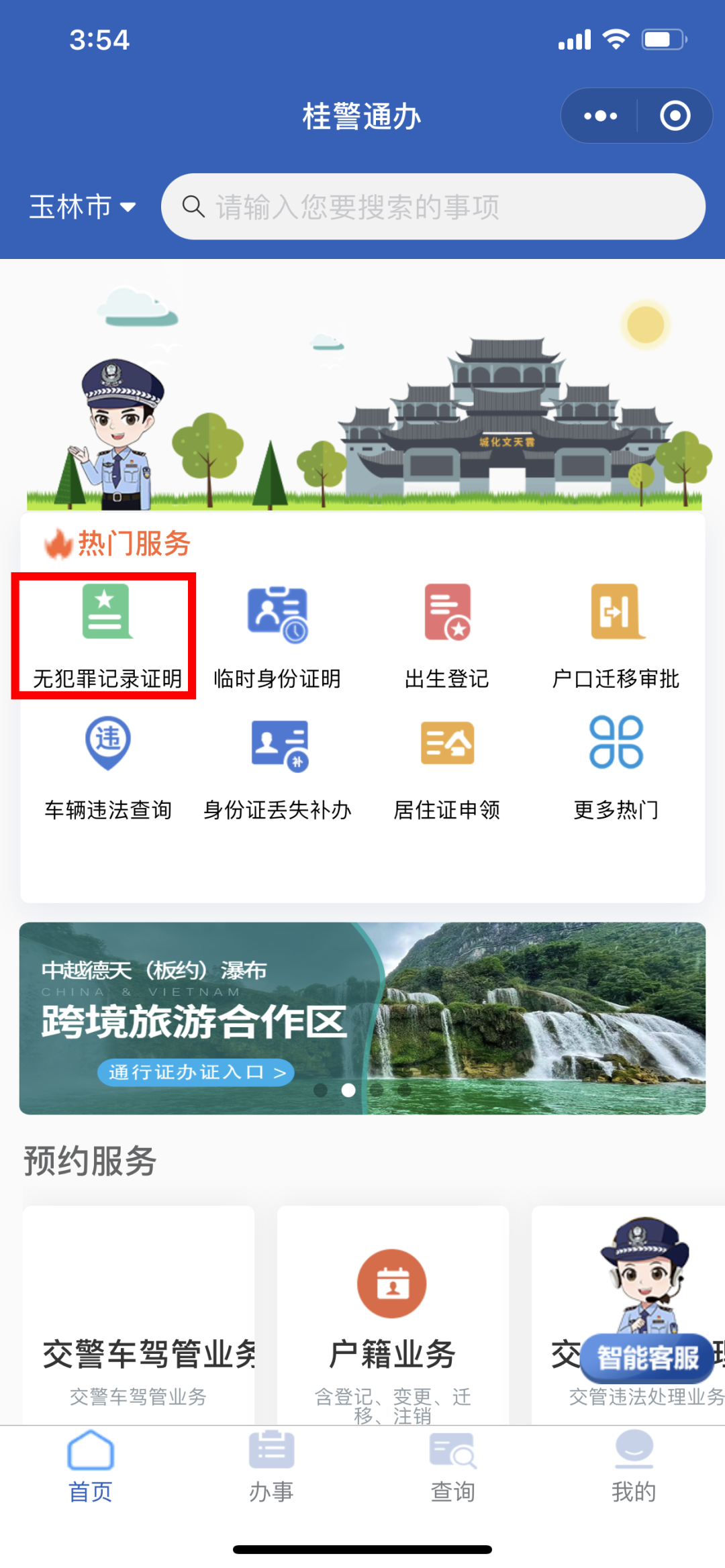 1.打开小程序,选择申办【无犯罪记录证明】业务。