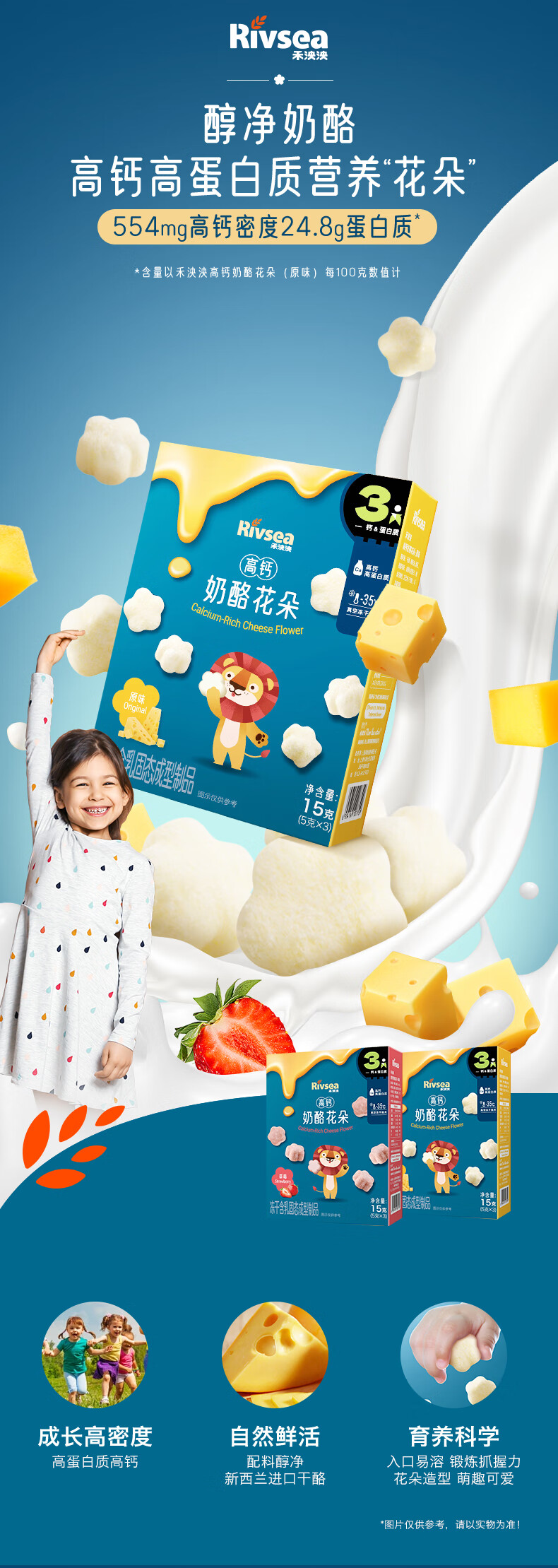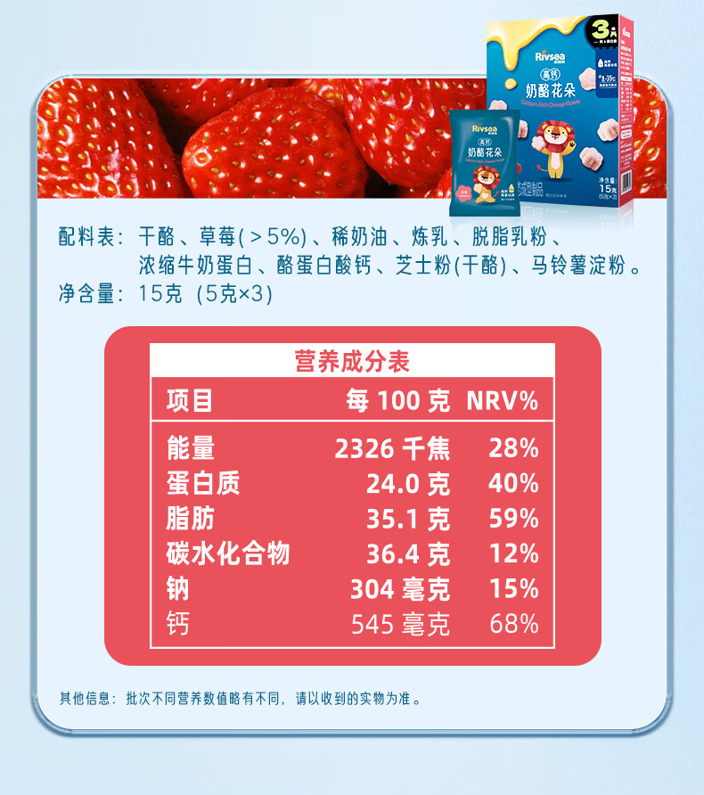 禾泱泱奶酪花朵草莓味15g新西兰进口干酪高钙高蛋白宝宝零食