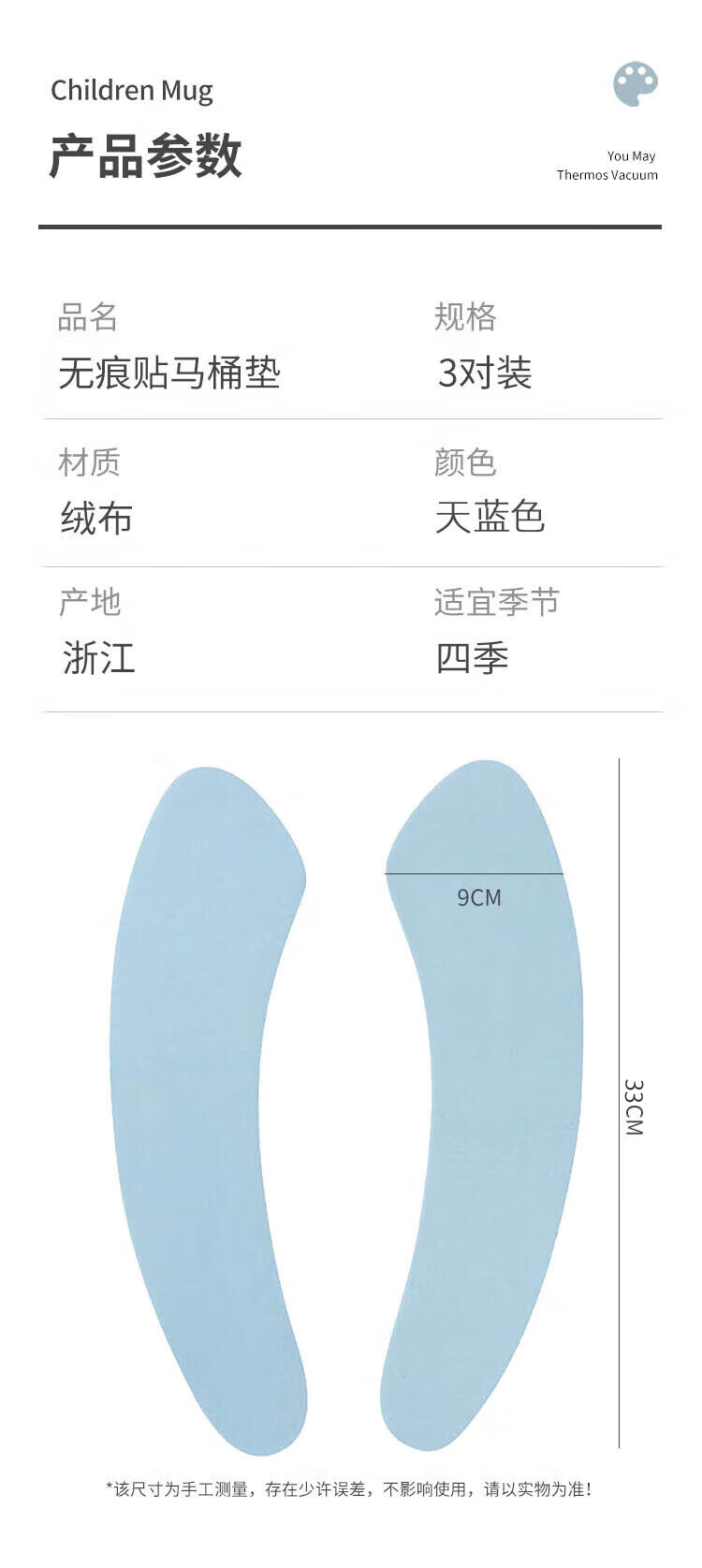 HOUYA马桶垫3对/6片 马桶坐垫粘贴式坐便套圈垫 可水洗 四季通用