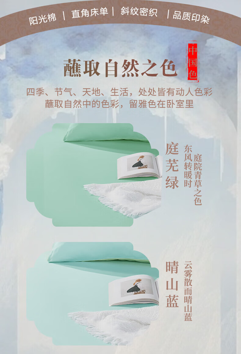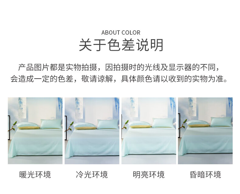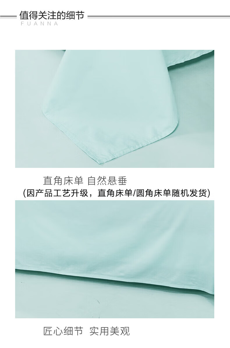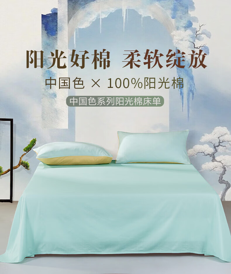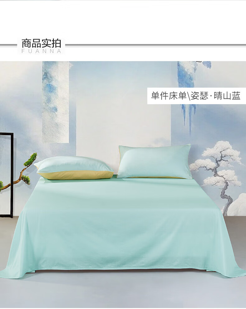 富安娜 家纺素色床单单件纯棉纯色床罩全棉学生宿舍家用阳光棉床单床盖 纯棉款-晴山蓝-40支 1.2米床适用 180*240cm