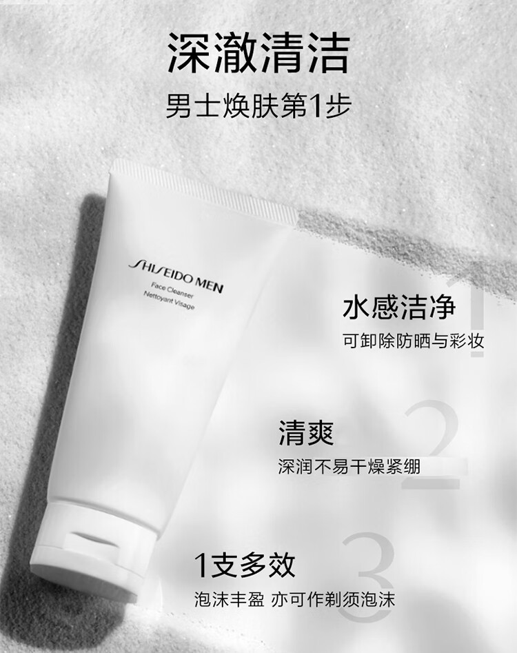 资生堂(Shiseido) 新男士洗面膏 125ml 净彻油光水感洁净男士