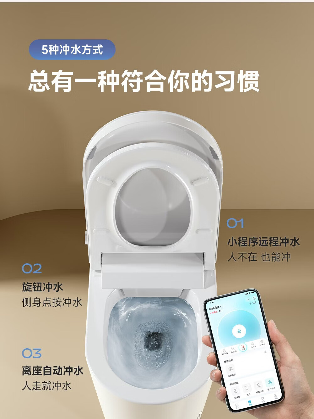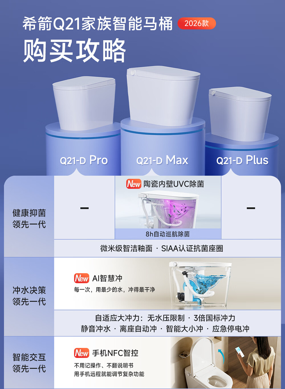 希箭【26年新品】轻智能马桶UVC杀菌NFC智控Ai智慧冲翻圈翻盖Q21-D 【Q21-D Max】Ai+NFC+UVC陶瓷杀菌 坑距是295-390选305 305/300mm
