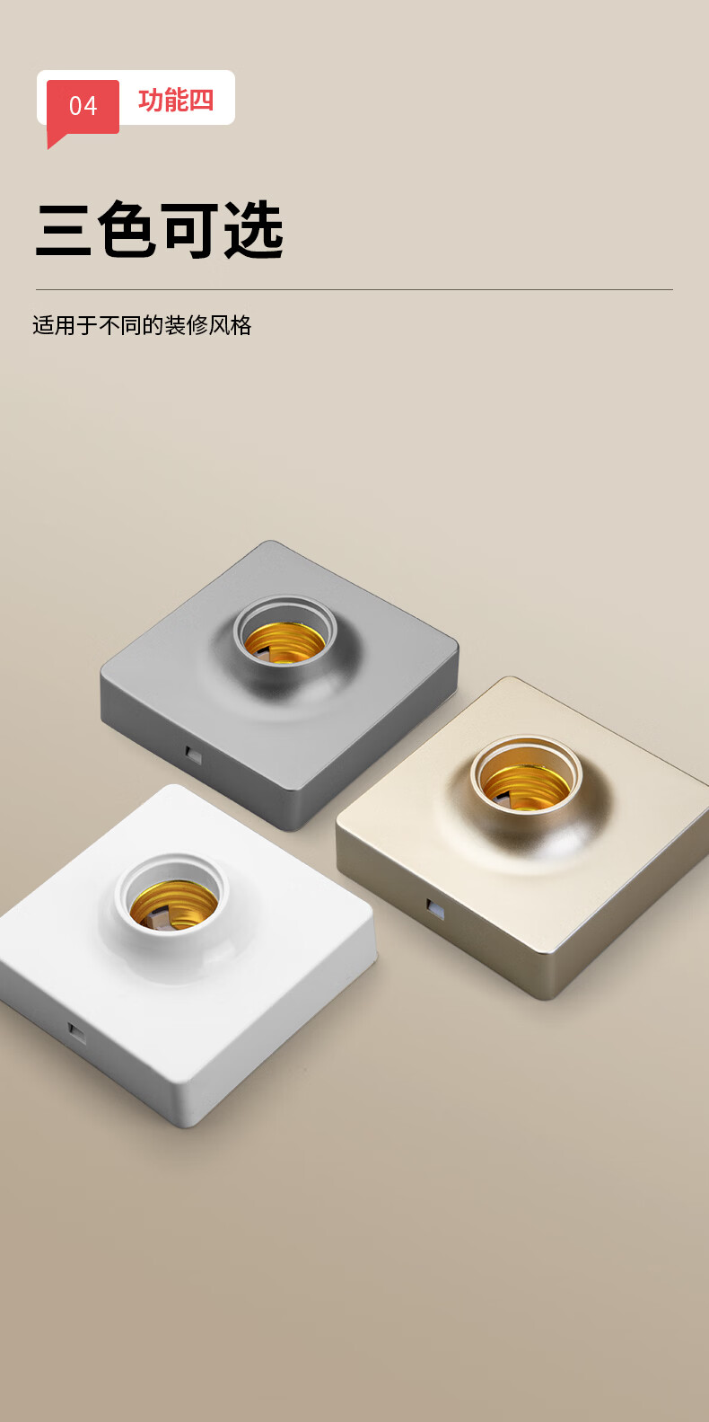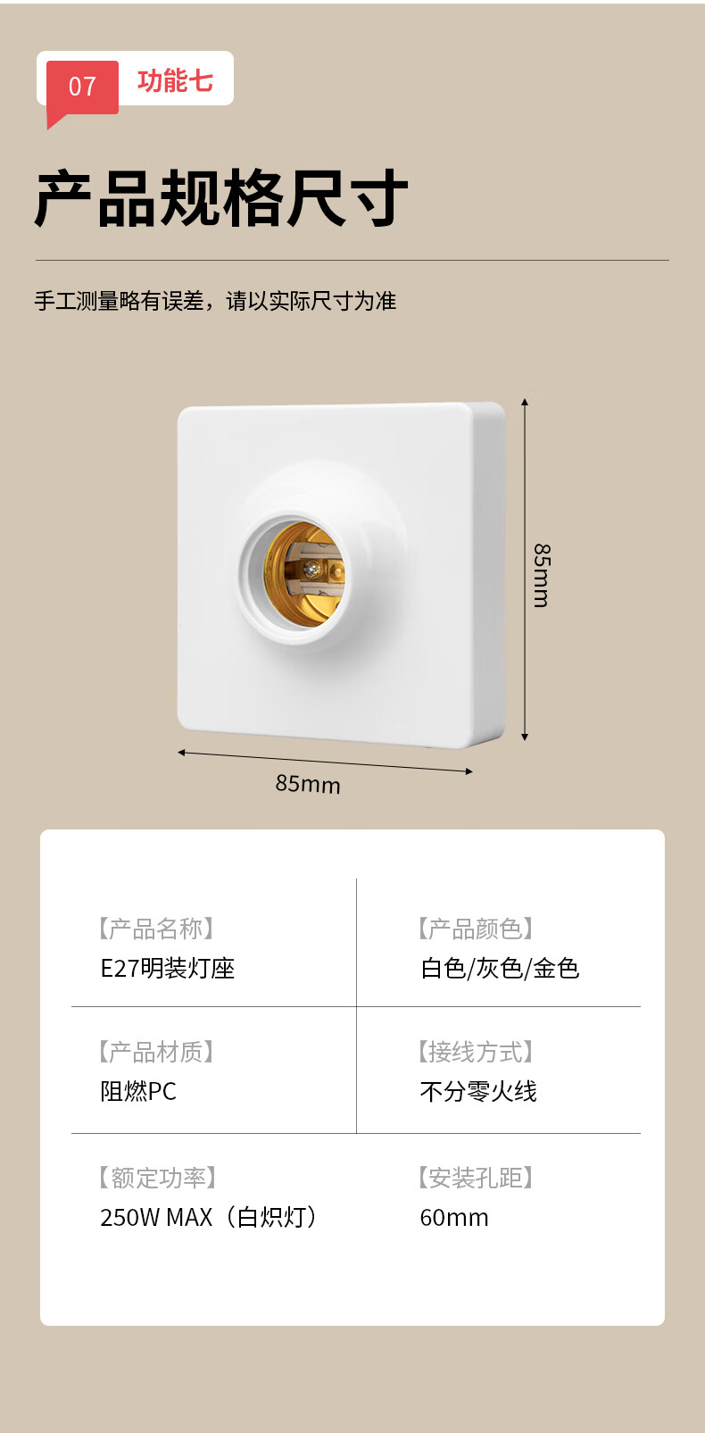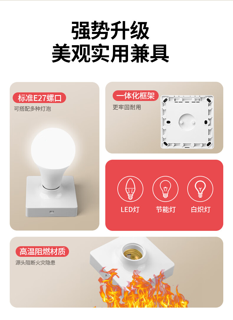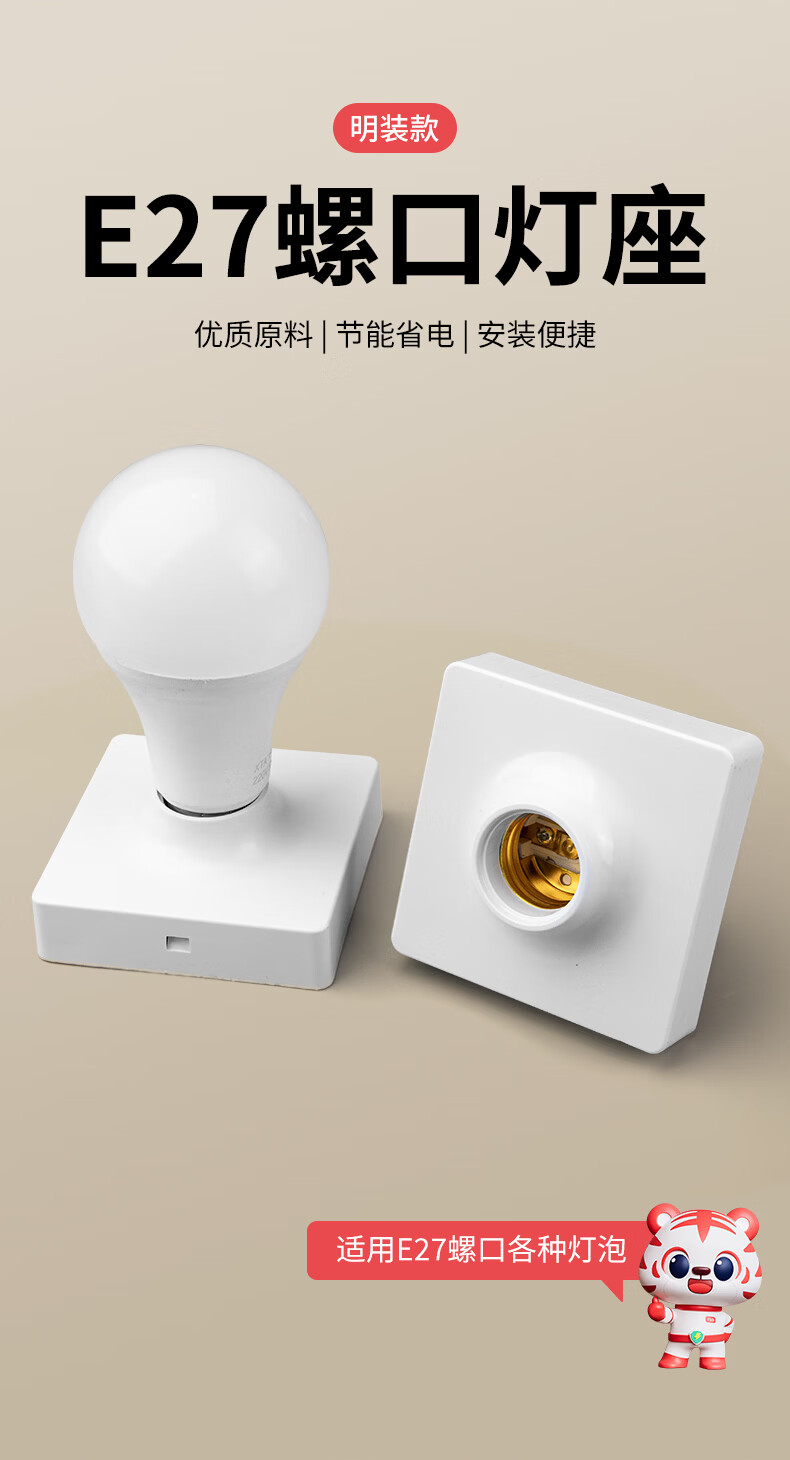 国际电工E27螺口灯座LED灯泡螺旋灯头方形螺纹灯口家用节能灯底座明装通用 白色明装灯座【1只装】