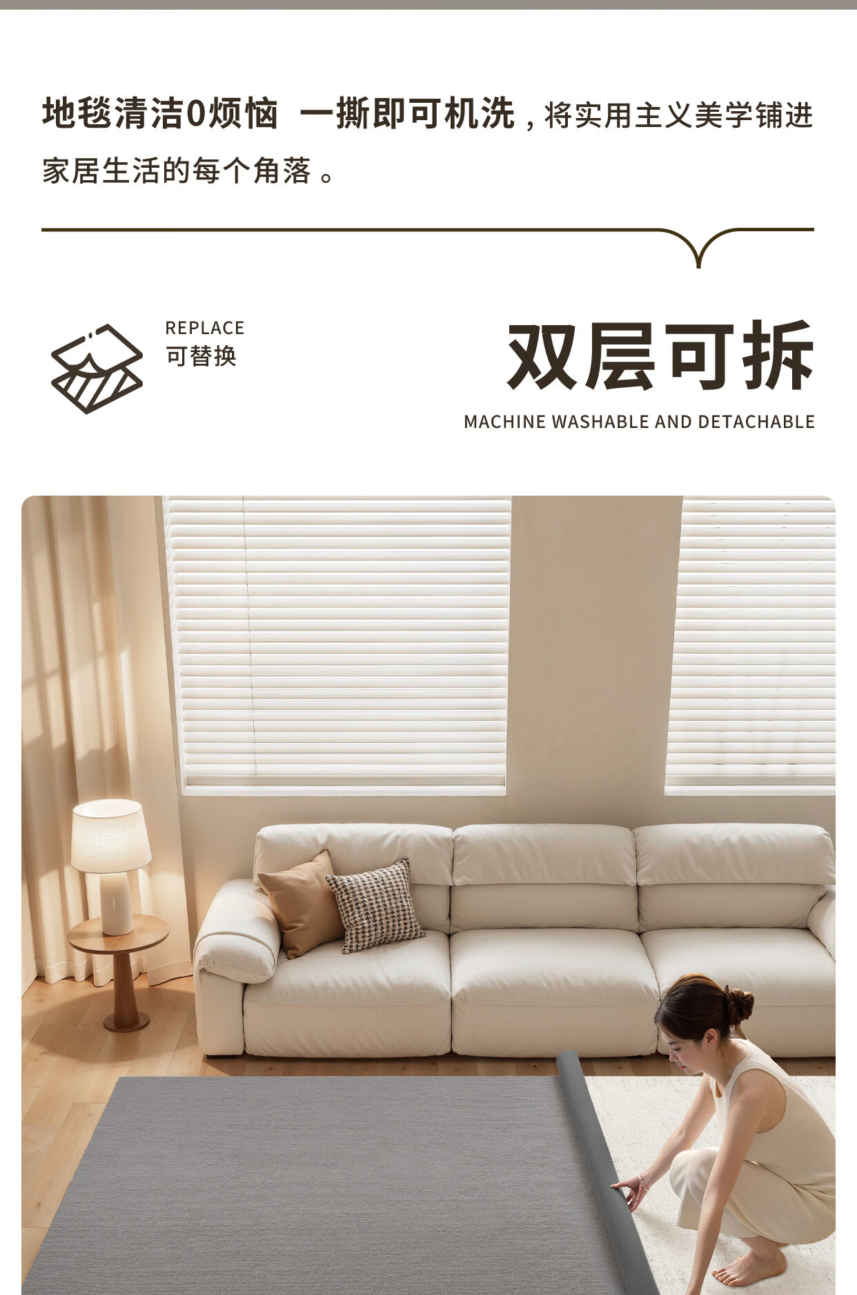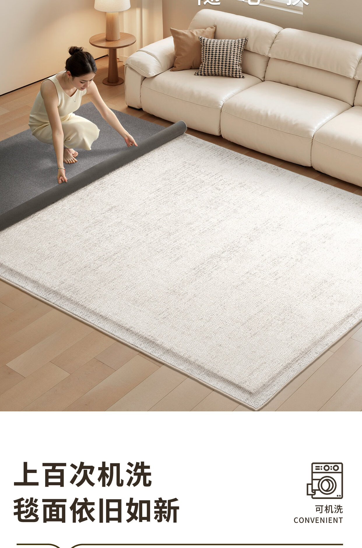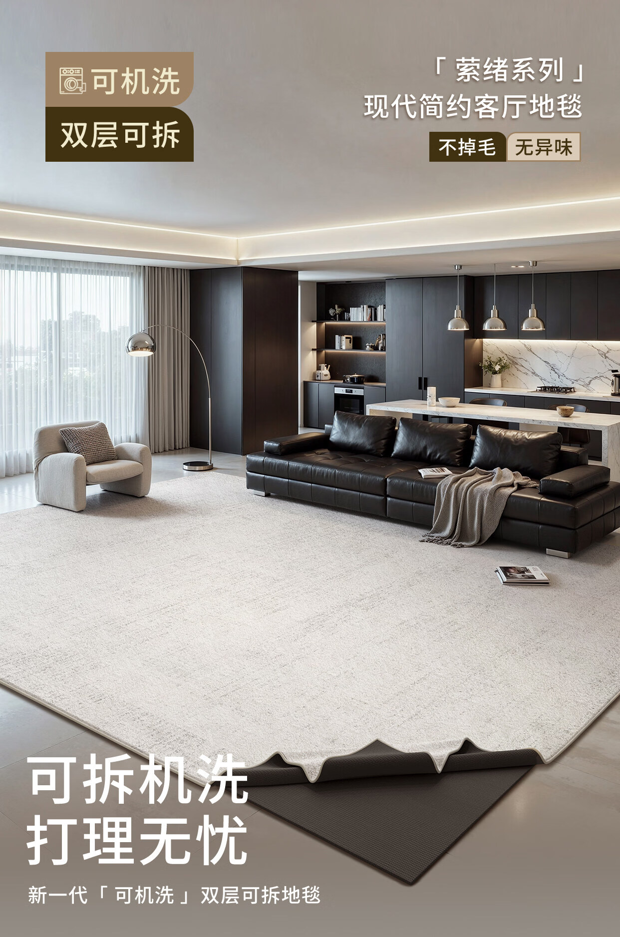 Y U-LIVE可拆洗地毯客厅意式极简纯色2026新款免洗可擦可机洗沙发双层 可拆洗-仿羊绒-萦绪 140×200CM【毯面+4mm标准底】