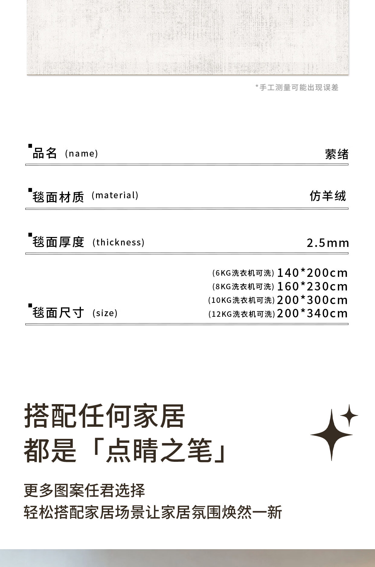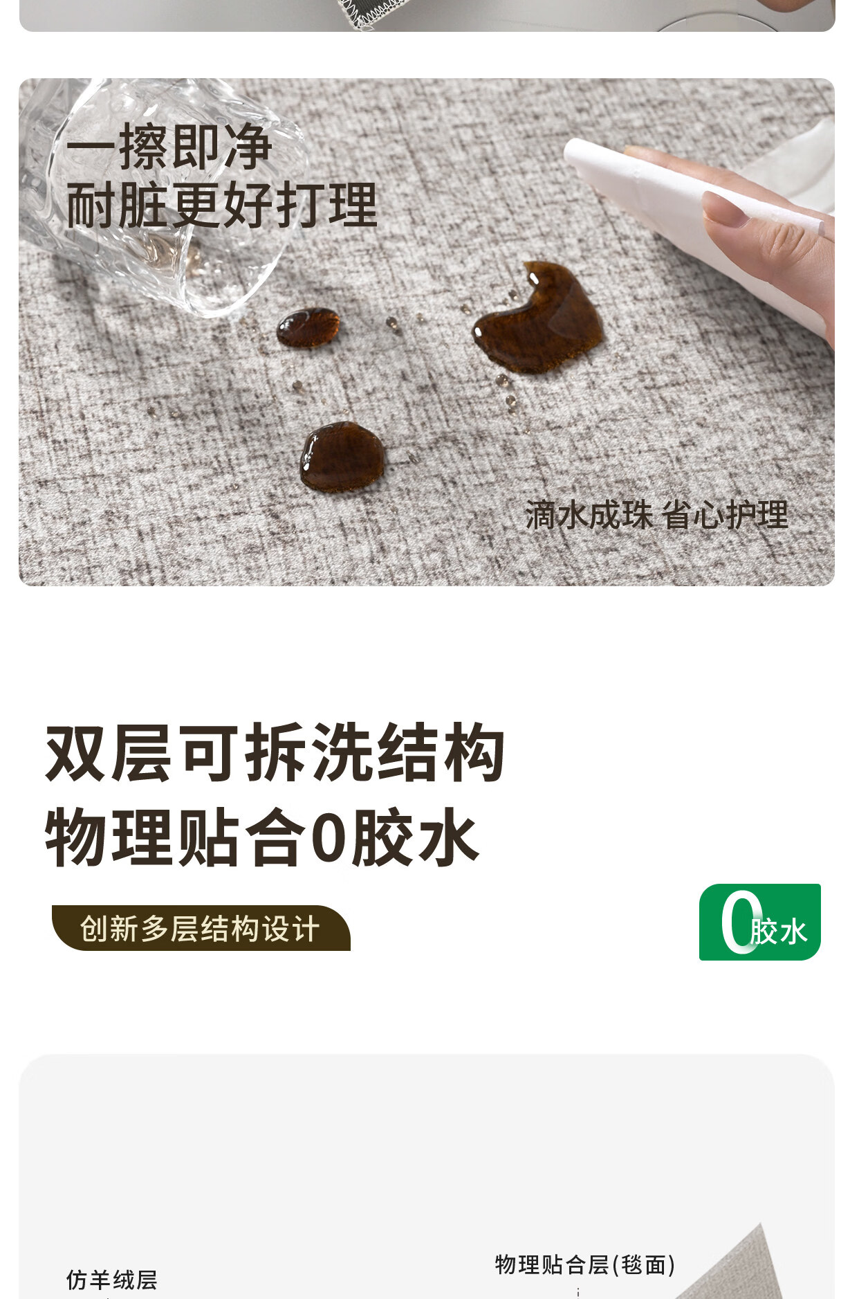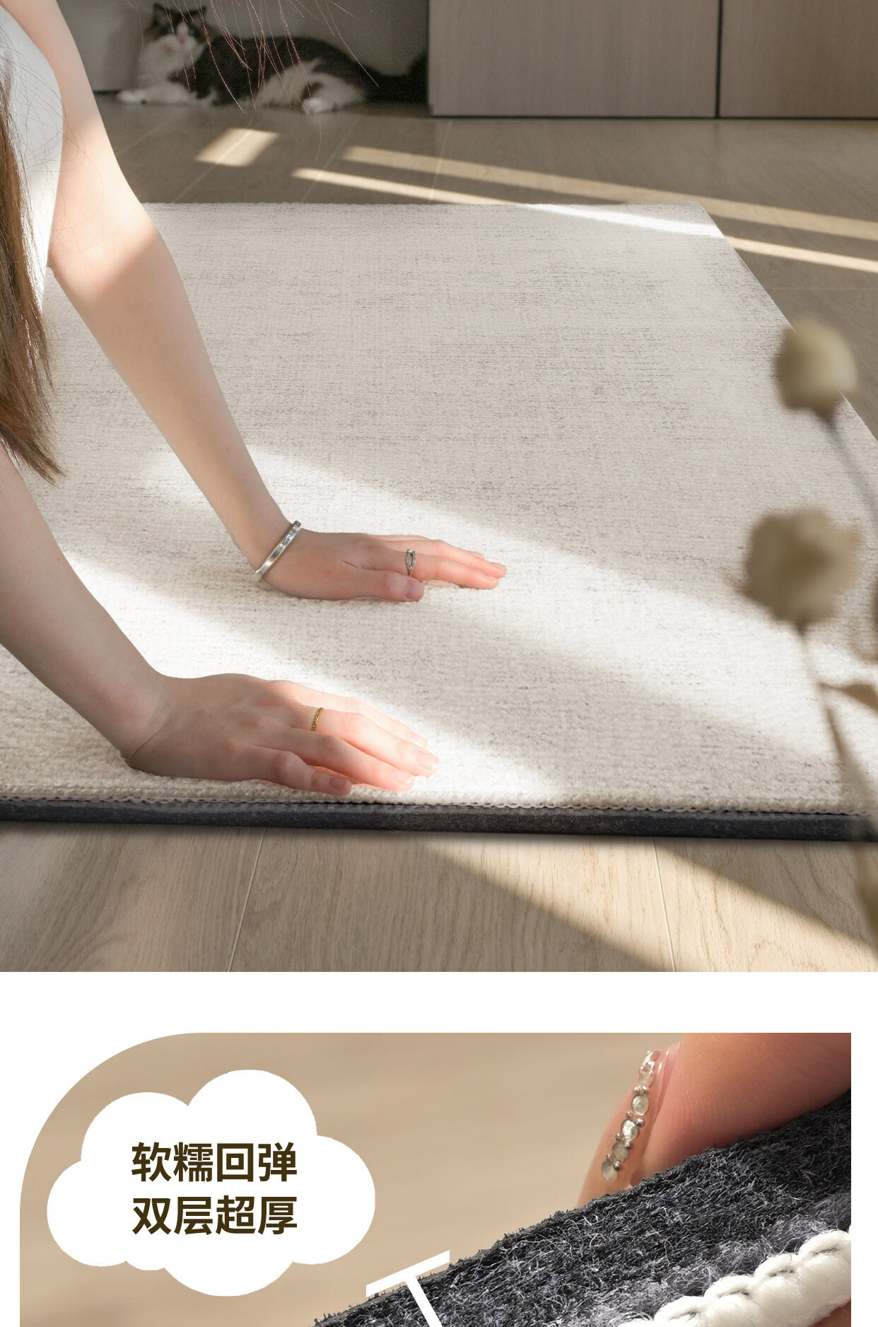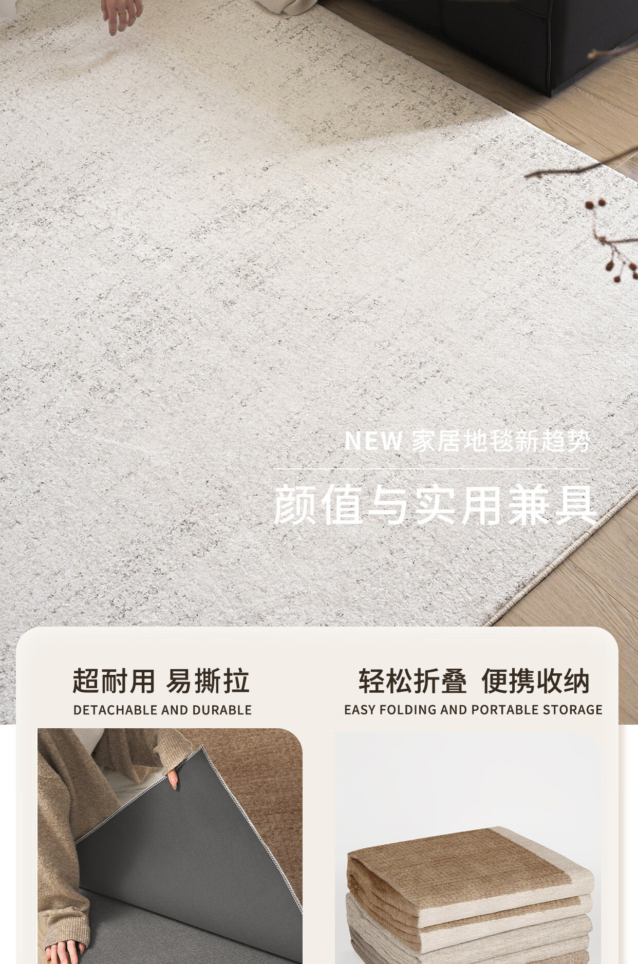 Y U-LIVE可拆洗地毯客厅意式极简纯色2026新款免洗可擦可机洗沙发双层 可拆洗-仿羊绒-萦绪 140×200CM【毯面+4mm标准底】