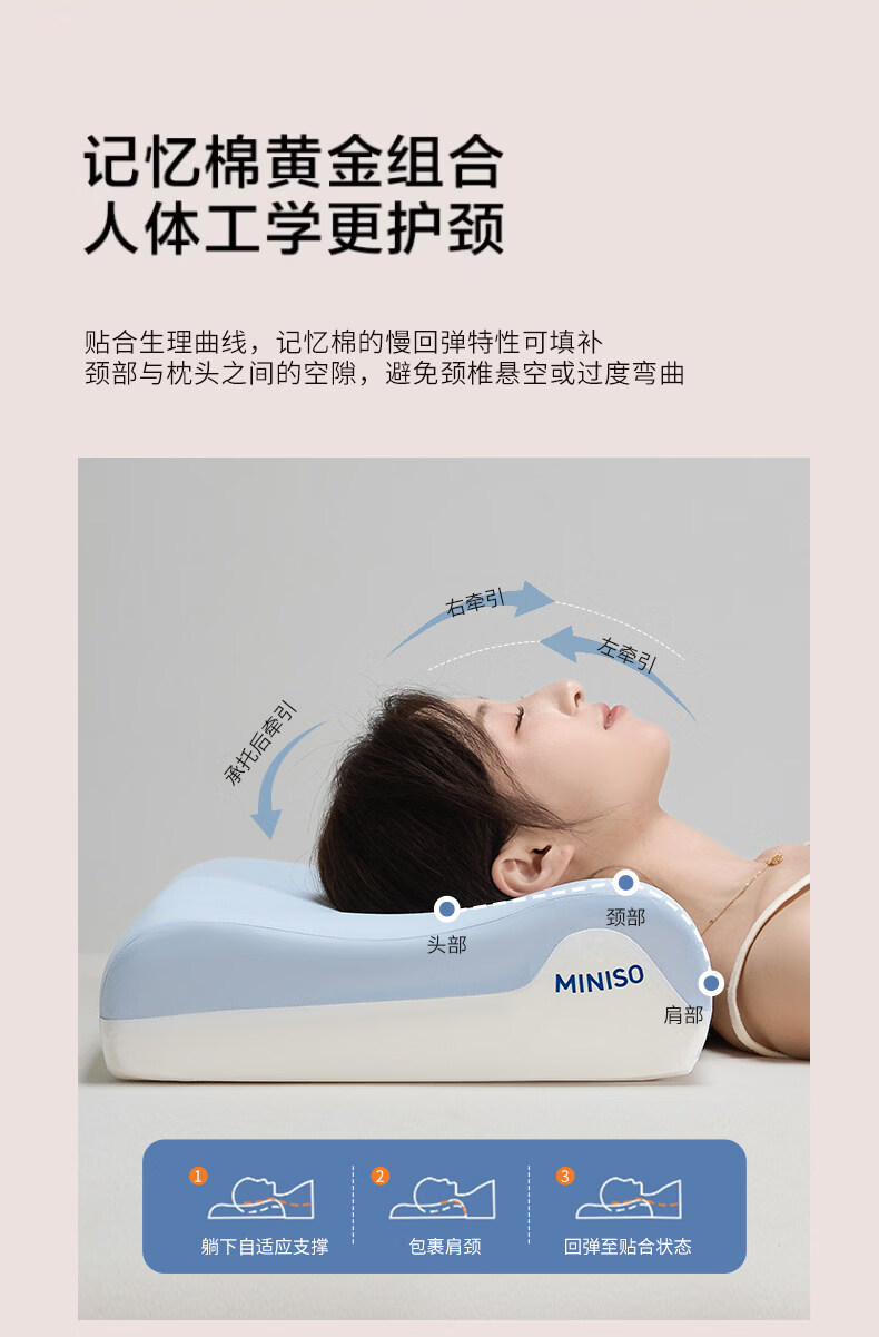 名创优品(MINISO)深睡记忆枕头护颈枕 家用慢回弹护颈椎枕芯酒店枕 波浪深睡记忆枕(约30*50*8/10cm) 单只 无规格