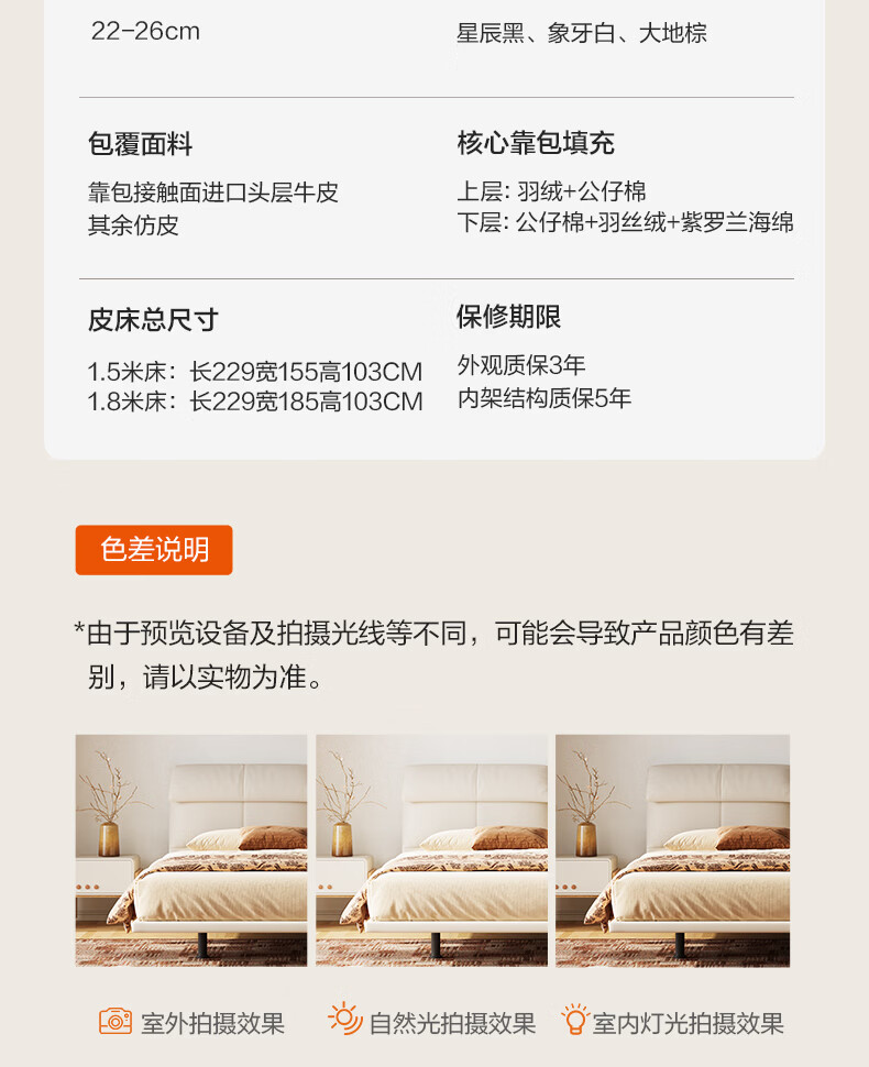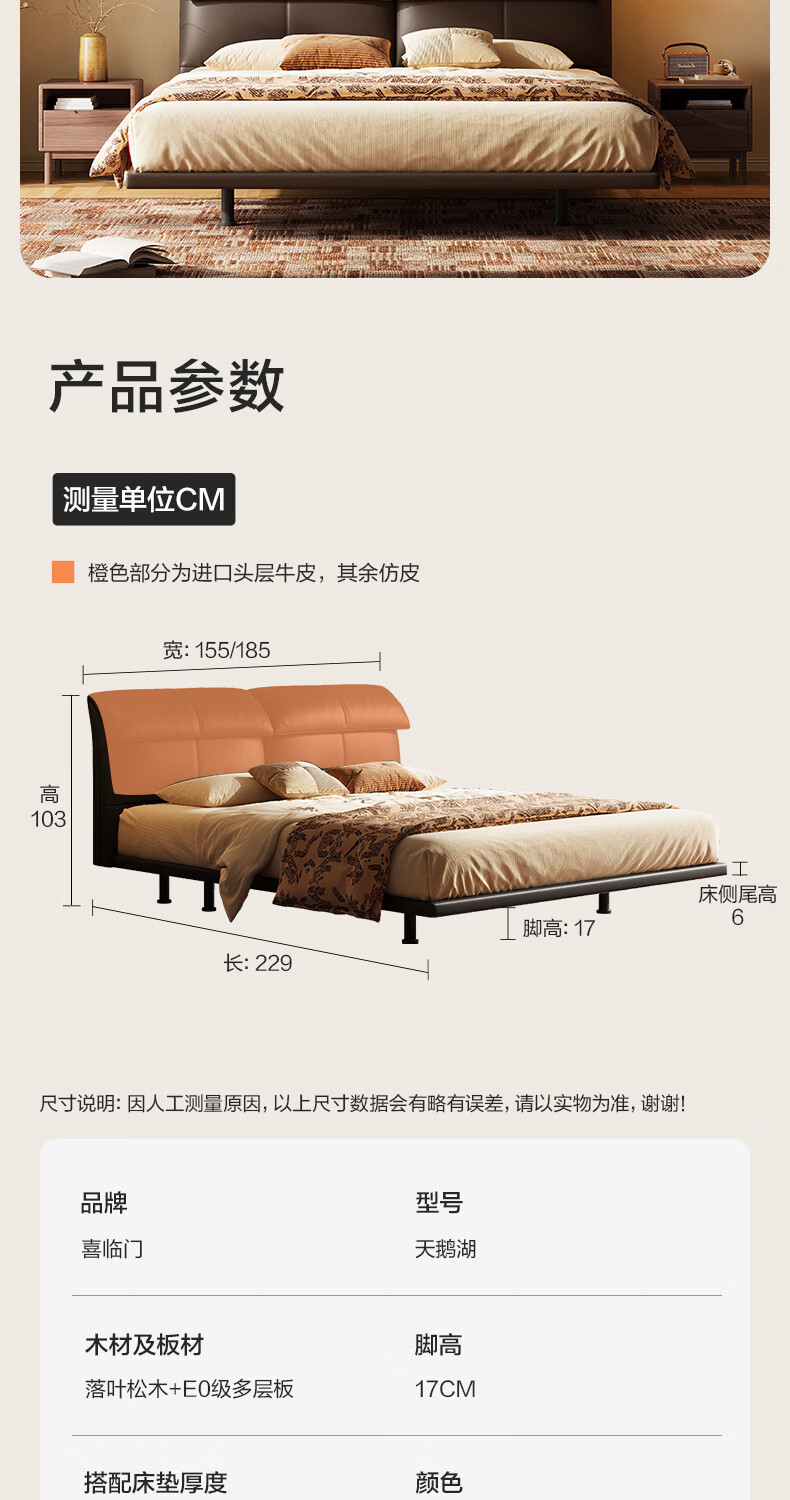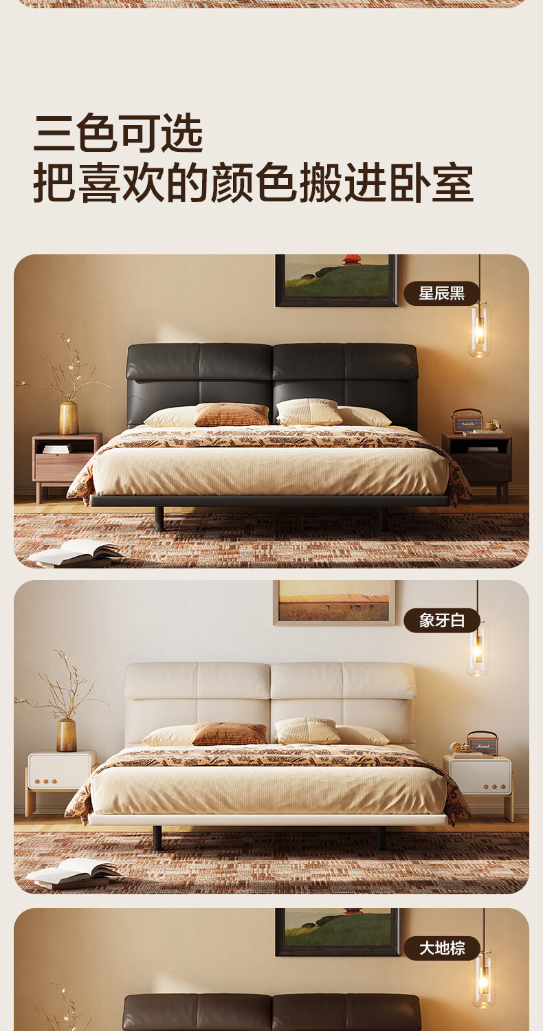CBD家居现代简约真皮软包床双人主卧大床奶油风婚床头层牛皮甜心悬浮 甜心悬浮-奶油白单床 卷帘排骨架 1500*2000