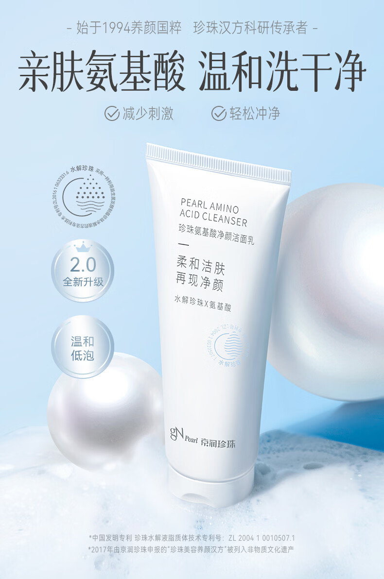 京润珍珠(gNPearl)珍珠氨基酸净颜洁面乳清洁去油去污不刺激温和洗面奶 氨基酸净颜洁面乳100g*2支