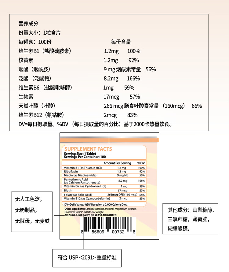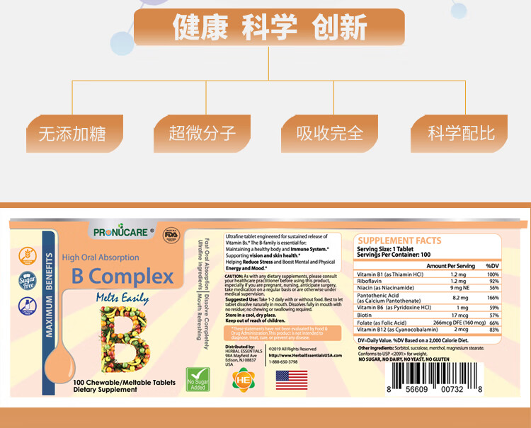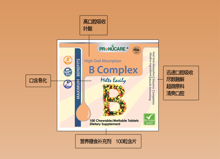 ProNuCare普纽凯 复合维生素B100片 B1 B2 B3 B5 B12 溯源进口