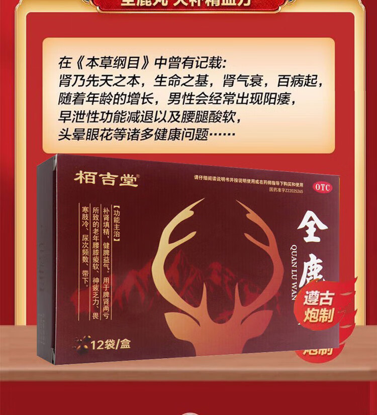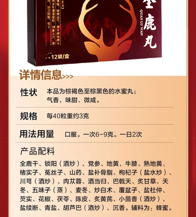 全鹿丸正品大补丸补肾填精老年肾虚补壮肾阳健脾益气固精强肾遗精早泄性欲减退失眠乏力32味大补中药 5盒 【脾肾两亏老年乏力】