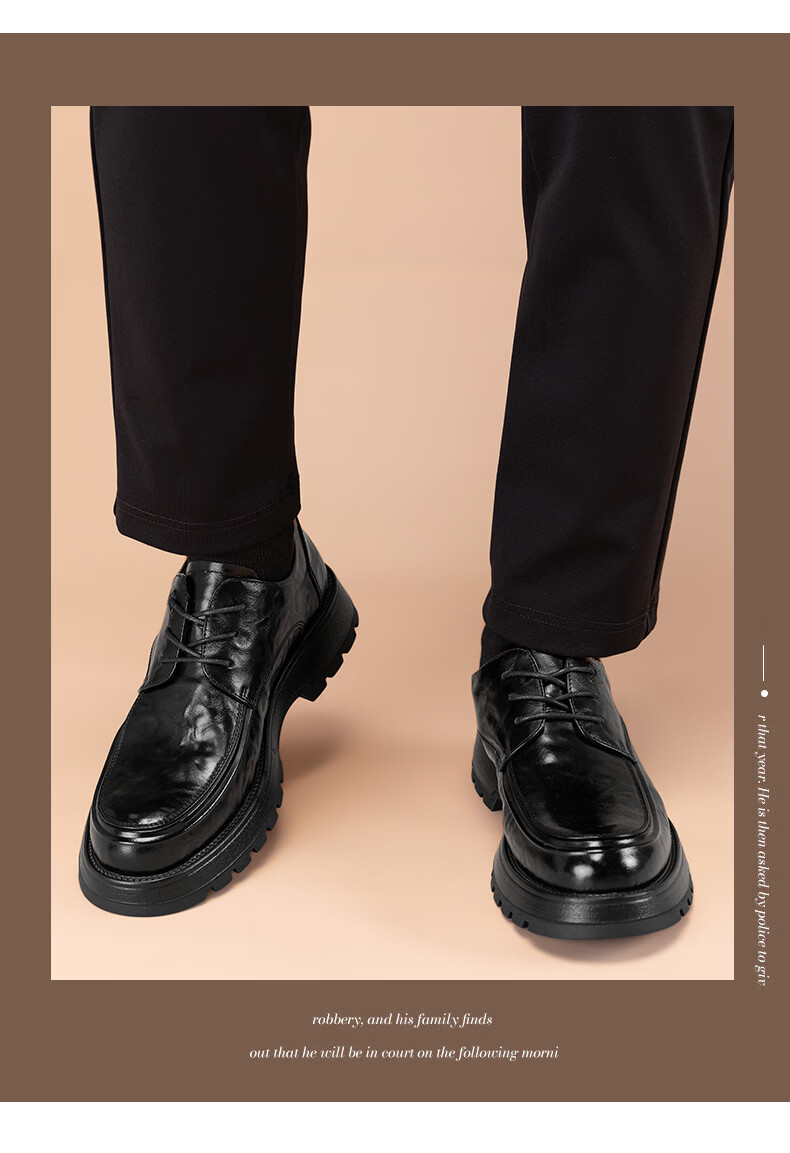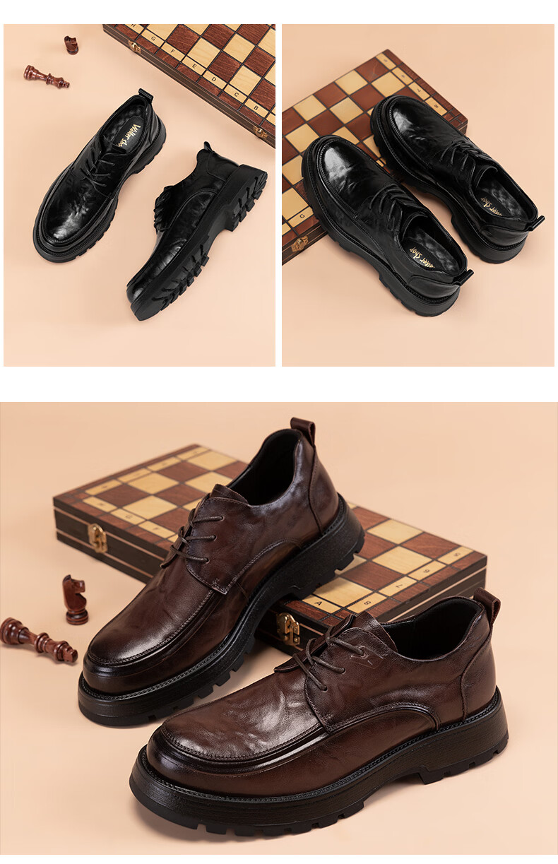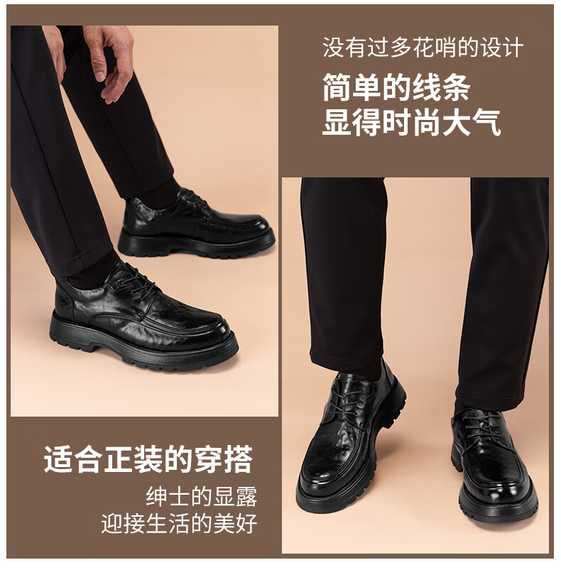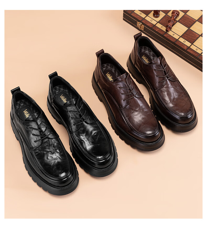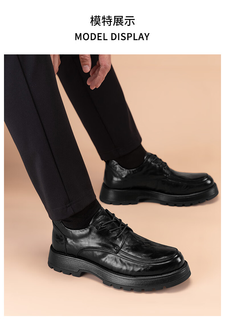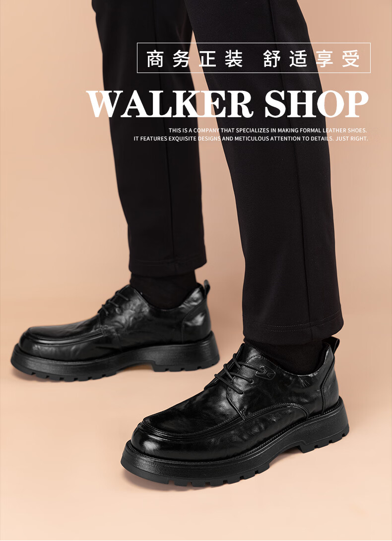 Walker Shop品牌皮鞋男款内增高男士皮鞋2026商务高端休闲真皮英伦正装鞋子男 黑色【隐形内增高8cm】 38