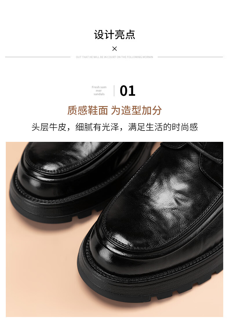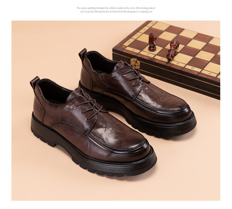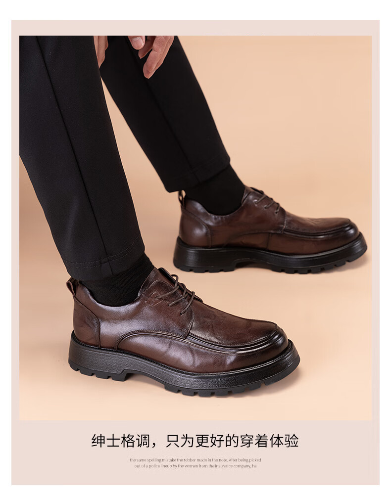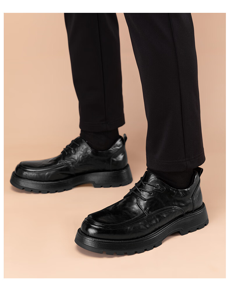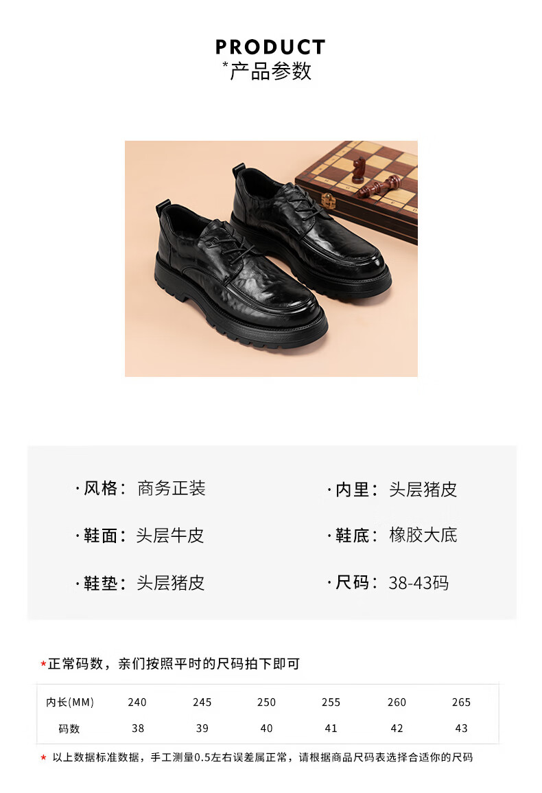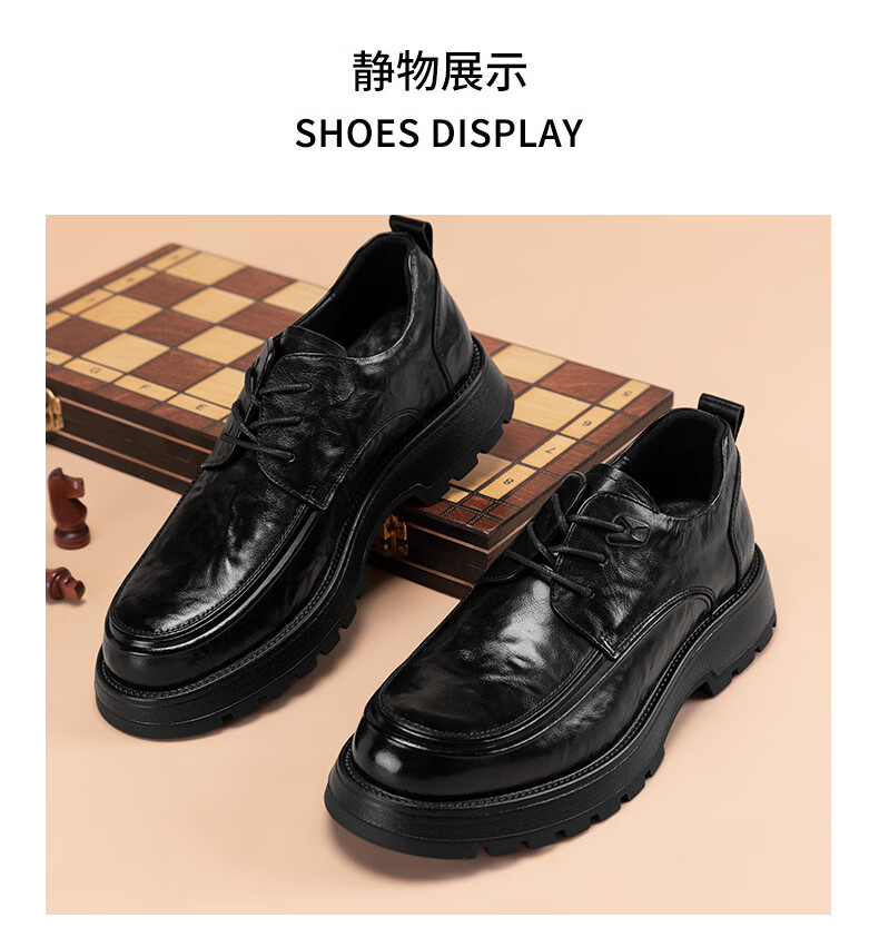 Walker Shop品牌皮鞋男款内增高男士皮鞋2026商务高端休闲真皮英伦正装鞋子男 黑色【隐形内增高8cm】 38