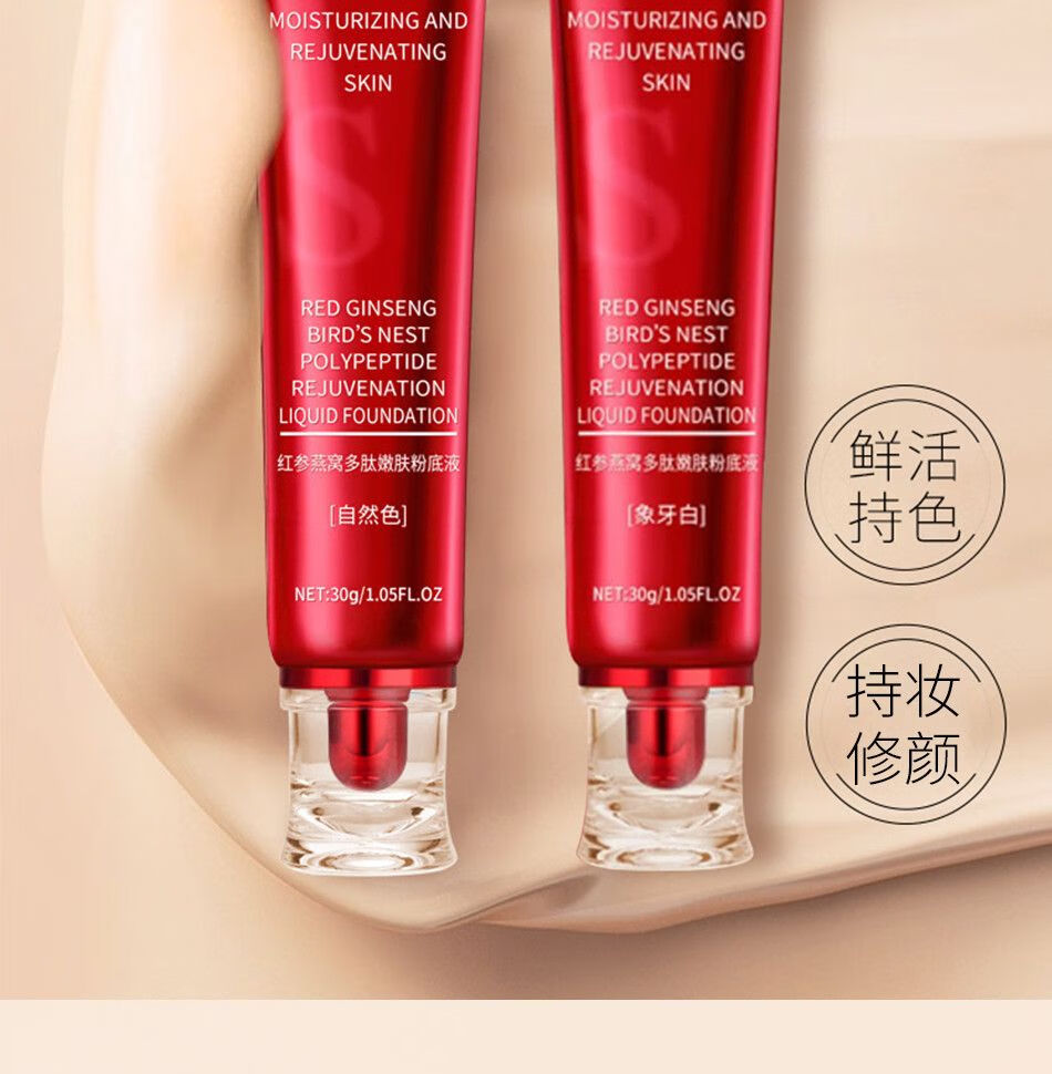 UBUB粉底液遮瑕保湿持久不易脱妆不卡粉黄黑干皮油皮好用推荐学生平价 自然色2支+象牙白2支