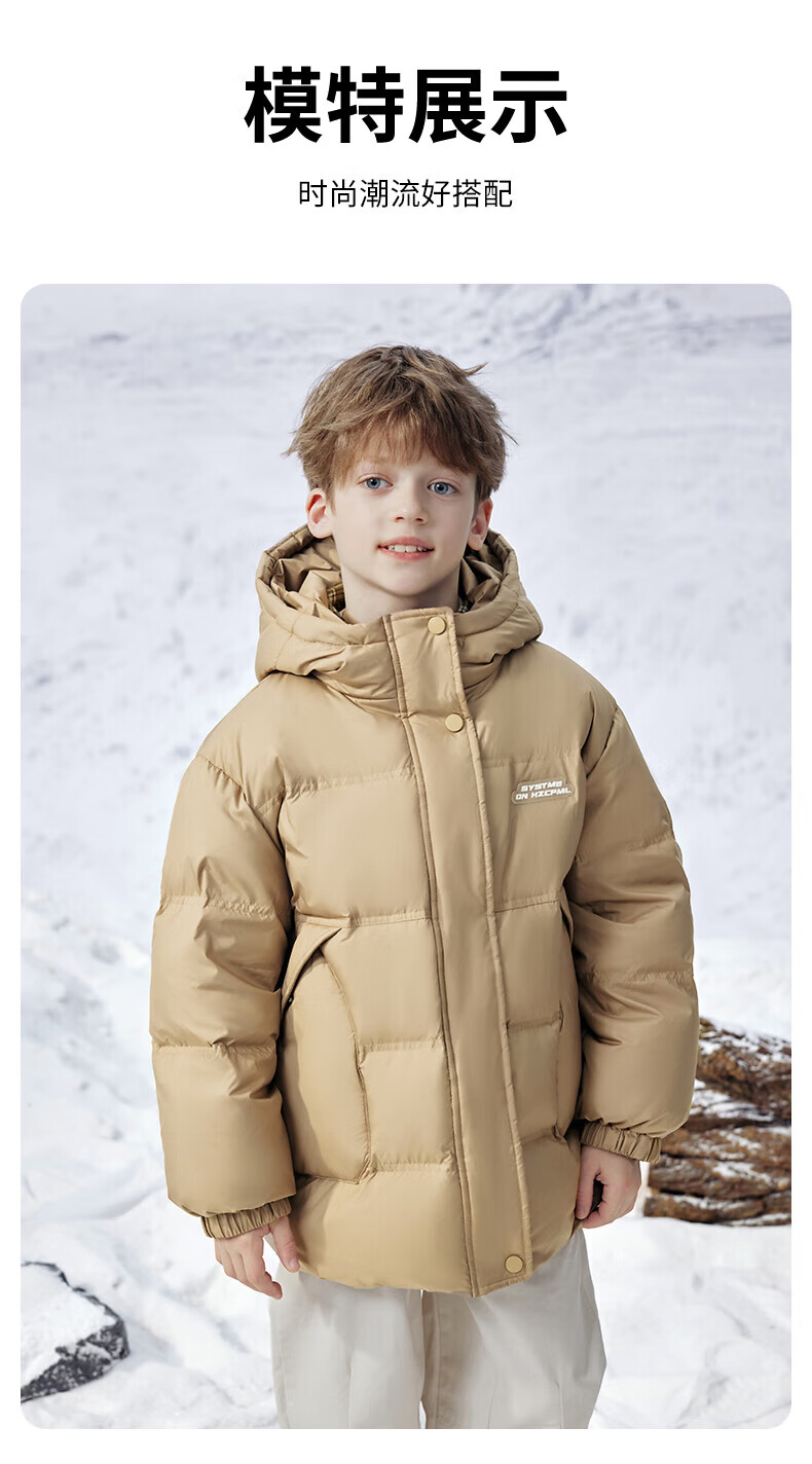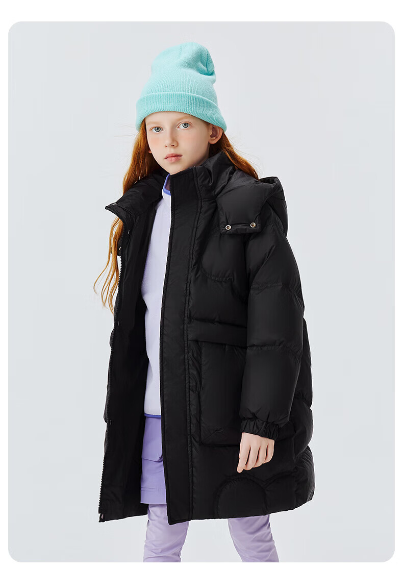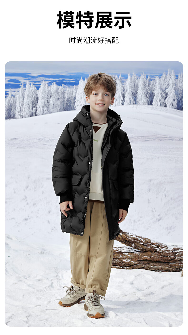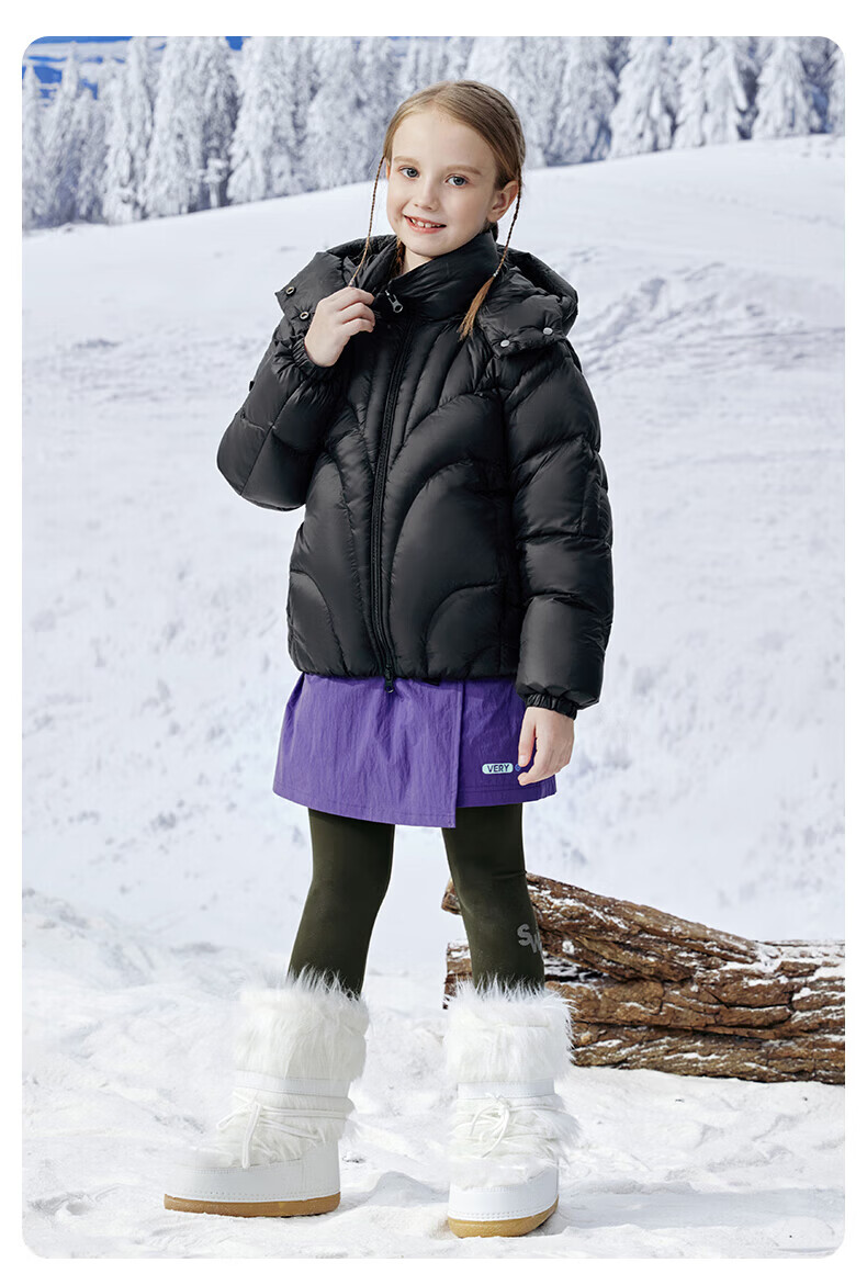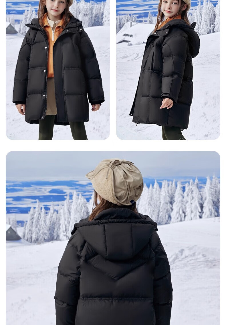 雪中飞(SNOWFLYING)【集合】儿童羽绒服男女童冬季新款加厚保暖纯色中大童面包服外套 黑色(4604) 160