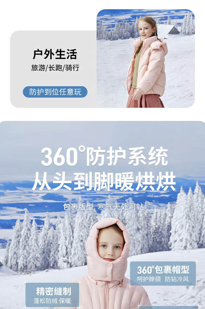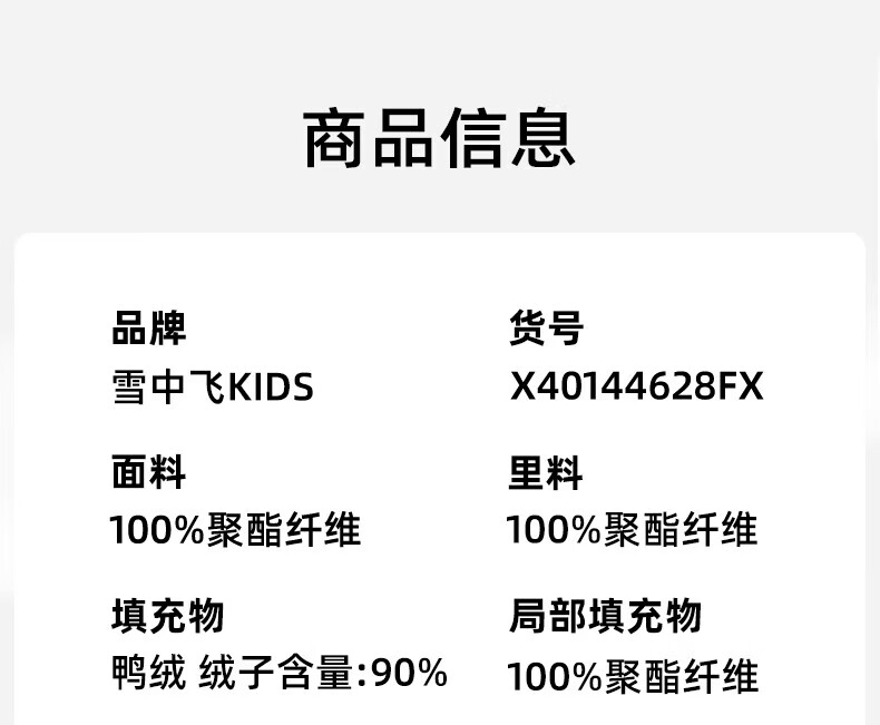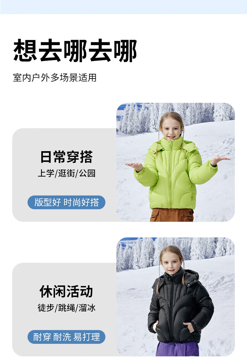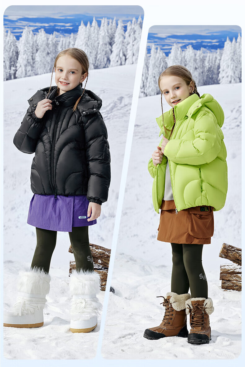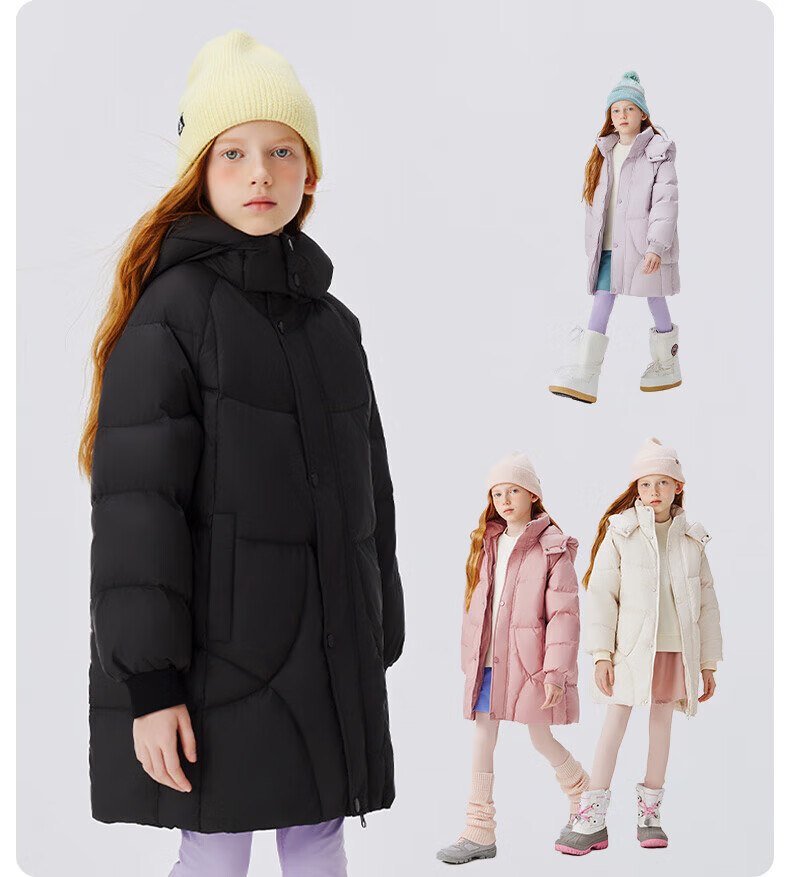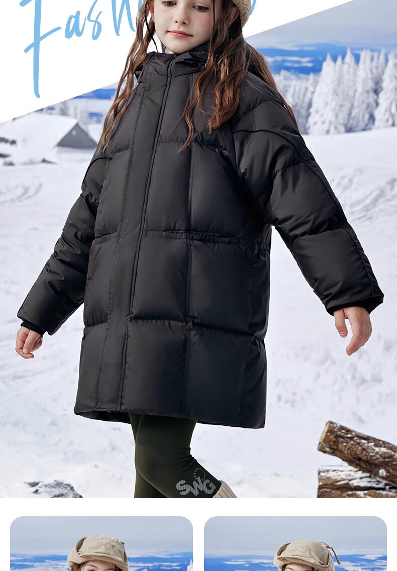 雪中飞(SNOWFLYING)【集合】儿童羽绒服男女童冬季新款加厚保暖纯色中大童面包服外套 黑色(4604) 160